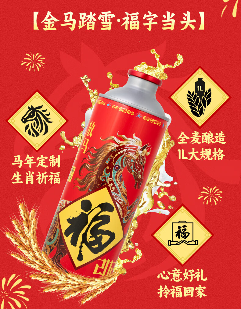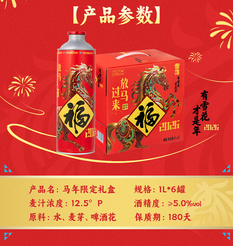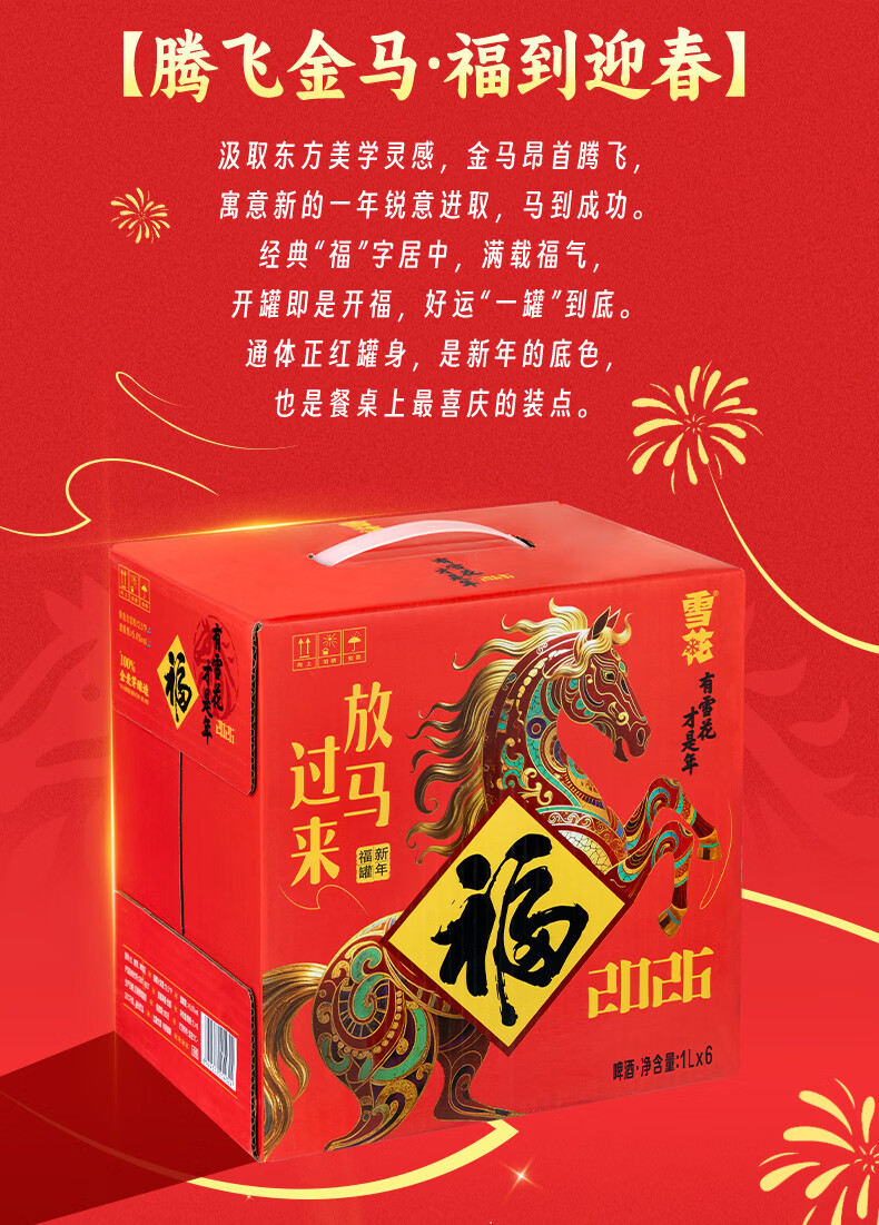 雪花啤酒礼盒福罐 全麦芽高浓度醇厚啤酒 1L 6罐 整箱装 到期日6月
