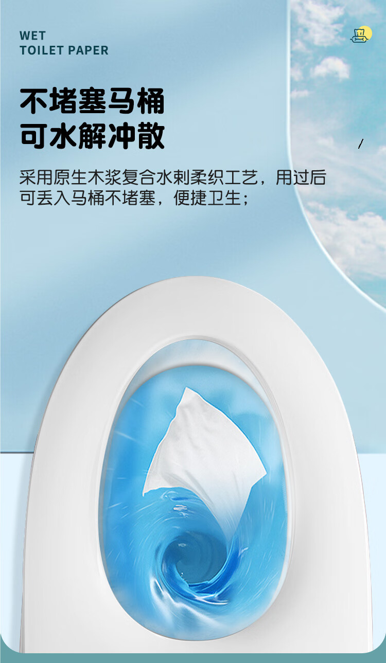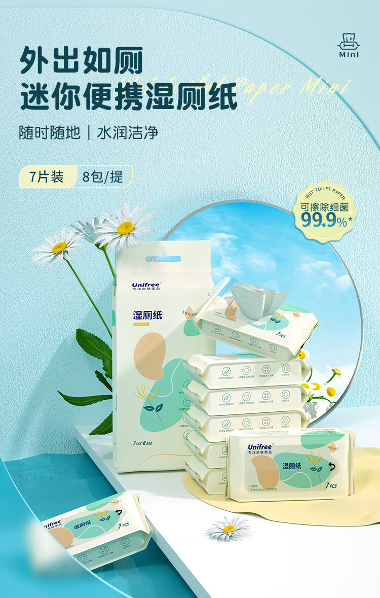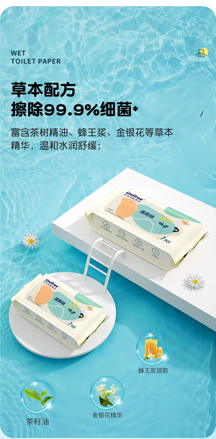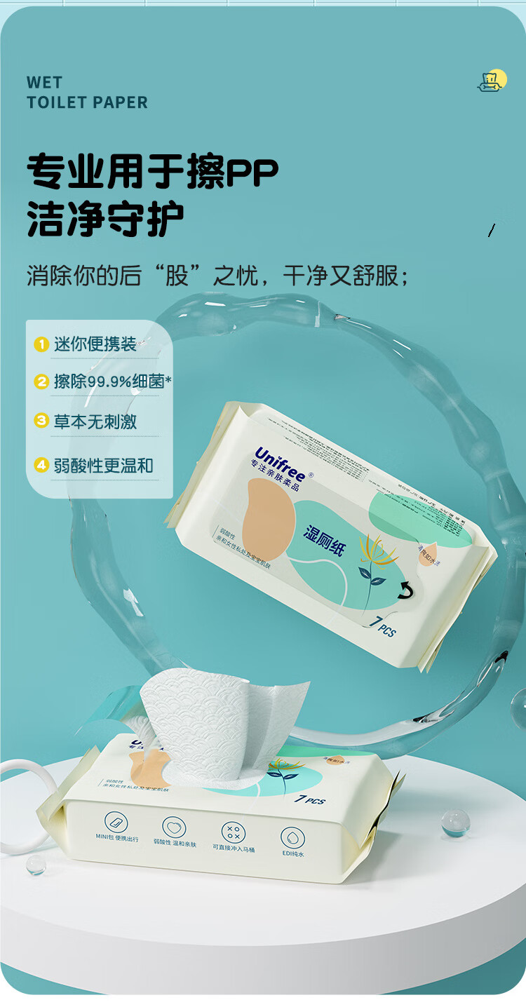 unifree湿厕纸 如厕擦拭清洁湿巾 抽取式男女通用擦屁屁专用 PP-SPA湿厕纸 80抽*6包