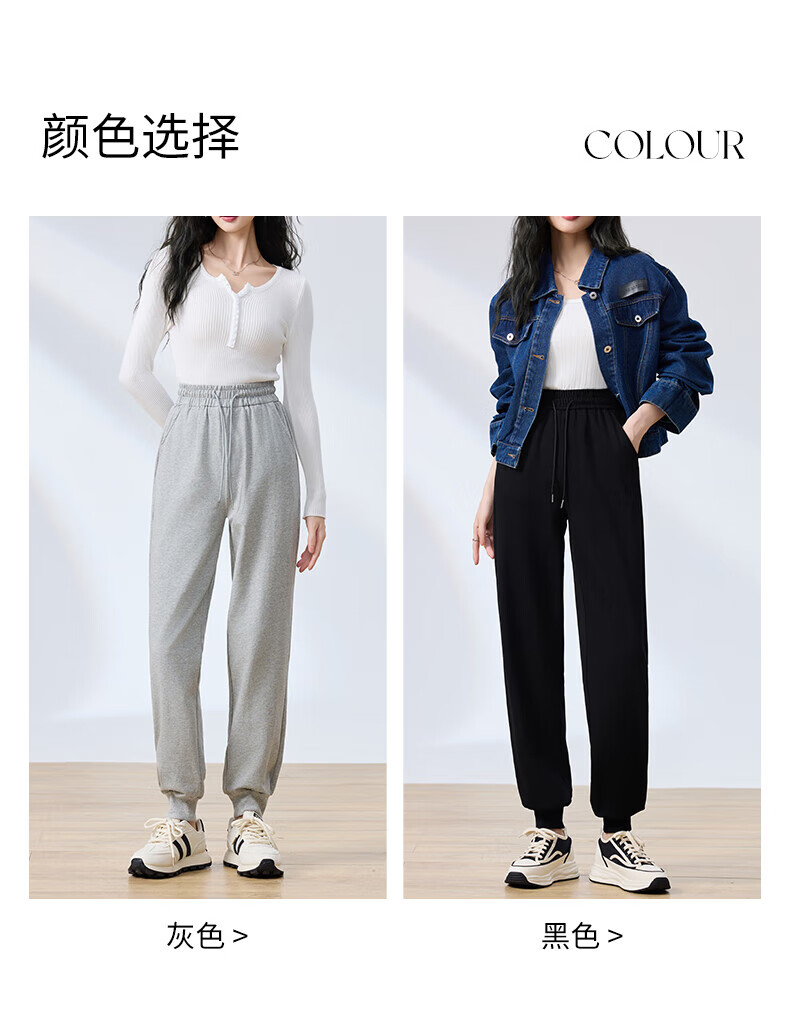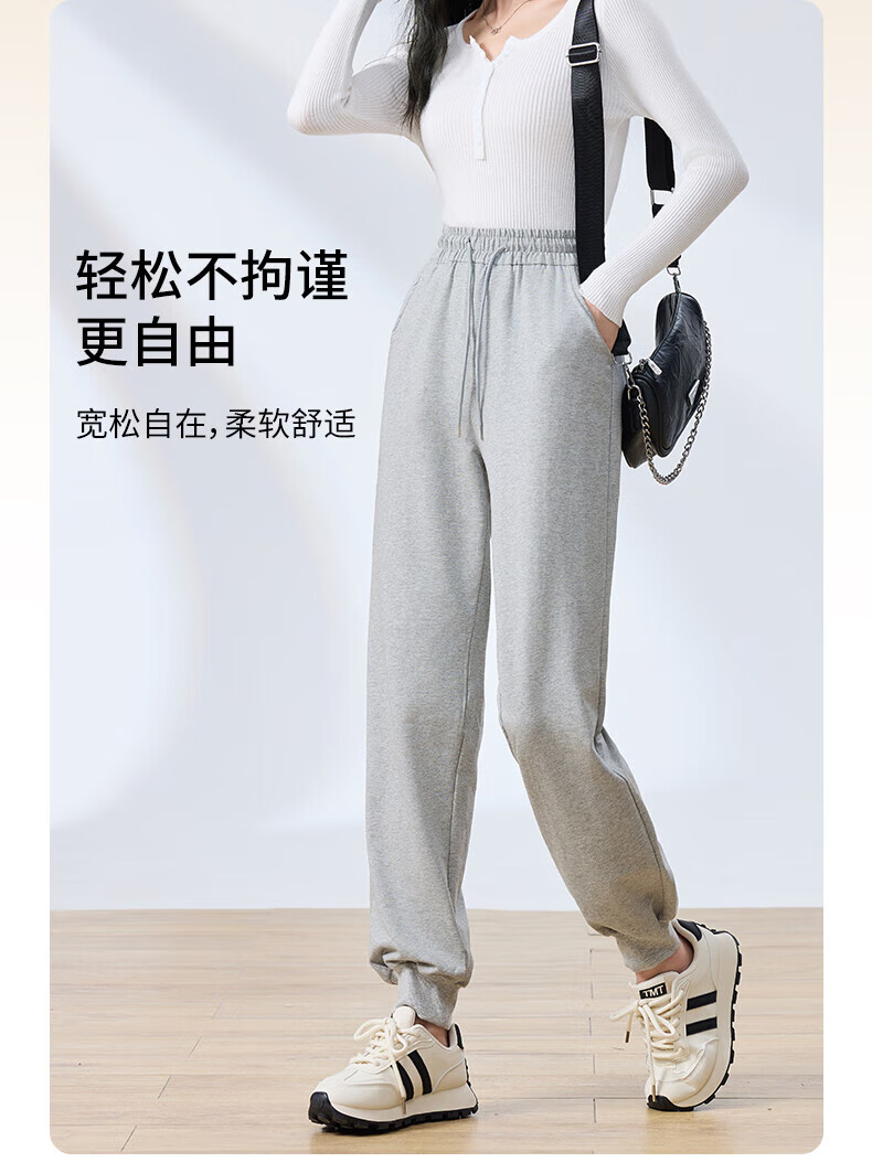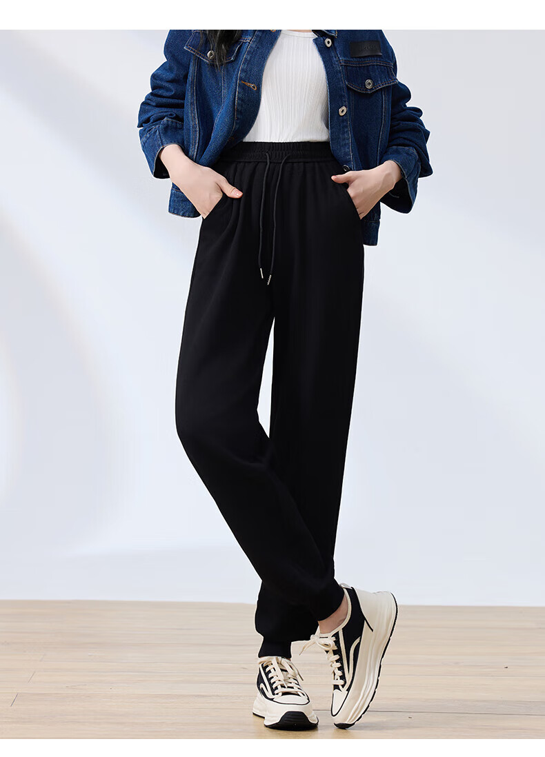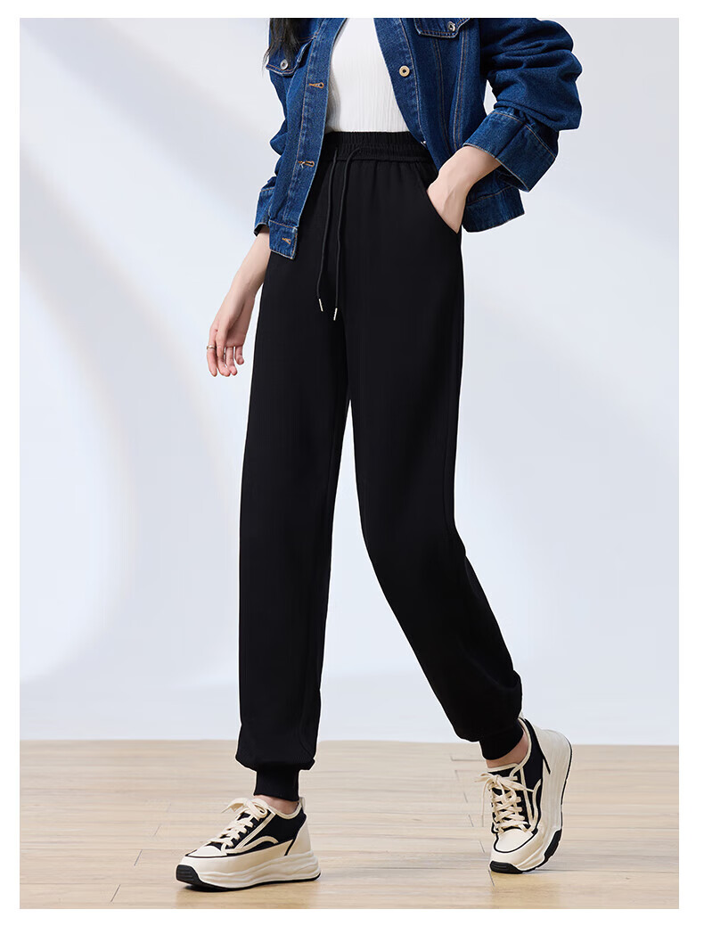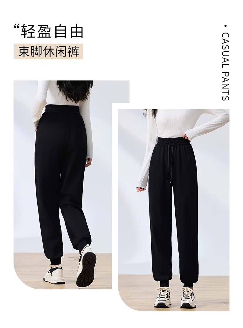 浪莎纯棉女士运动裤春秋季长裤束脚宽松哈伦裤小个子休闲跑步百搭卫裤 黑色 L (适合108-120斤)