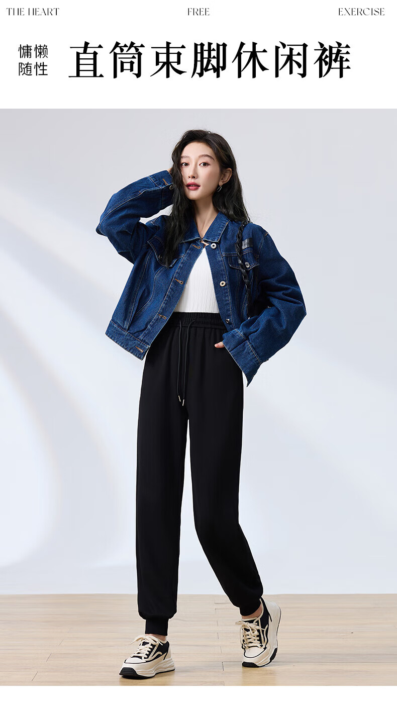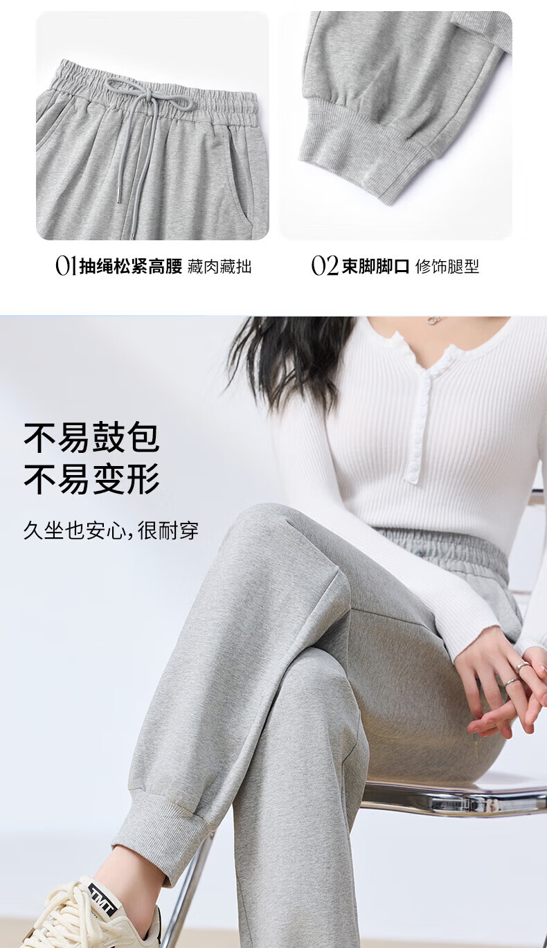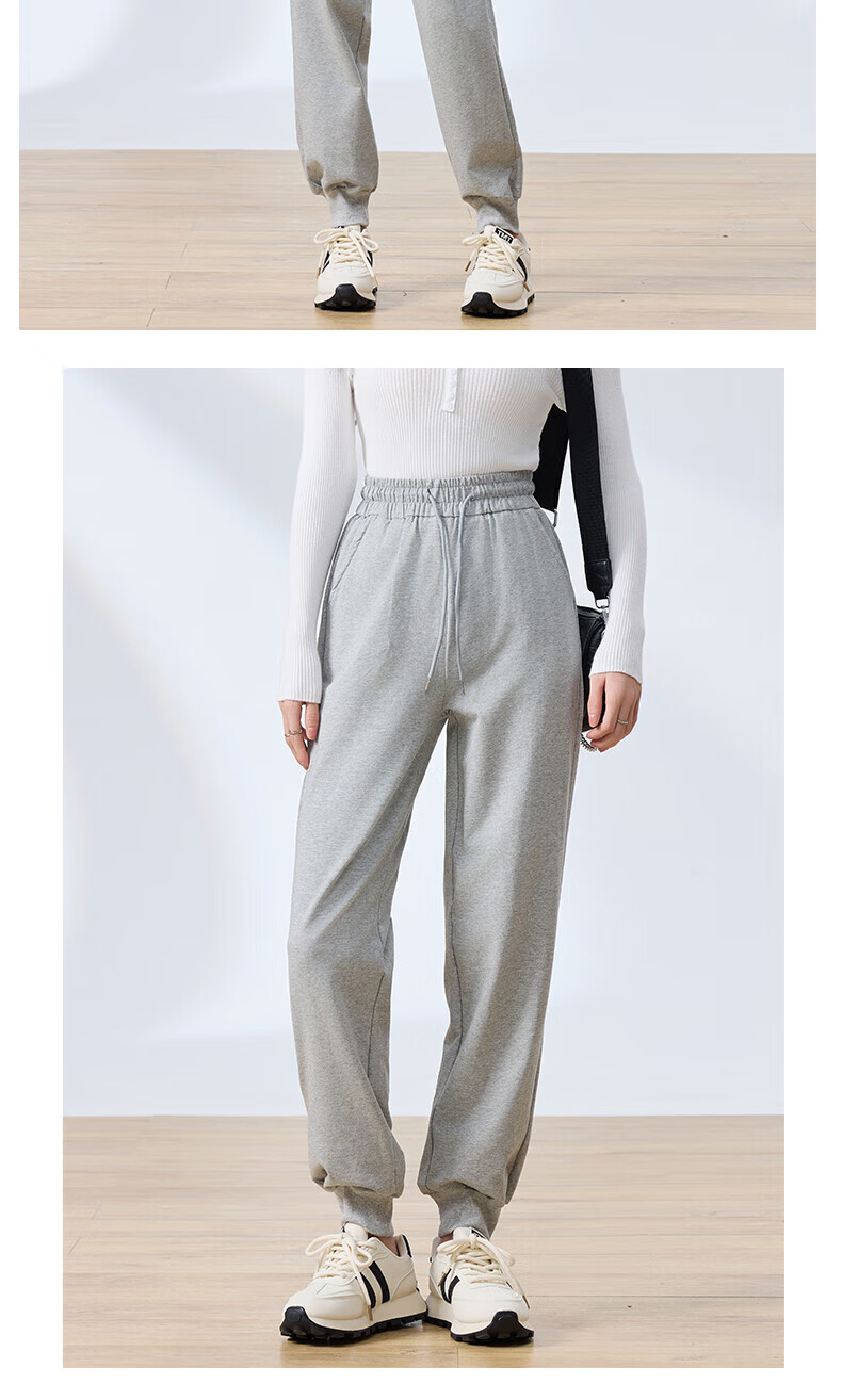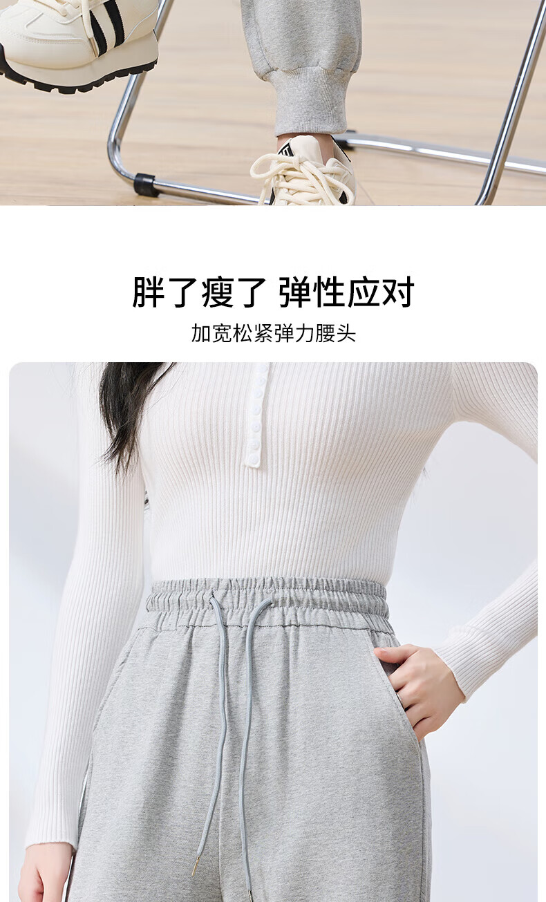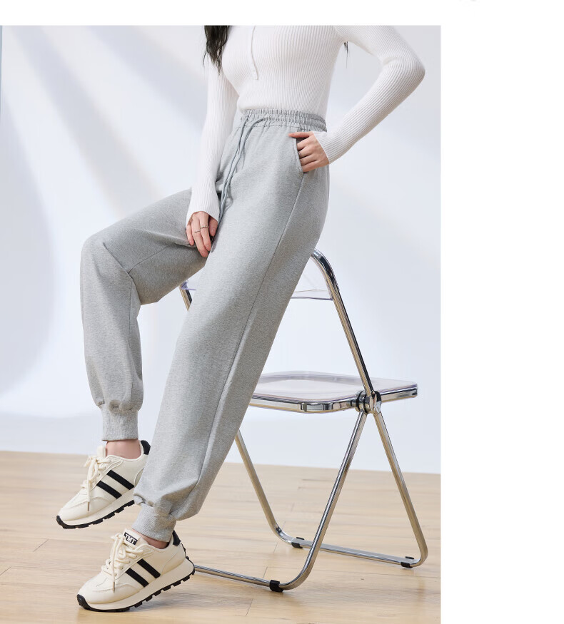 浪莎纯棉女士运动裤春秋季长裤束脚宽松哈伦裤小个子休闲跑步百搭卫裤 黑色 L (适合108-120斤)