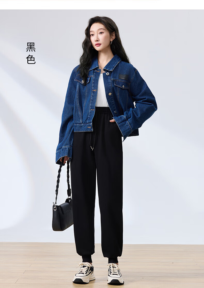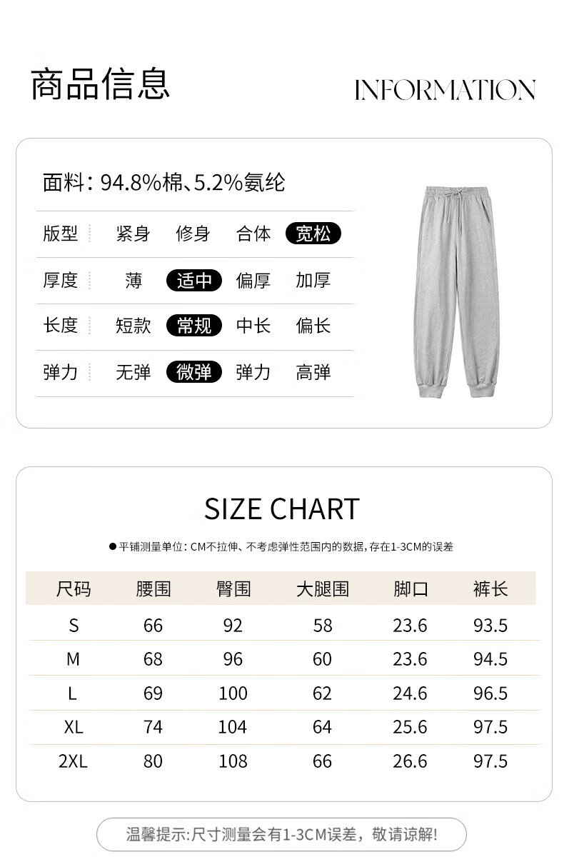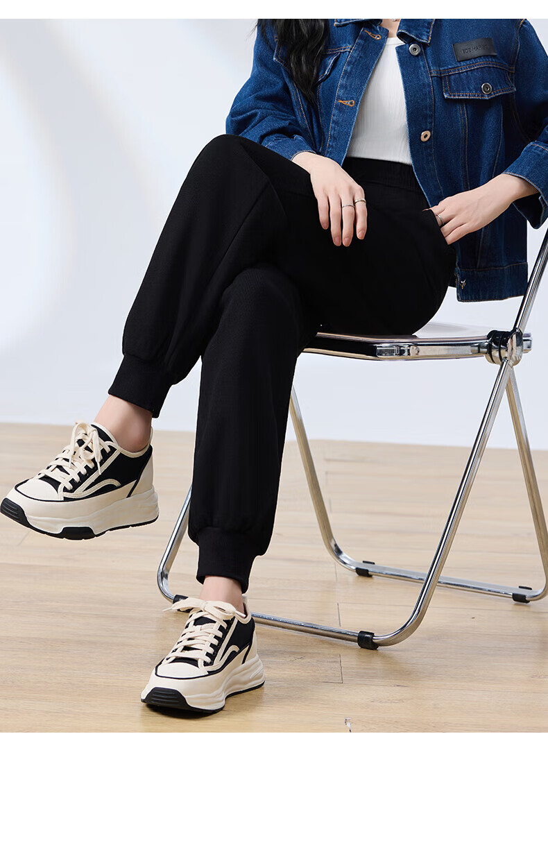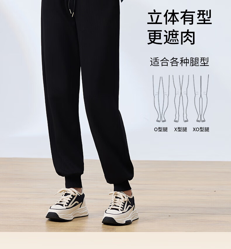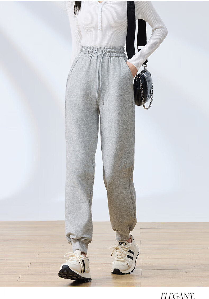 浪莎纯棉女士运动裤春秋季长裤束脚宽松哈伦裤小个子休闲跑步百搭卫裤 黑色 L (适合108-120斤)