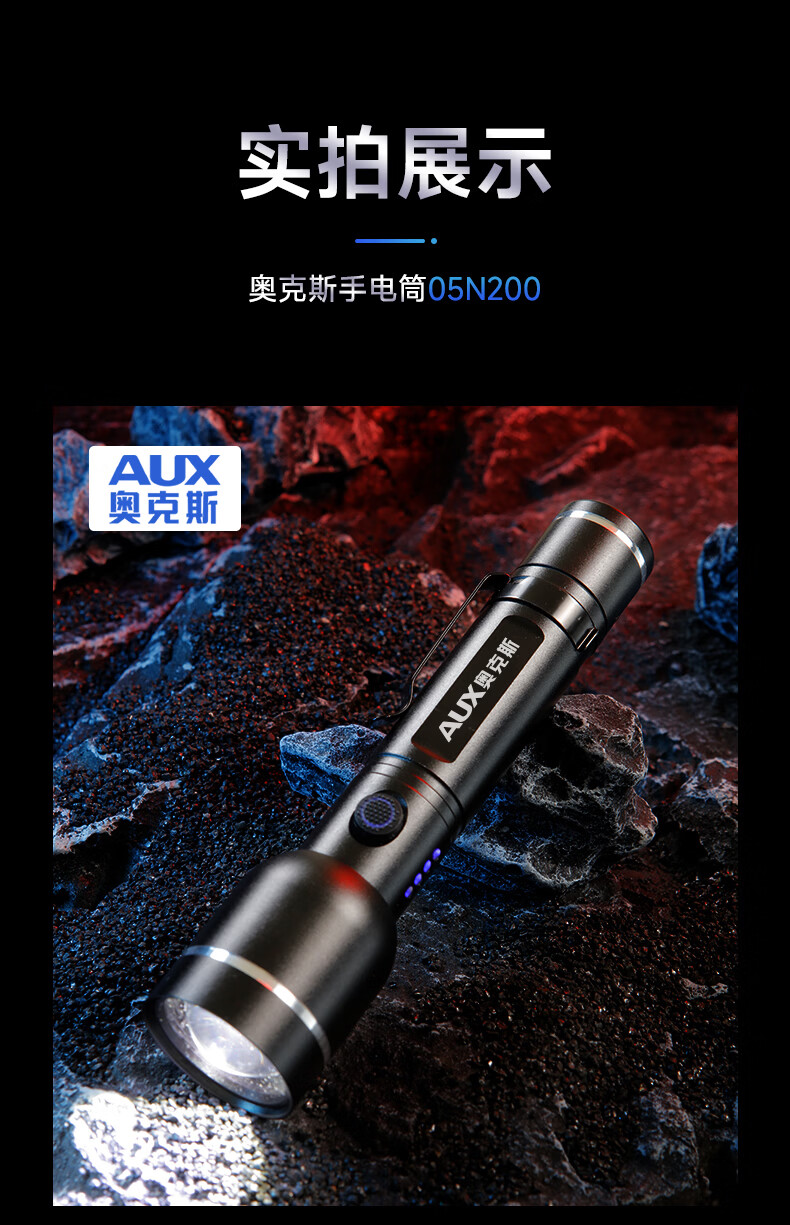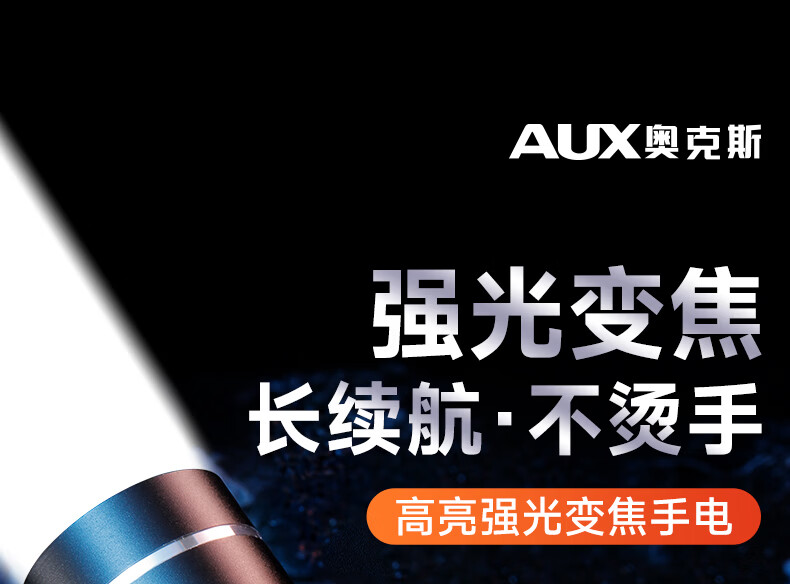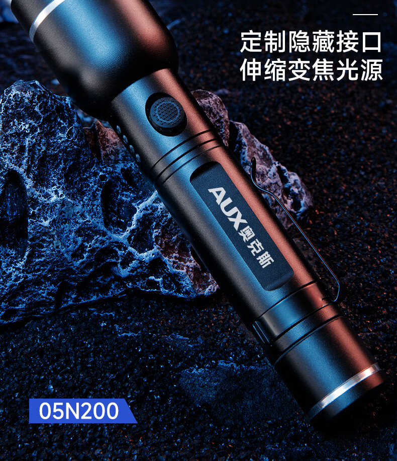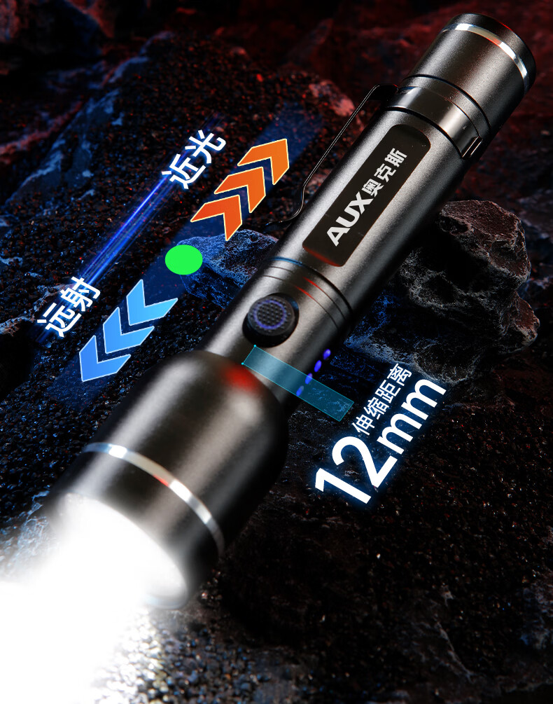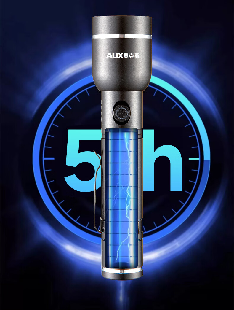 奥克斯(AUX)手电筒强光充电远射超亮便携充电超长续航户外登山家用应急变焦 【升级款丨P70灯芯】续航5小时/Type-C直充/单锂电