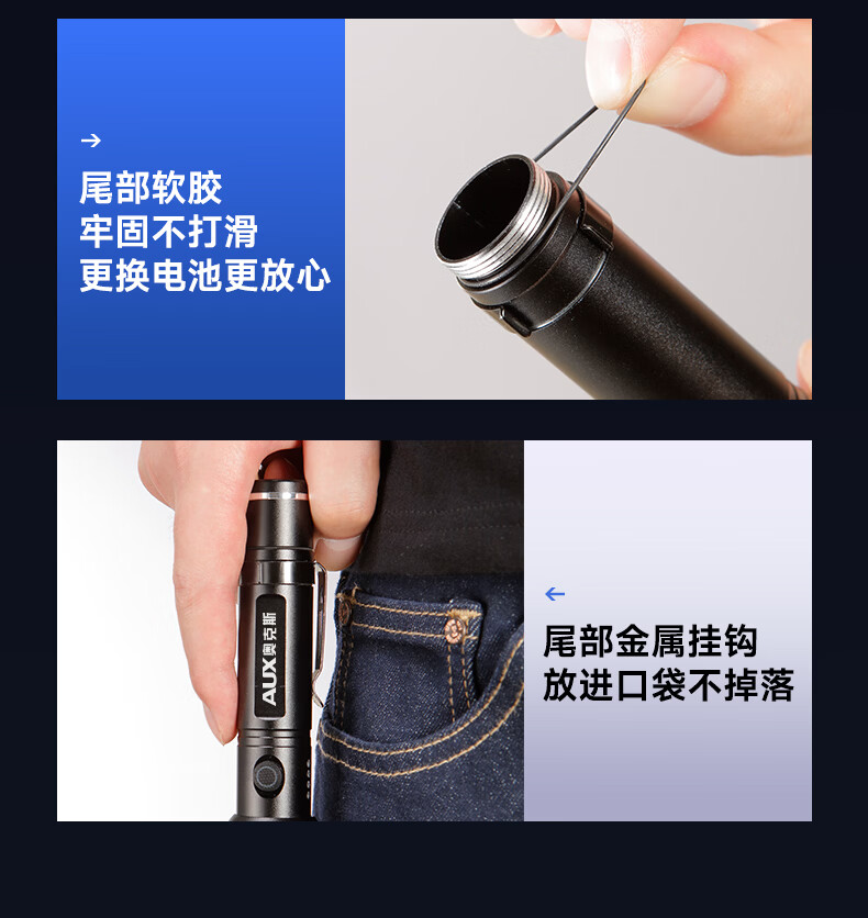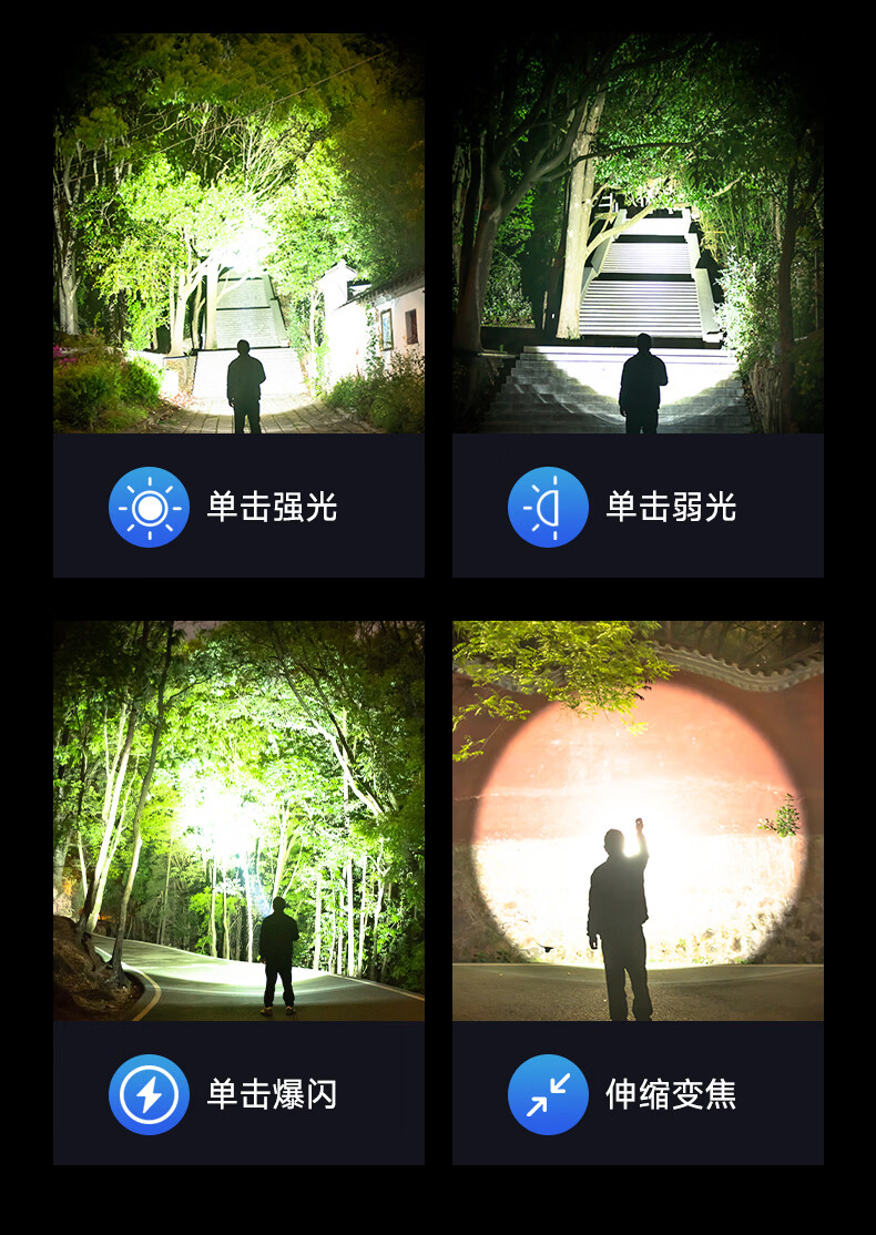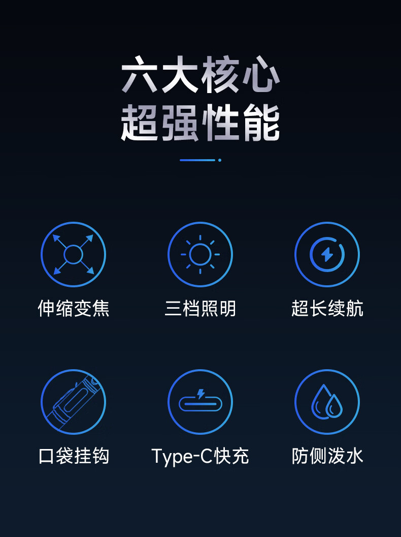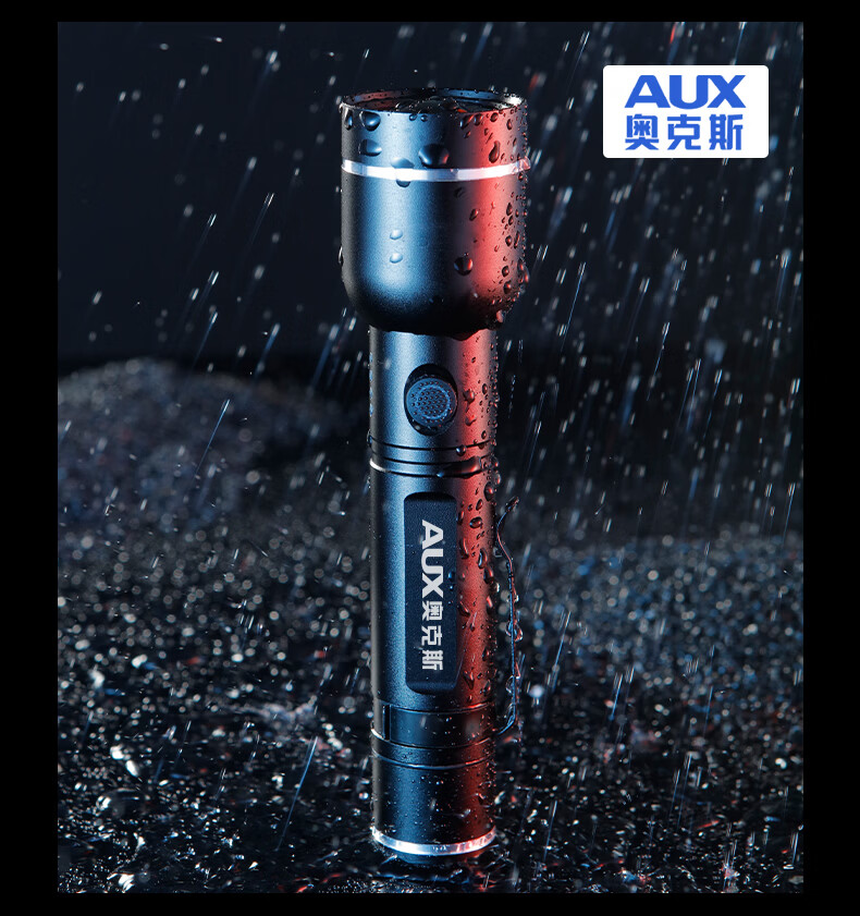 奥克斯(AUX)手电筒强光充电远射超亮便携充电超长续航户外登山家用应急变焦 【升级款丨P70灯芯】续航5小时/Type-C直充/单锂电