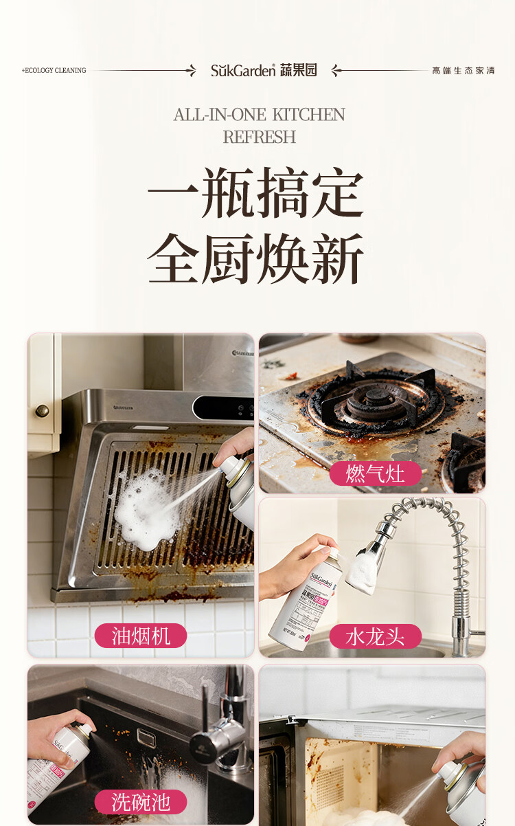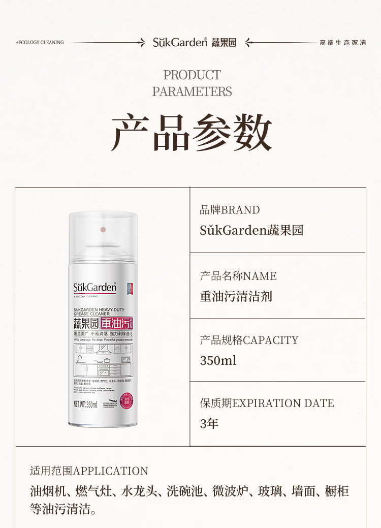 蔬果园重油污清洁剂350ml厨房重油污清洁剂油烟机灶台去油神器