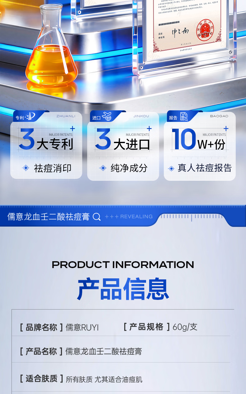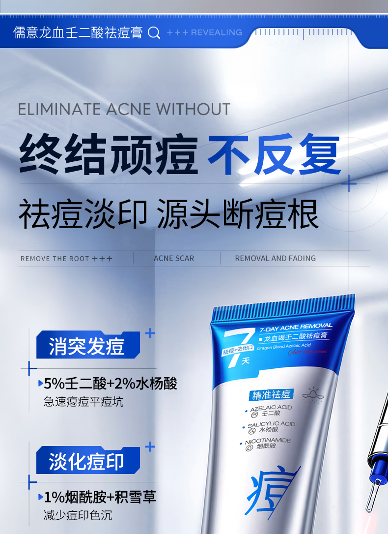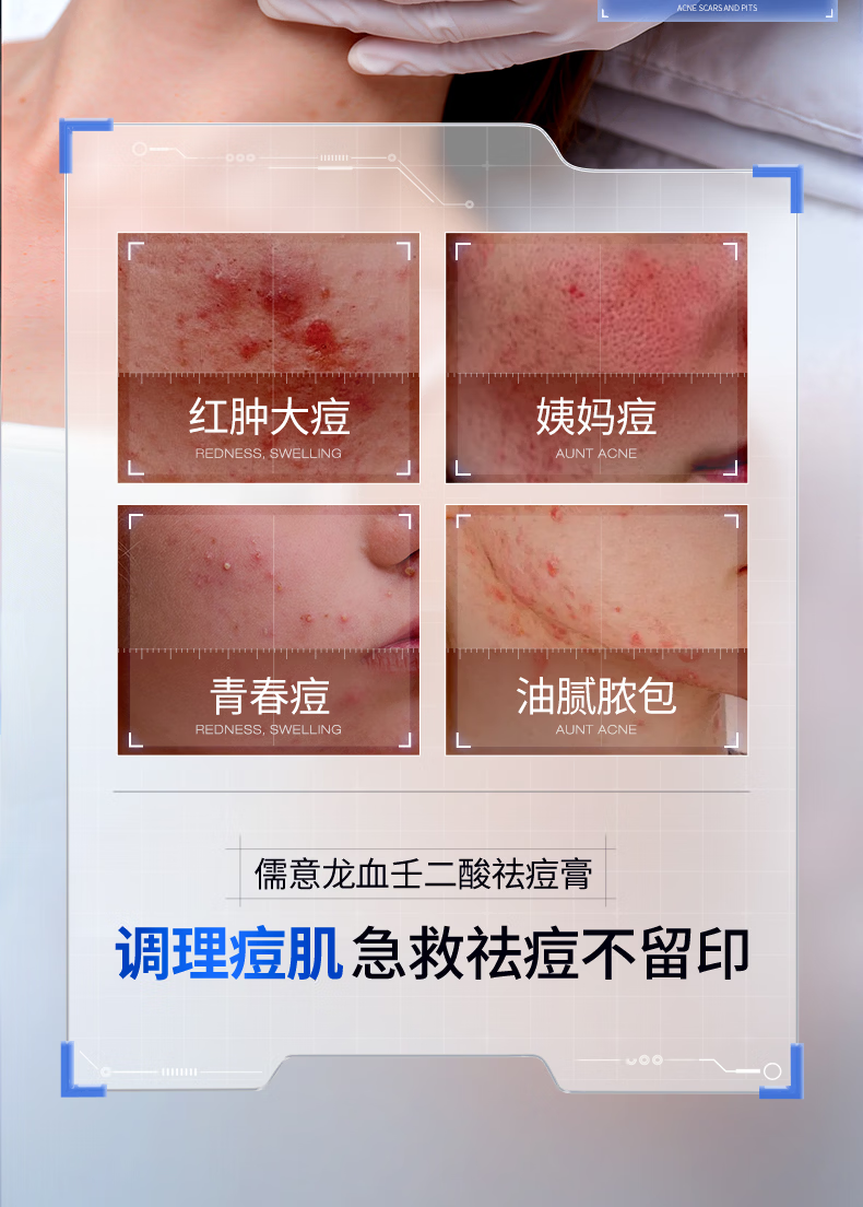 儒意(RUYI)壬二酸祛痘药膏凝胶态硫修复淡化痘印水杨酸学生青春痘痤疮青少年
