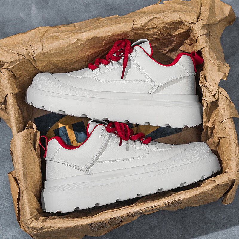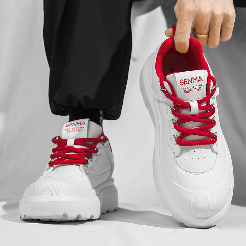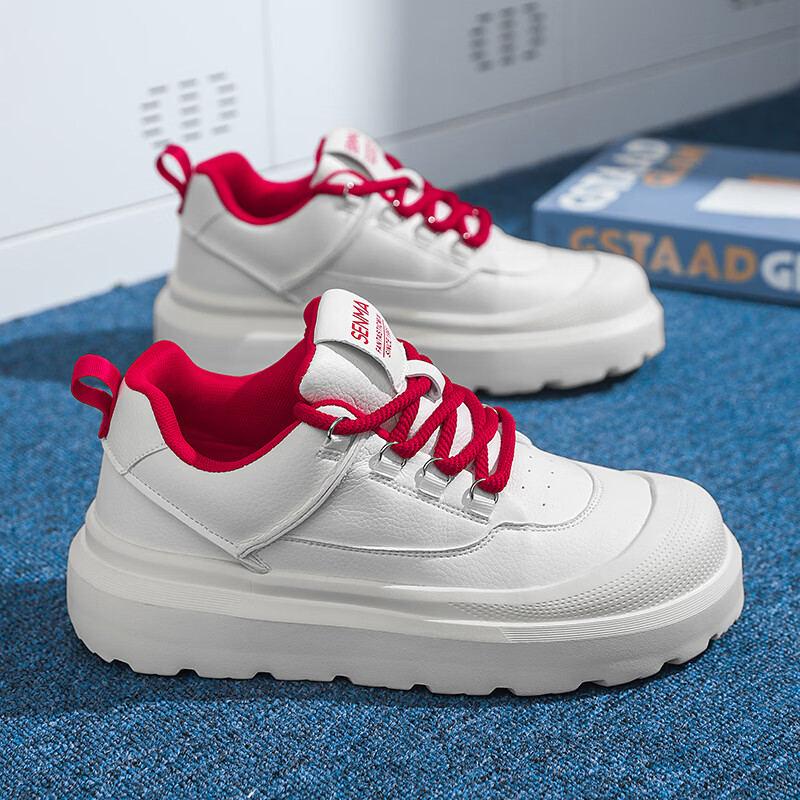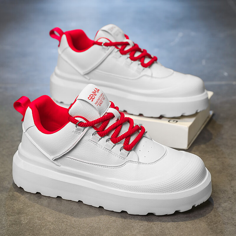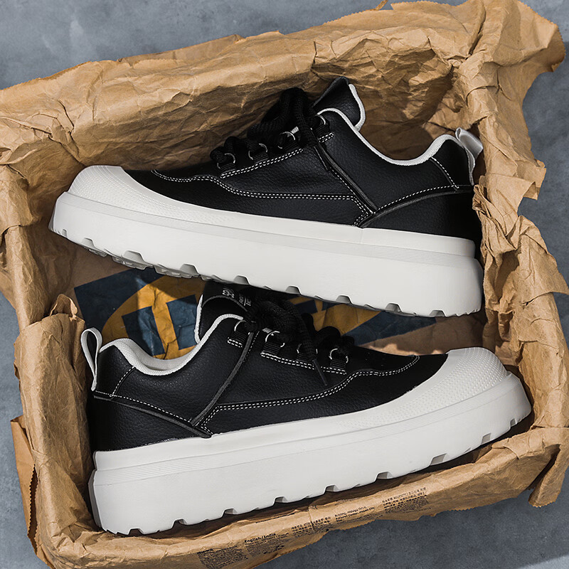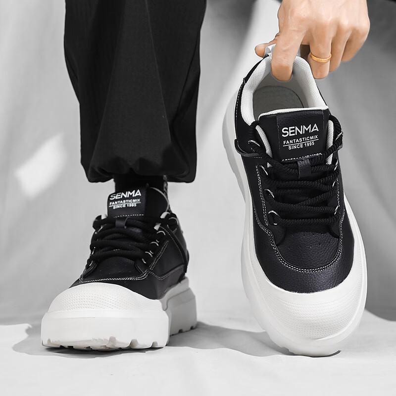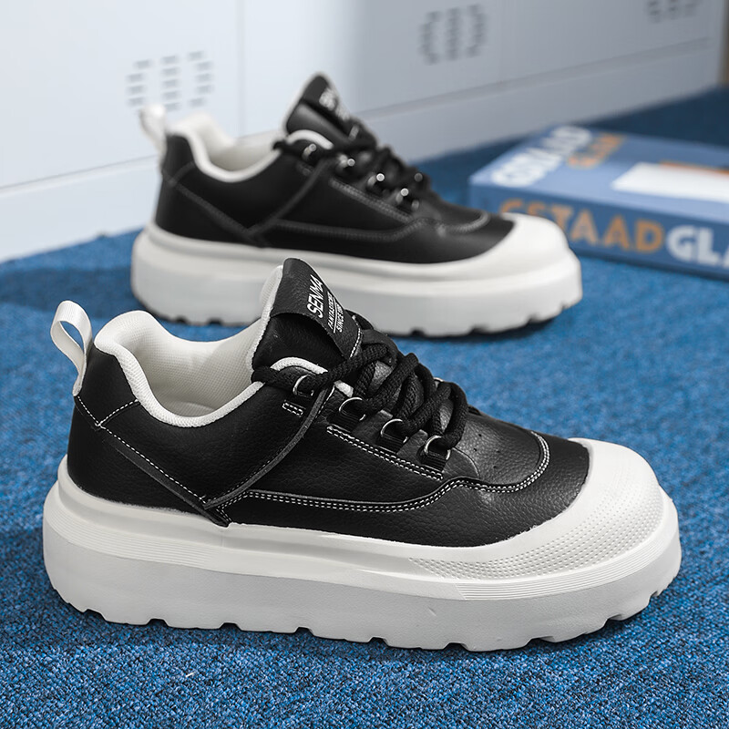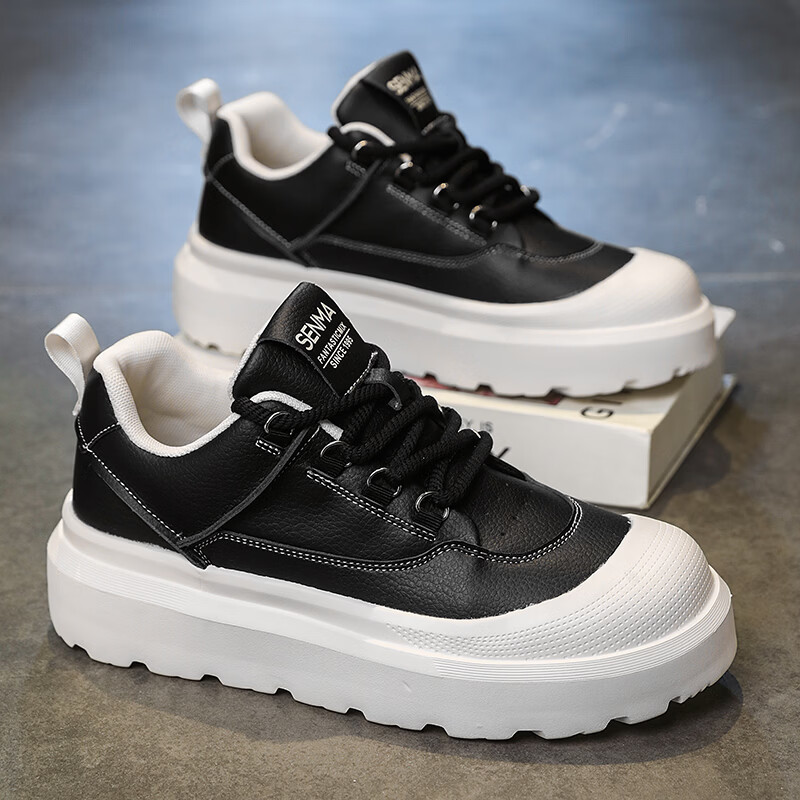 森馬男鞋2026新款春季高级感厚底增高皮面板鞋青少年百搭休闲运动潮鞋 白黑【基础款】 39 标准码数/现货秒发