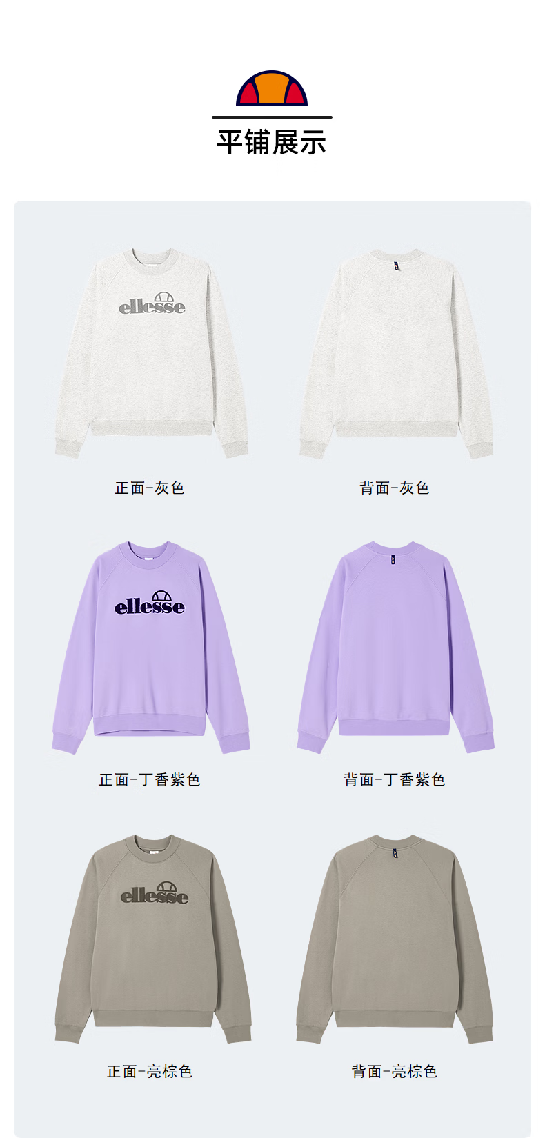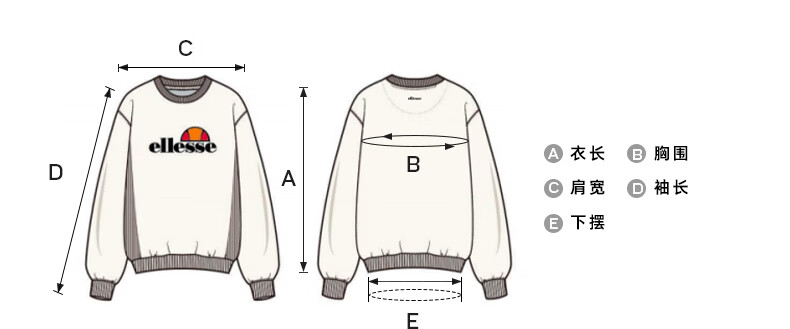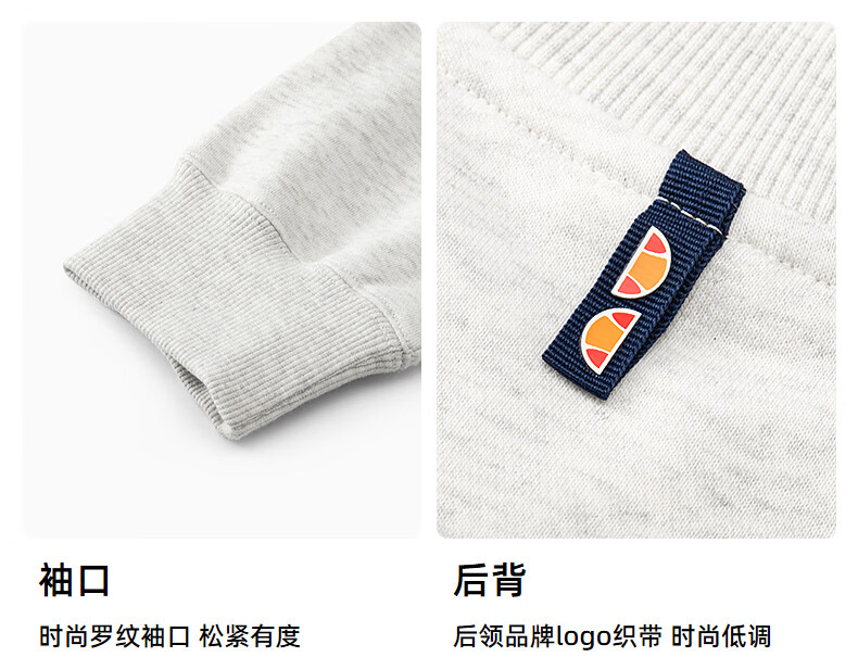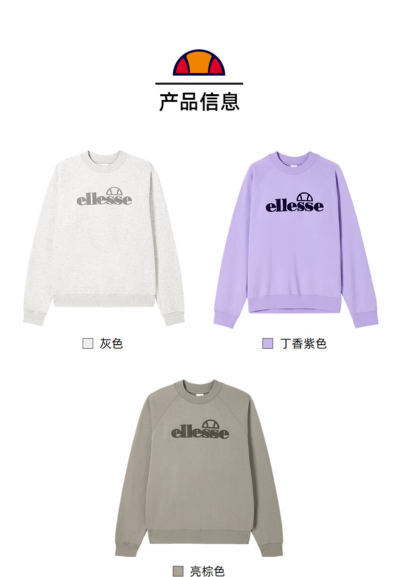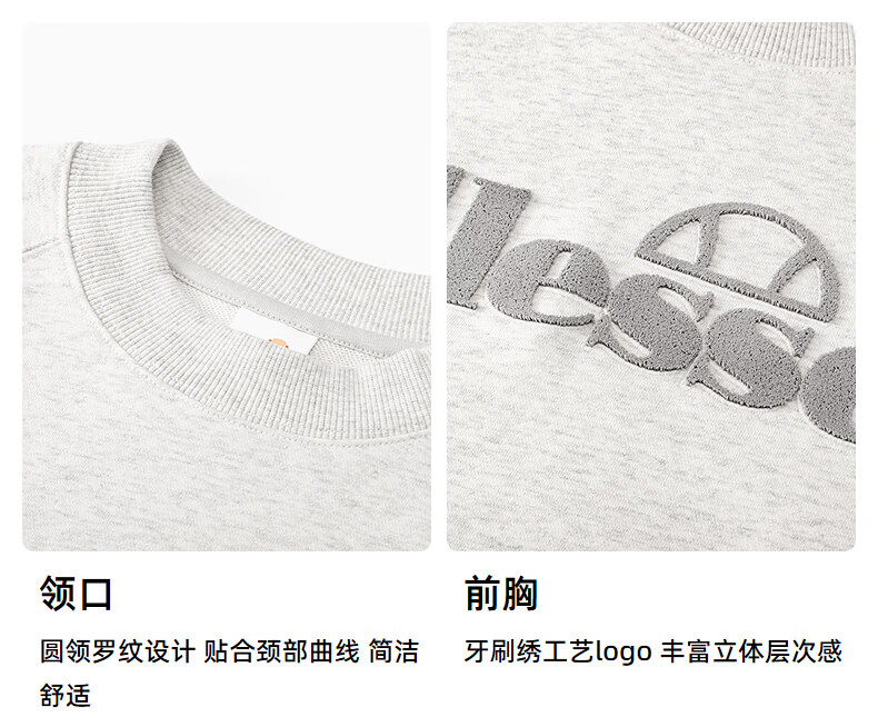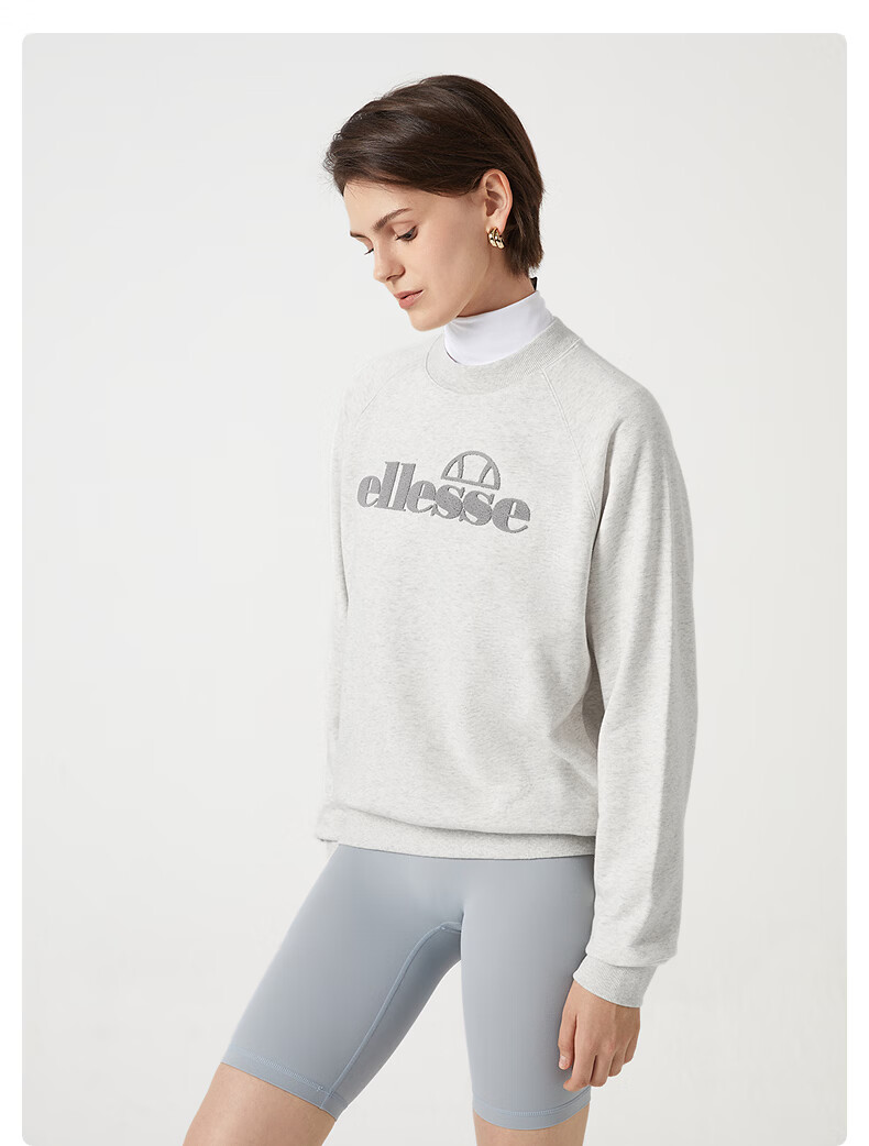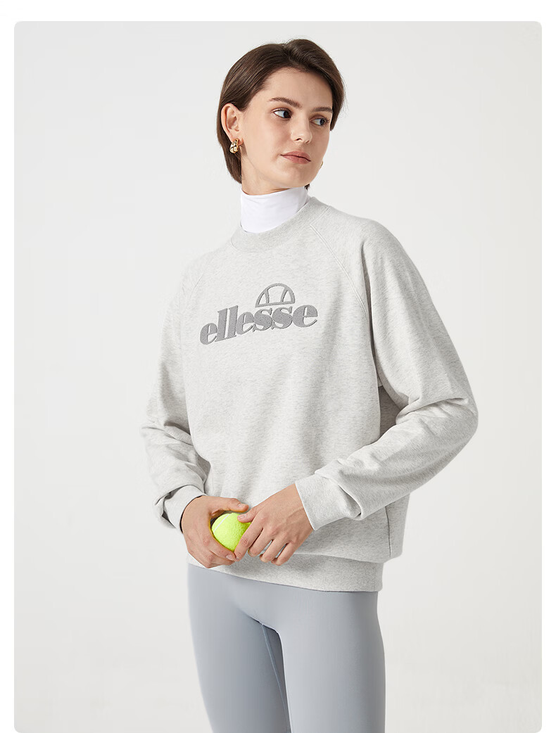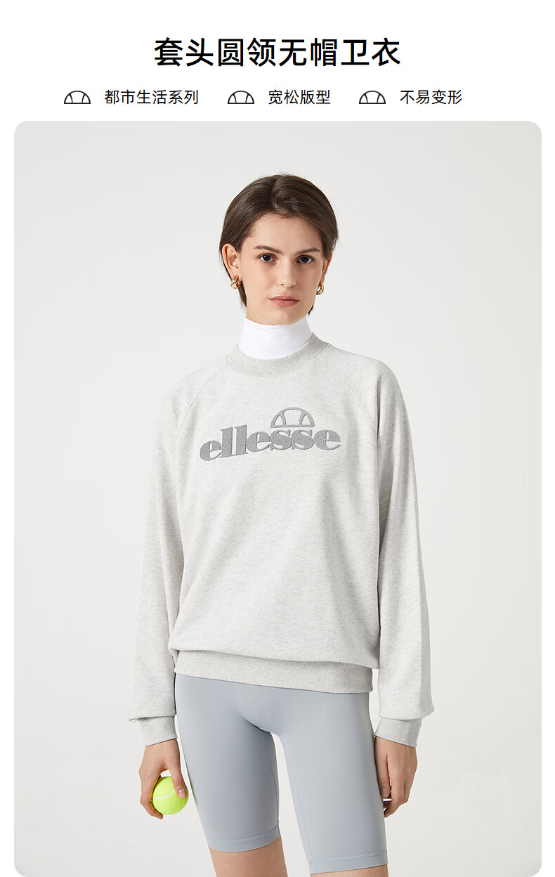 ellesse小贝壳官方薄款卫衣女秋冬新款美拉德运动休闲上衣 灰色 S