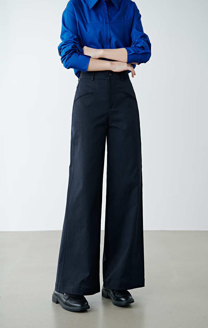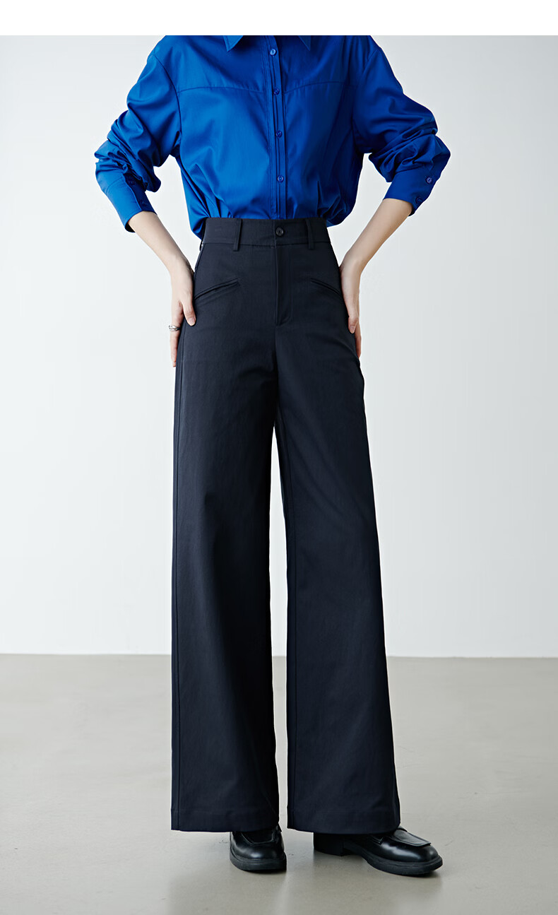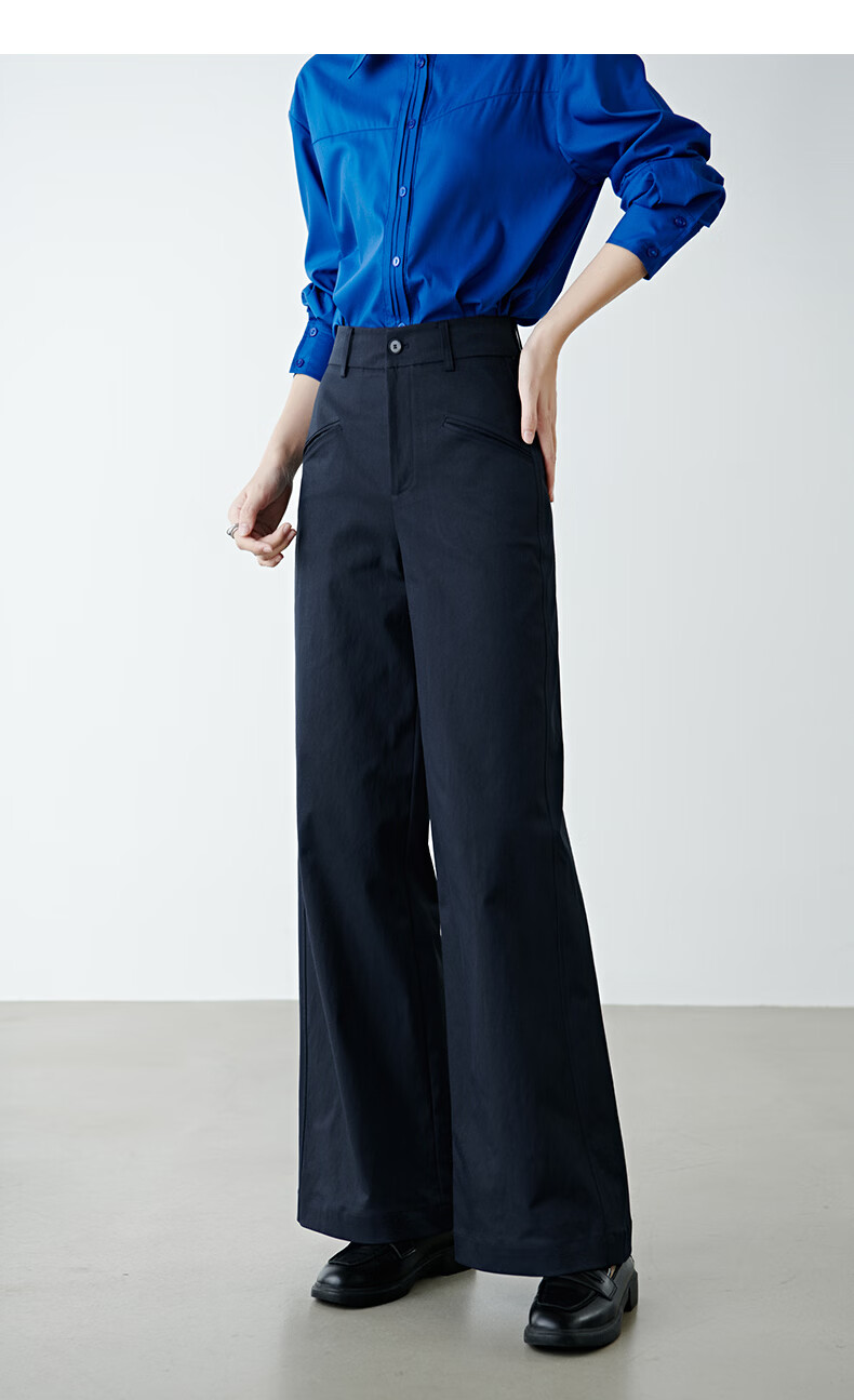 晚白【新品】2026春款经典高腰遮胯显瘦气质通勤休闲阔腿裤女 深蓝色 29