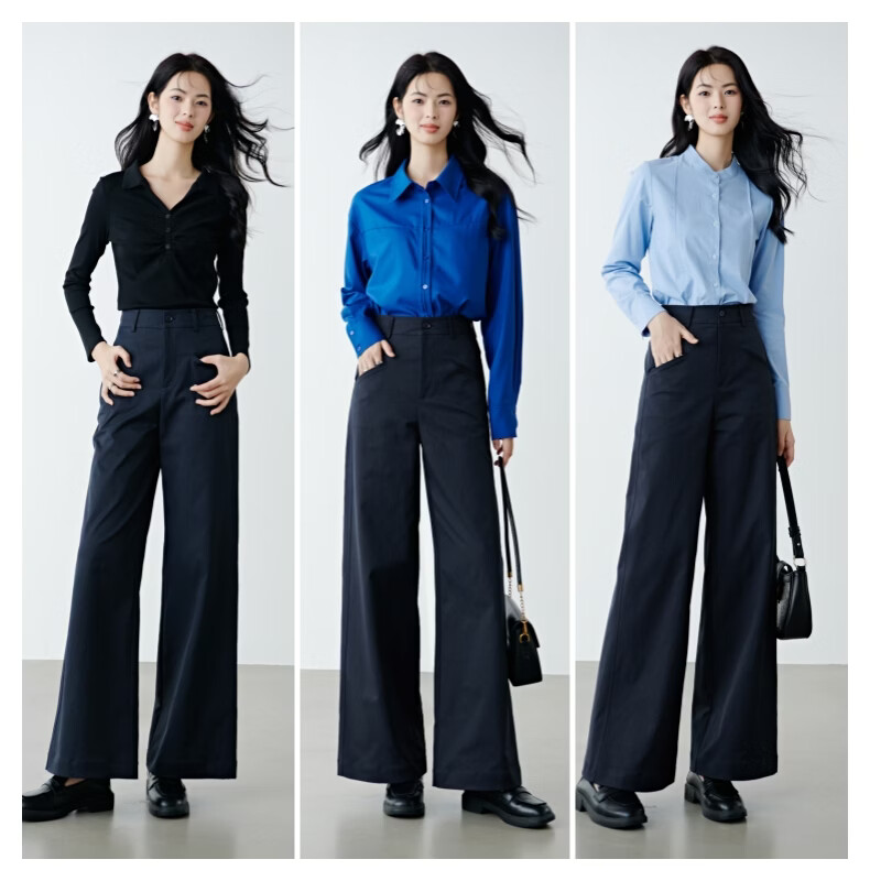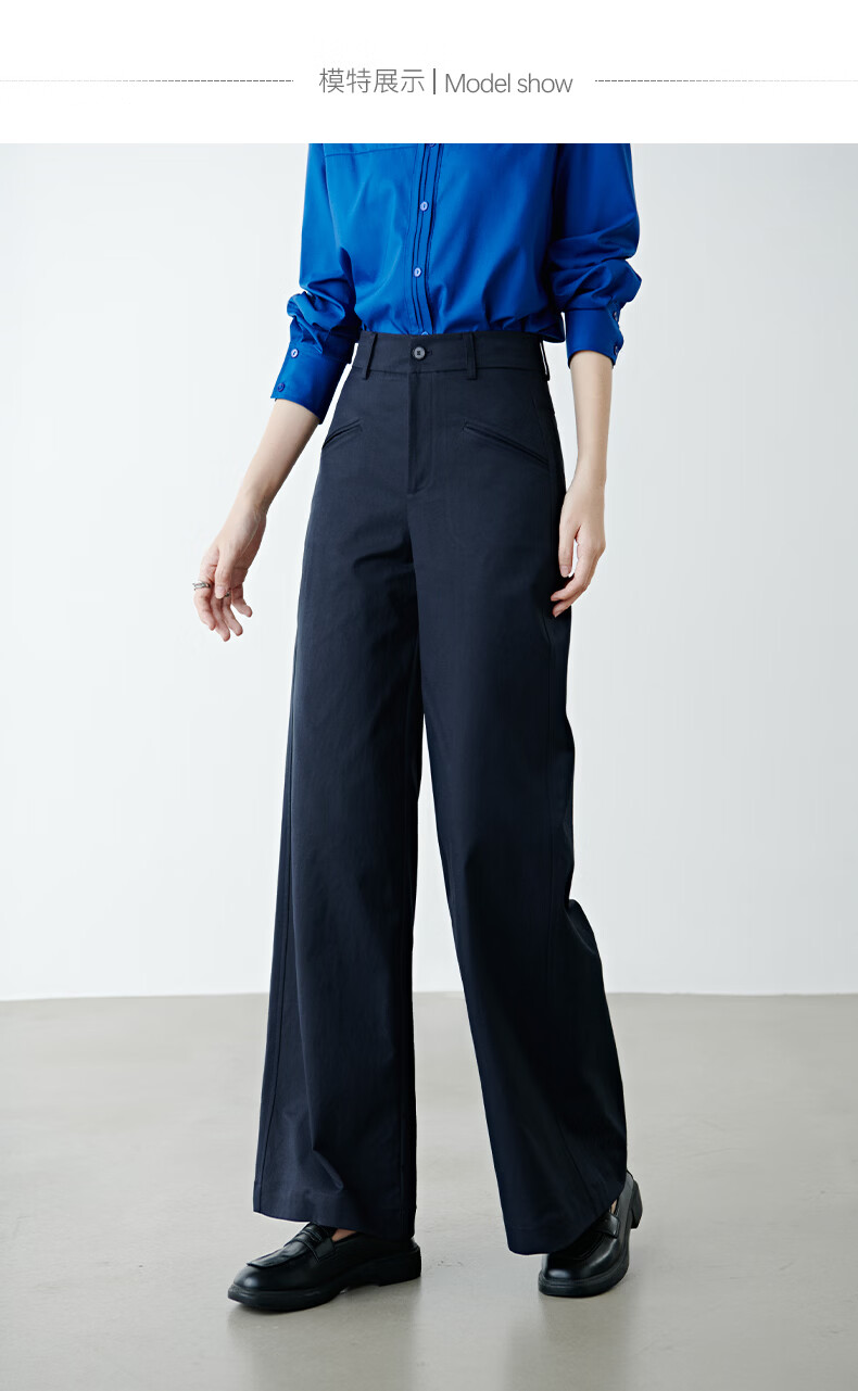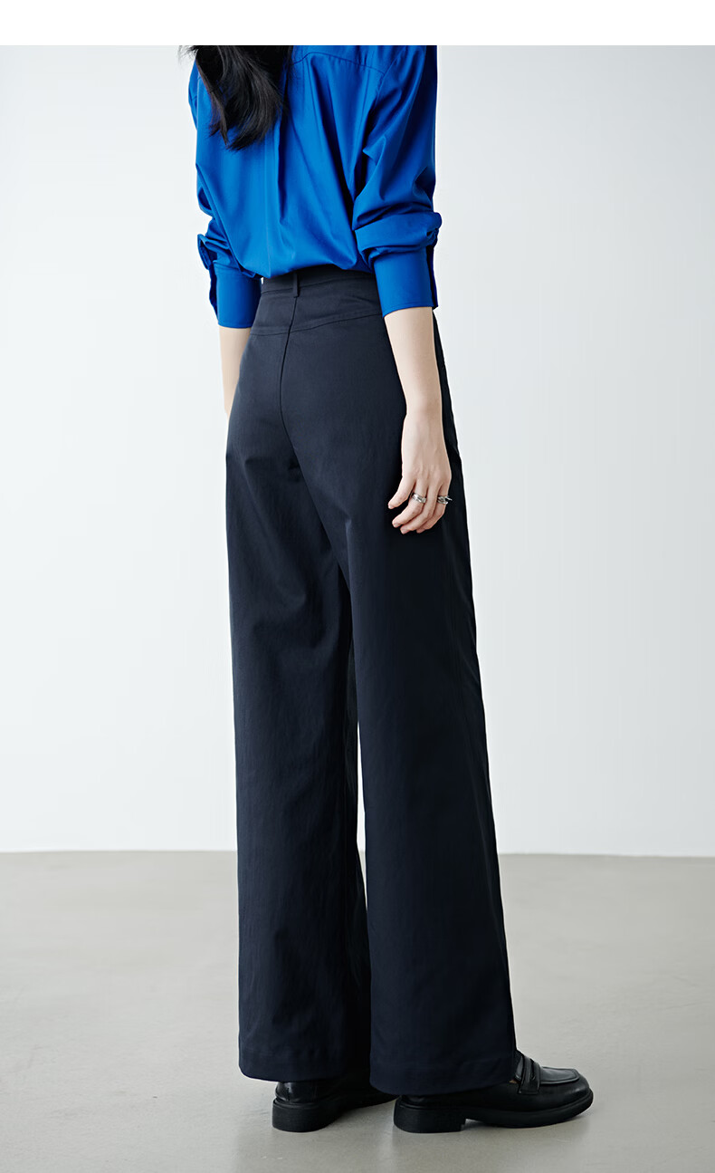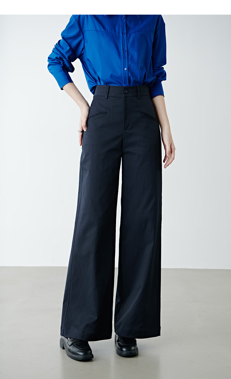 晚白【新品】2026春款经典高腰遮胯显瘦气质通勤休闲阔腿裤女 深蓝色 29