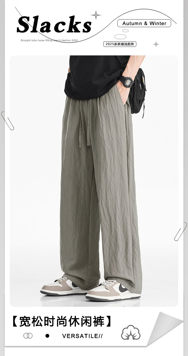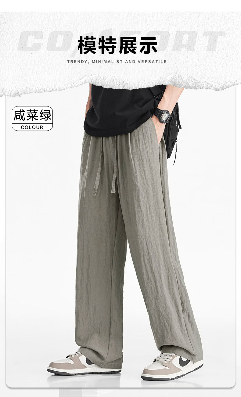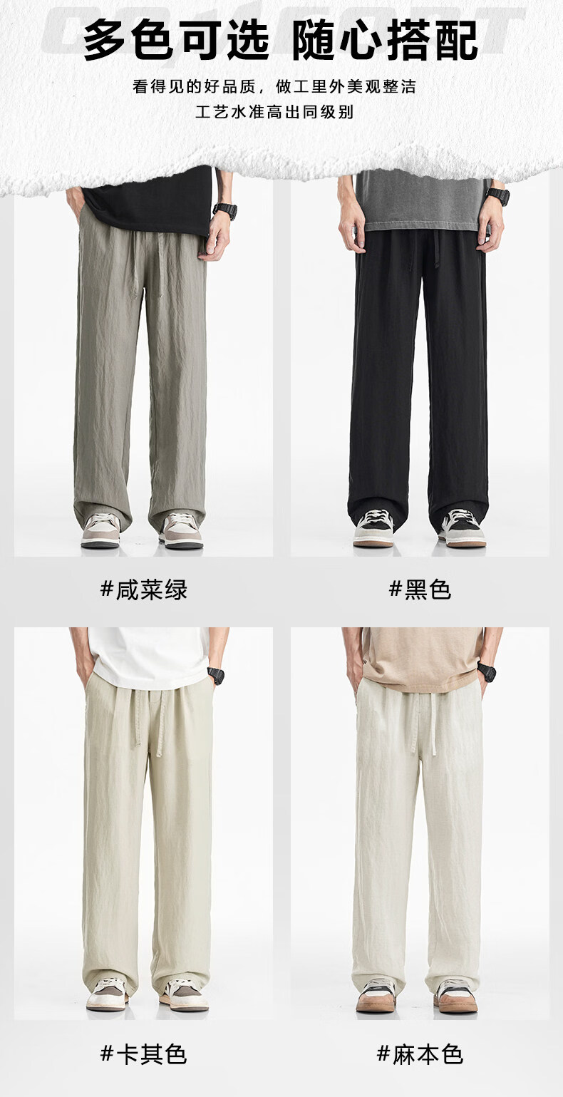 真维斯(Jeanswest)真维斯天丝亚麻透气休闲裤男士夏季薄款宽松直筒潮流百搭垂感长裤 咸菜绿 【凉感透气】 M 【建议80-110斤】