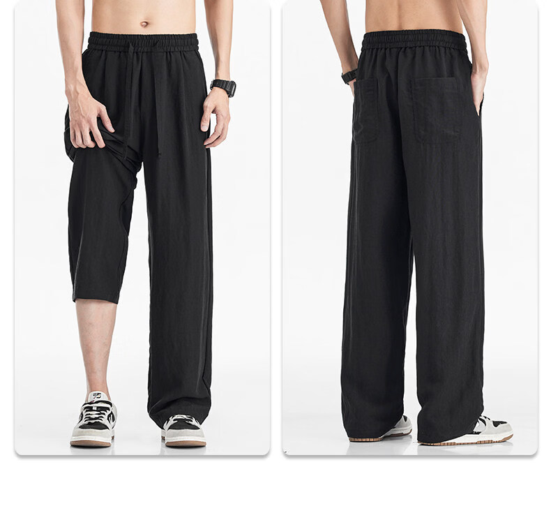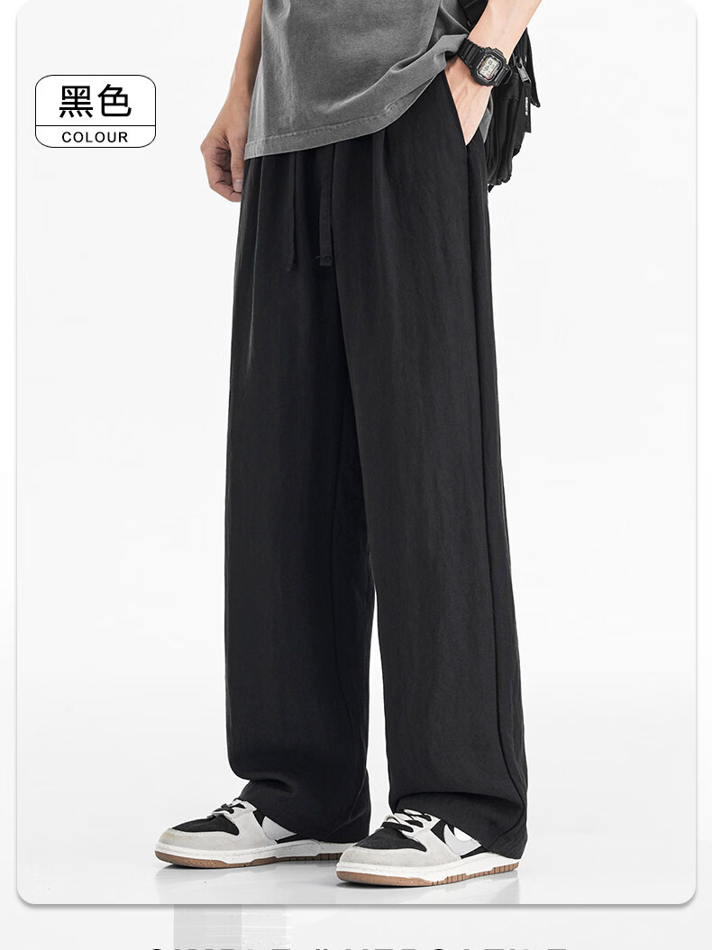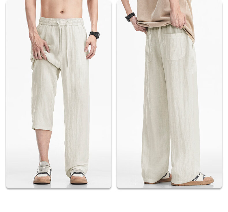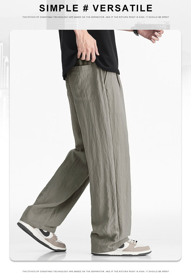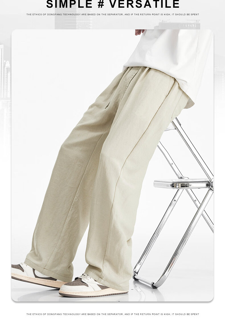 真维斯(Jeanswest)真维斯天丝亚麻透气休闲裤男士夏季薄款宽松直筒潮流百搭垂感长裤 咸菜绿 【凉感透气】 M 【建议80-110斤】