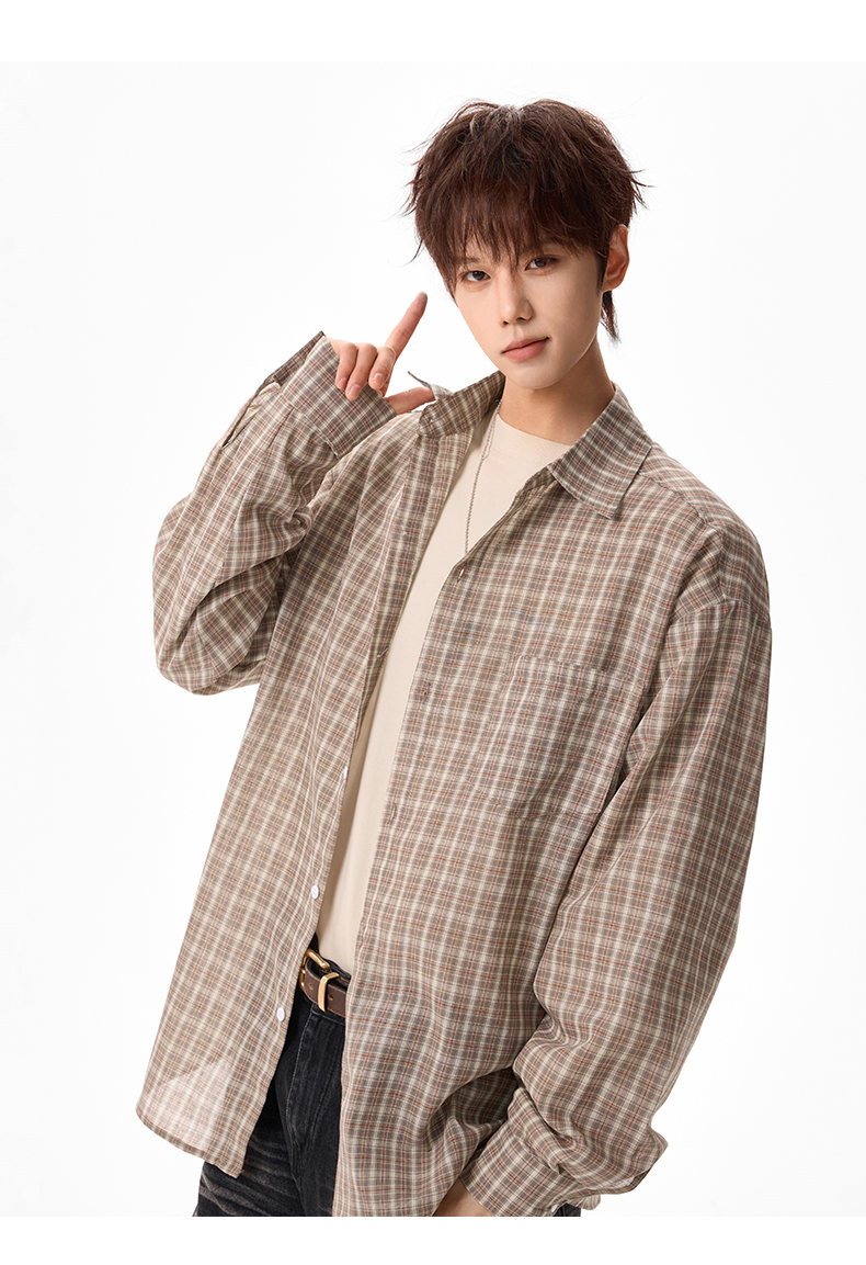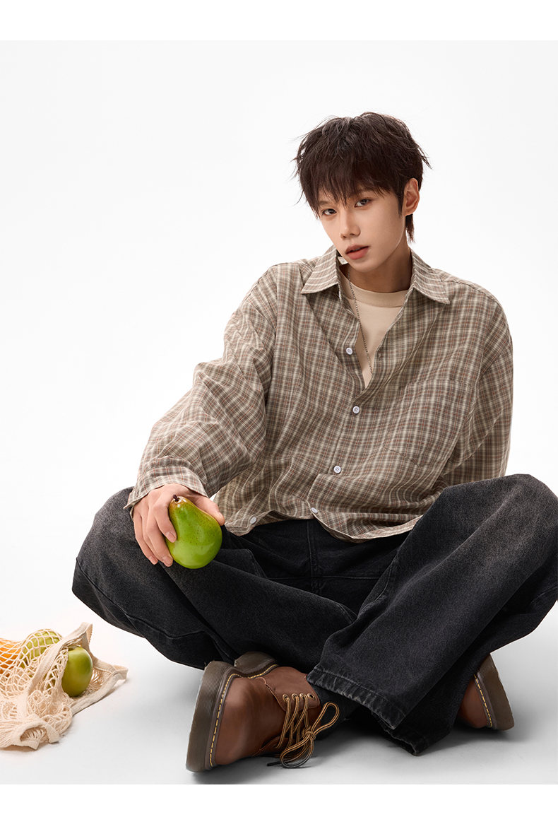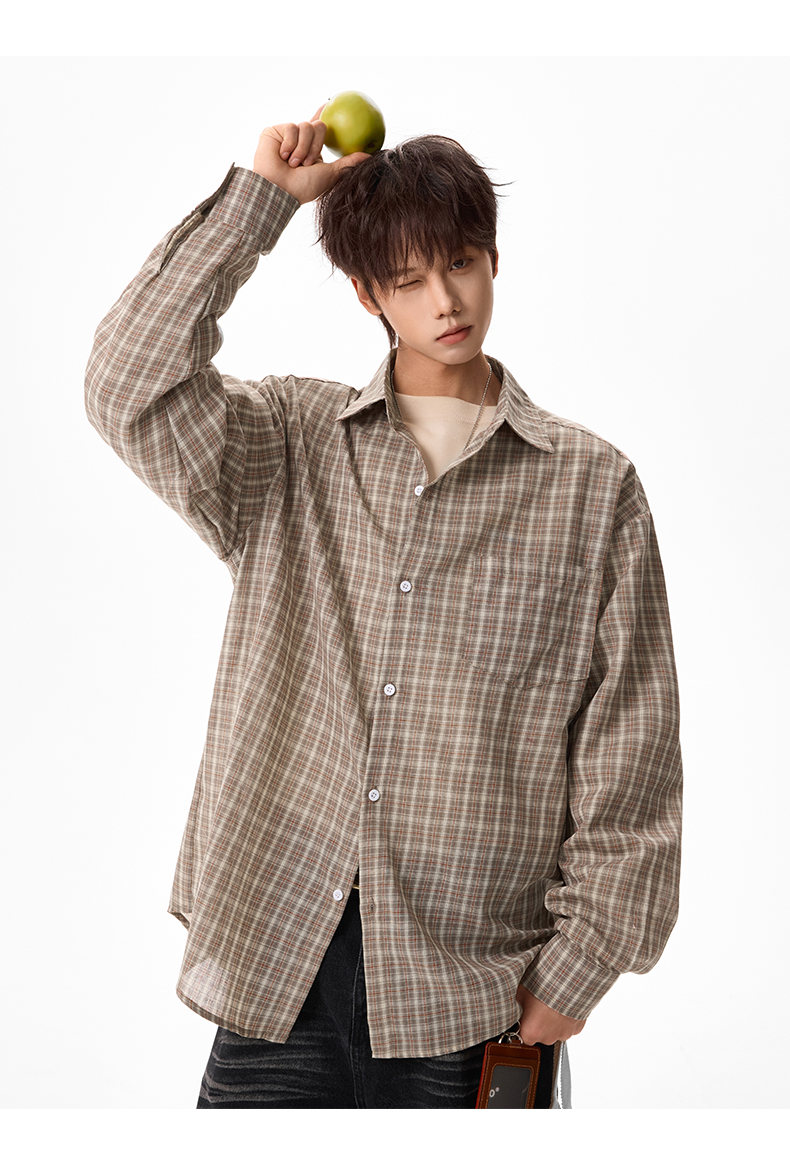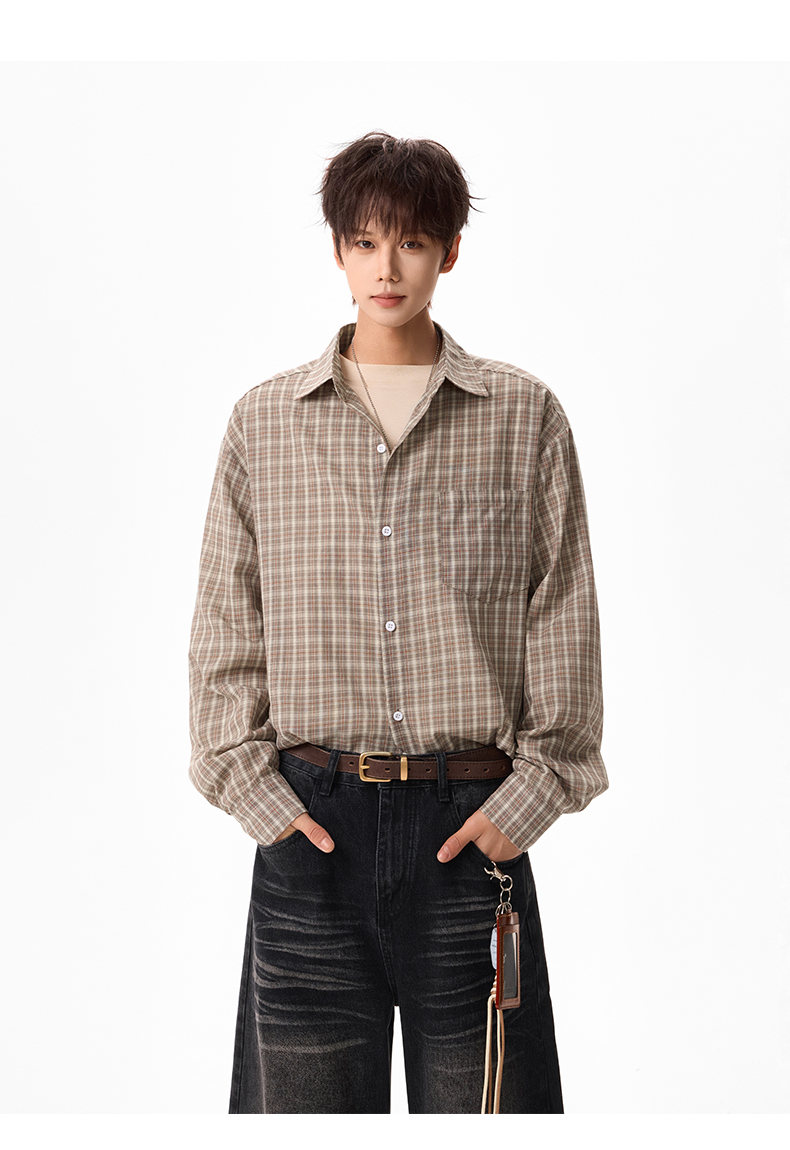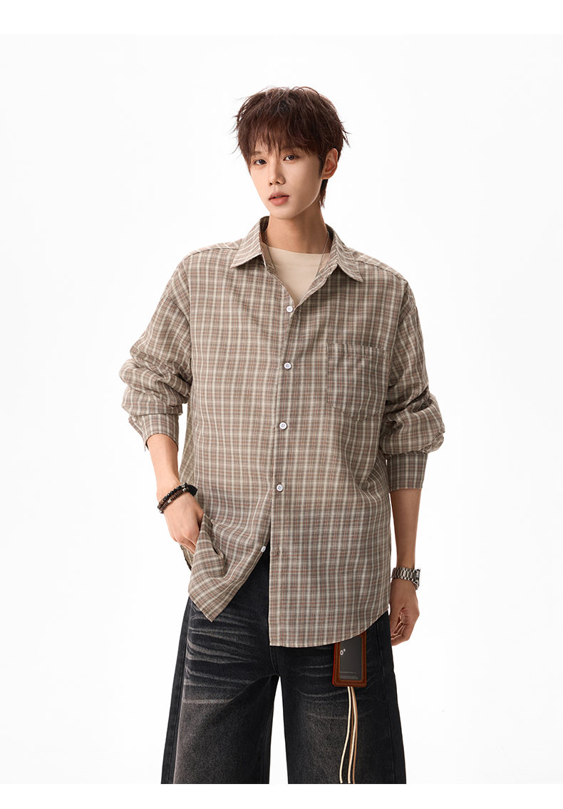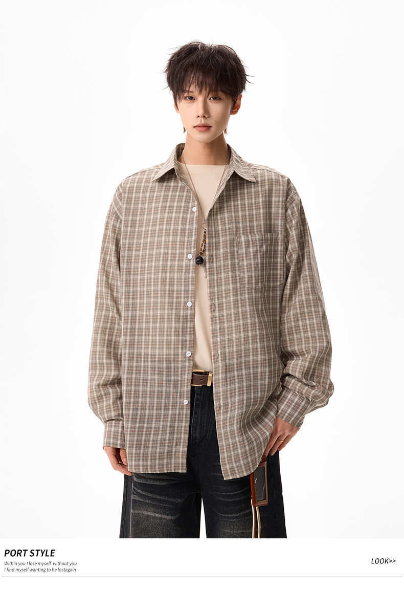 NEW OR MODE美式格纹撞色翻领衬衫男春季新款宽松休闲长袖衬衣百搭慵懒感外套 蓝格【高品质】 M 【建议90-110斤】