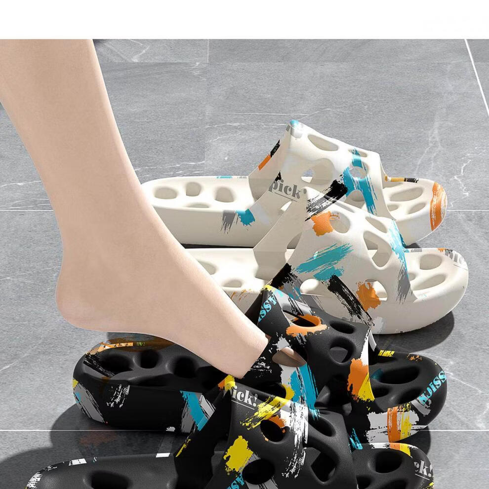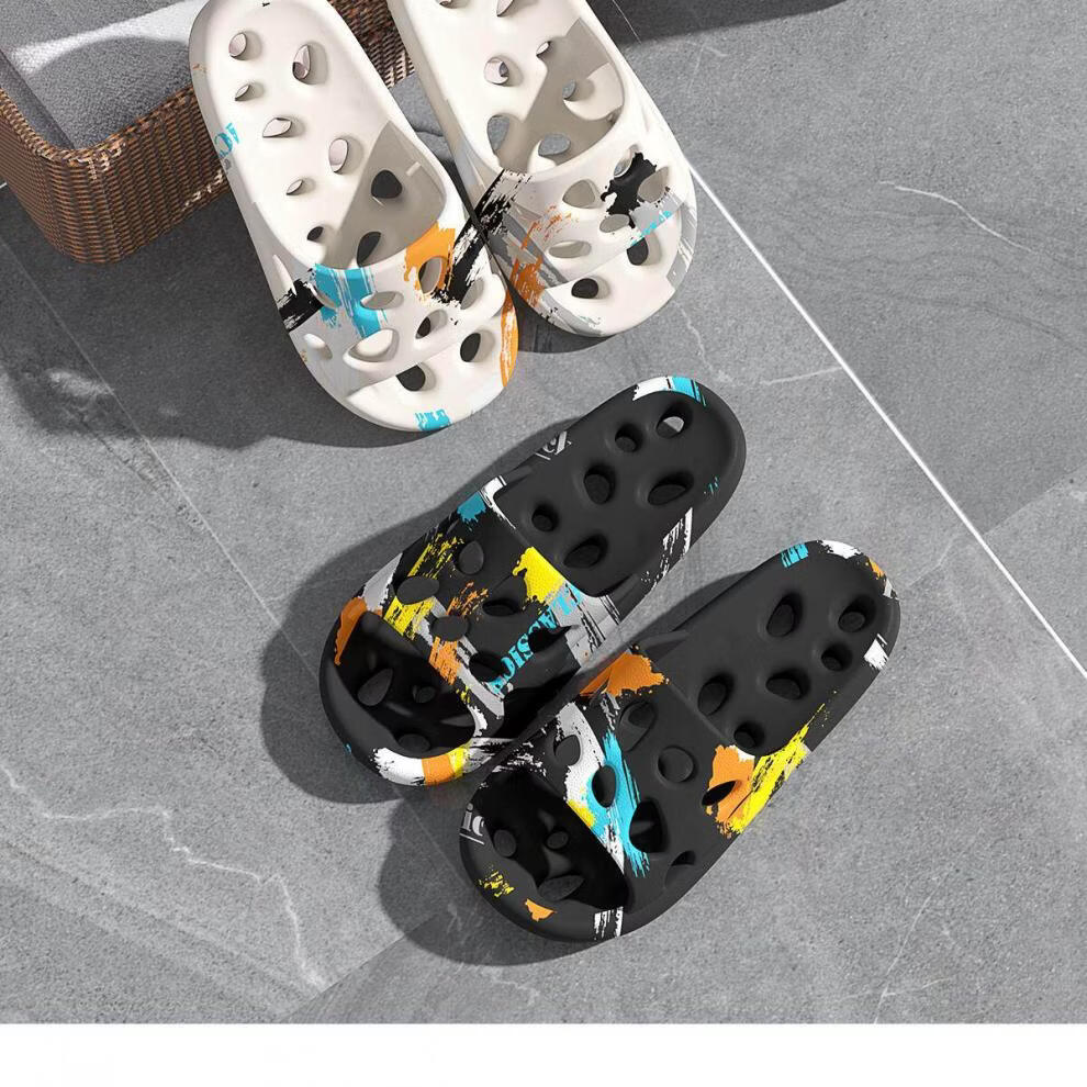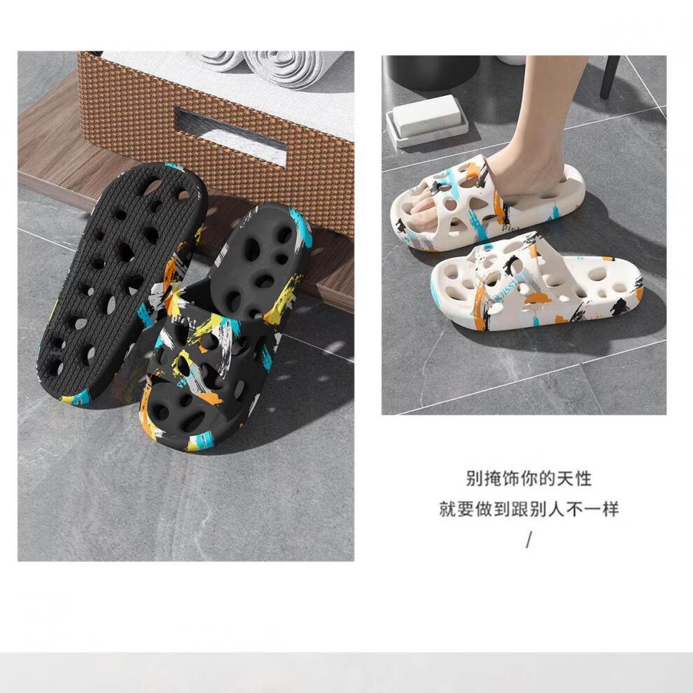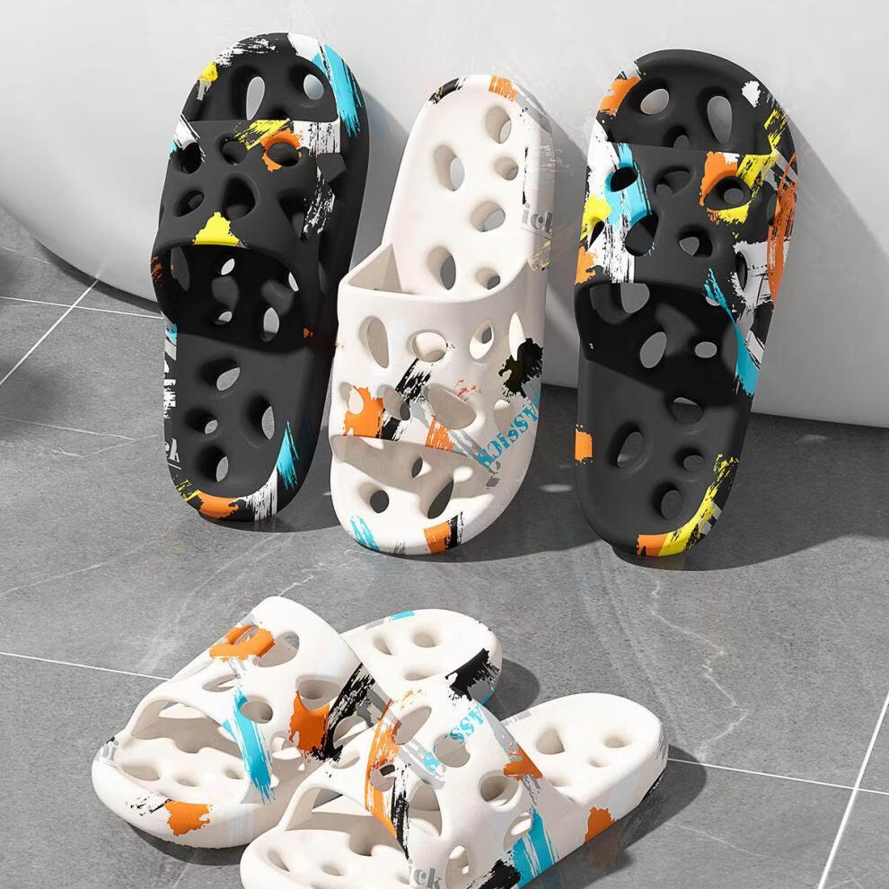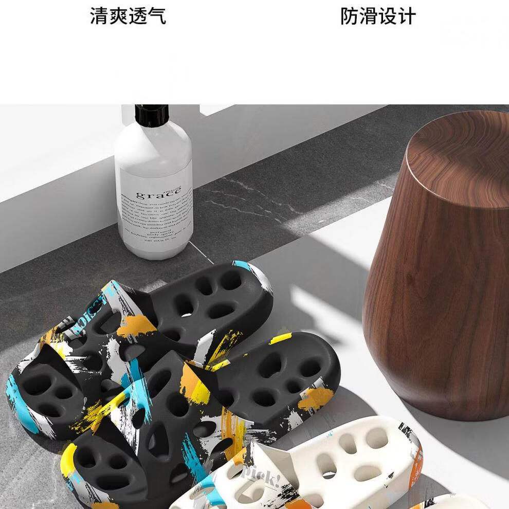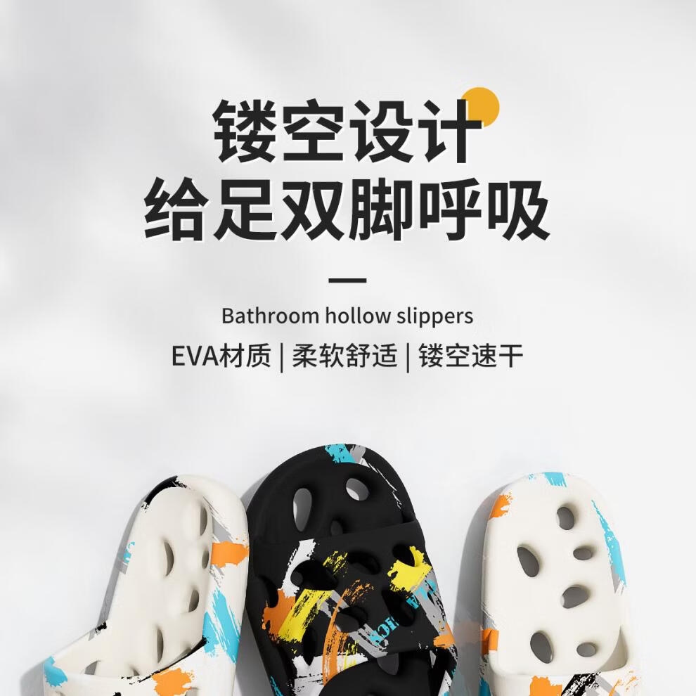 浴室拖鞋女士2026新款夏季洗澡镂空漏水防滑家居室内凉拖鞋男 黑色 40-41 【标准码】