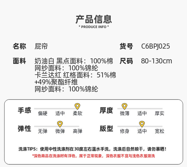 嘟嘟家【穿搭神器】女童裙帘儿童公主风配饰女孩超好看屁帘四季款红色款 奶油白 100