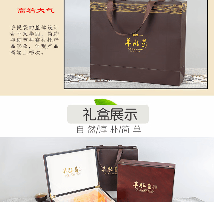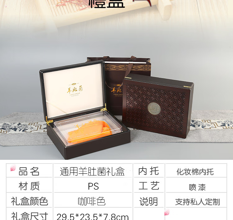 羊肚菌礼盒空盒高档包装半斤装山珍干货土特产礼品盒木盒空盒菌菇 镂空大羊肚菌礼盒100-150克
