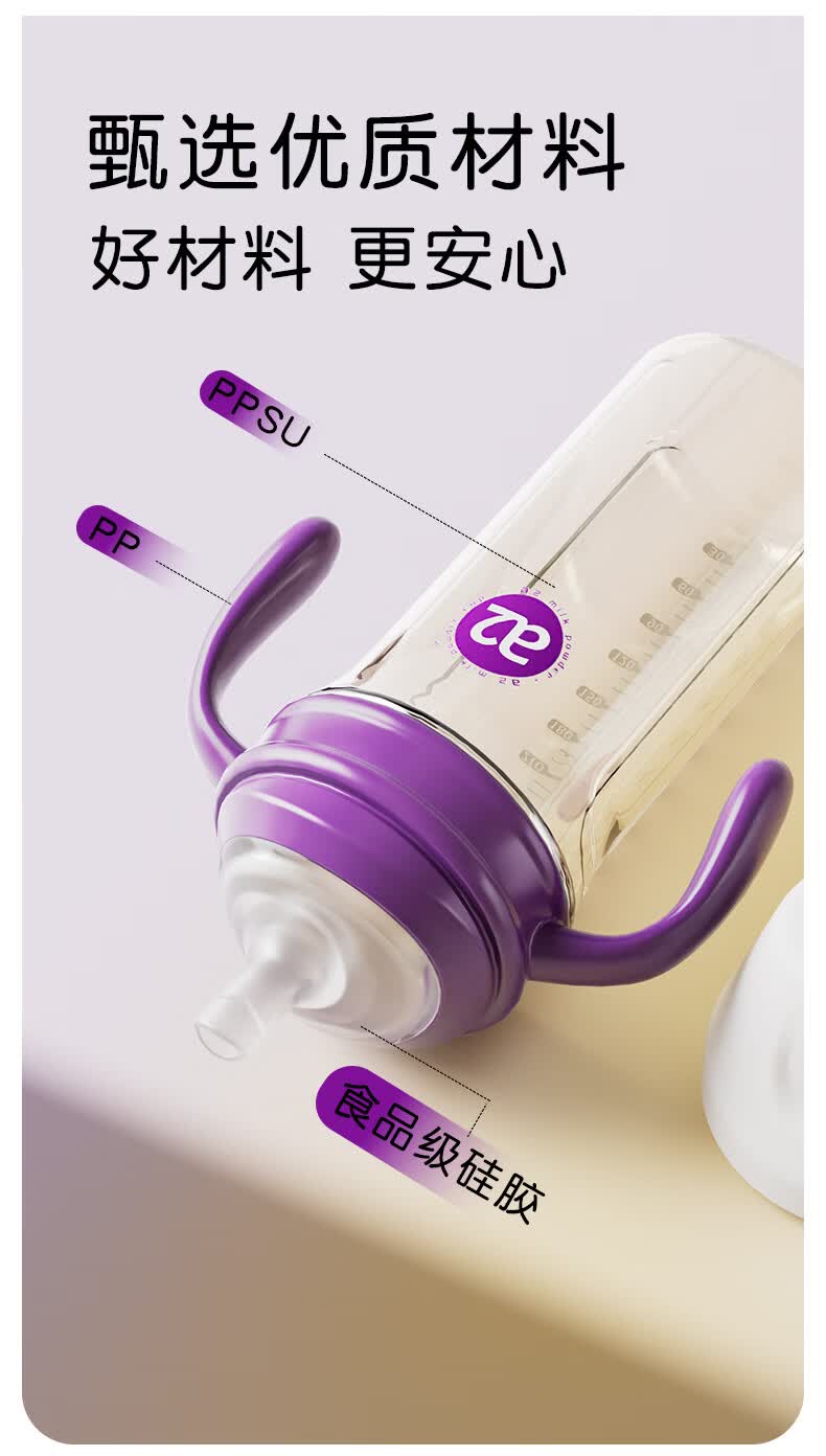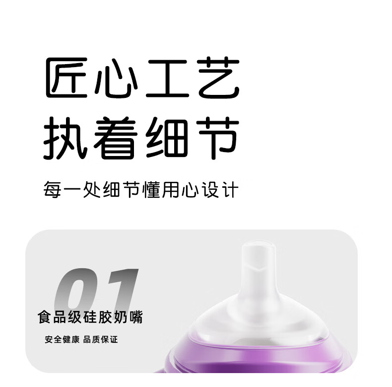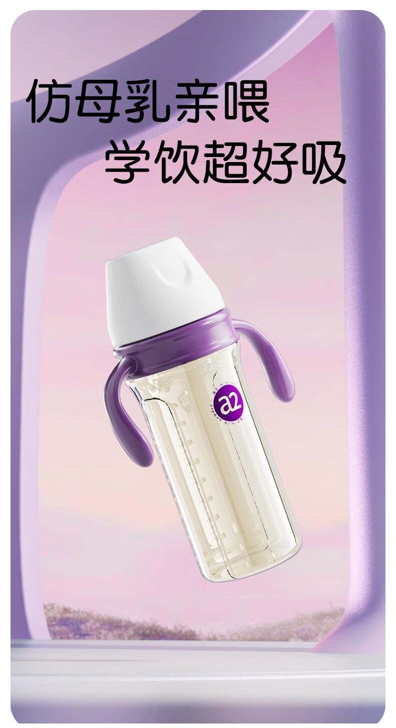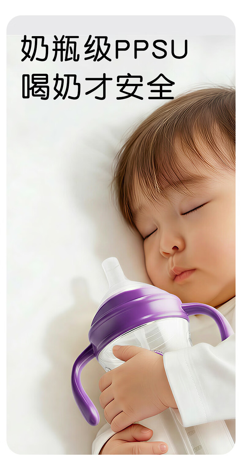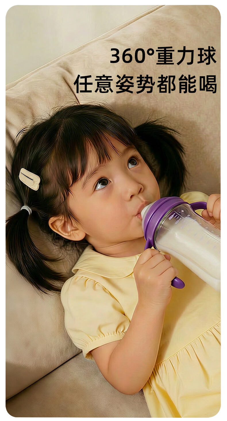 A 2奶瓶6-12个月带重力球吸管1-3岁通用防胀气PPSU还原母乳亲喂 300ml+V阀咬吸水嘴+重力球吸管 12月+