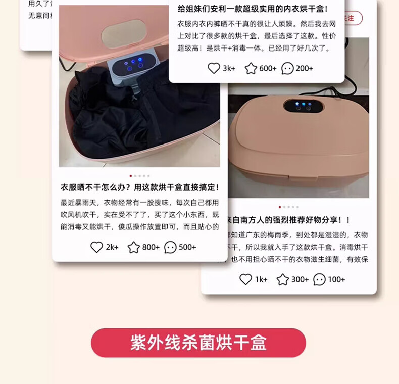 KANGYAN内衣内裤紫外线消毒烘干机 家用小型 UV 杀菌内衣裤消毒机 三重杀菌 无菌收纳烘干一体机 奶白色【杀菌款】UV 紫外线杀菌丨三档模式调节