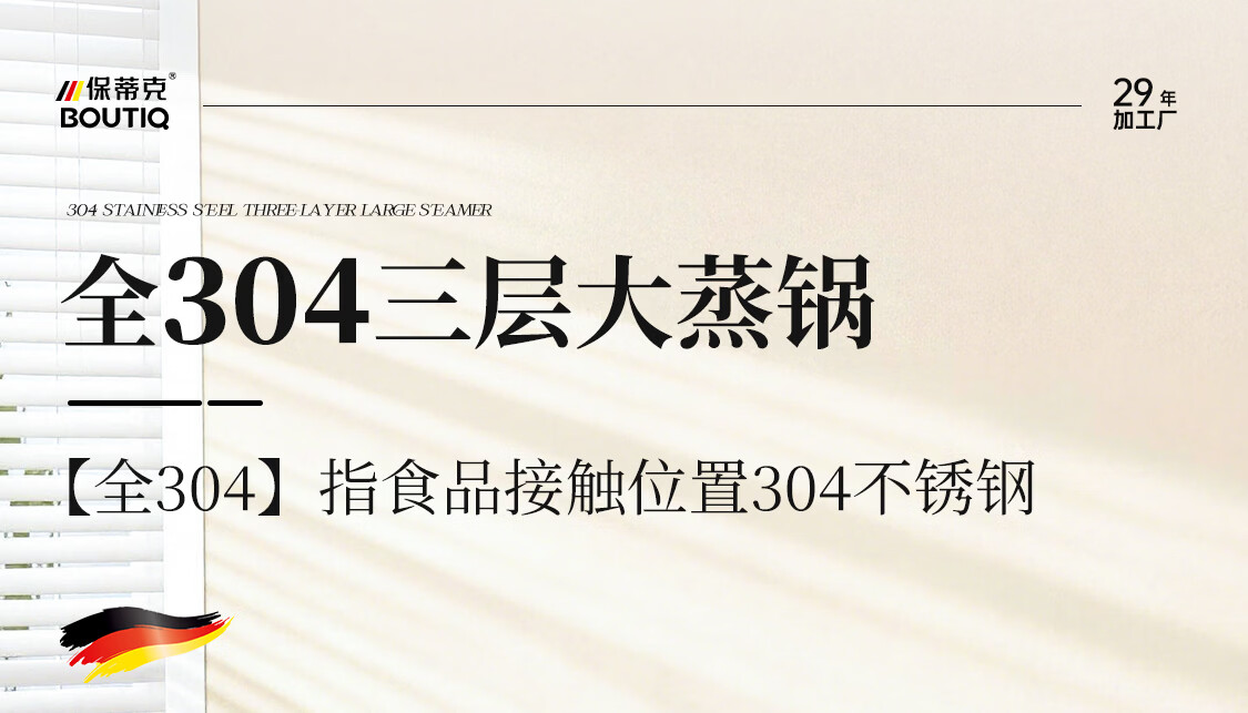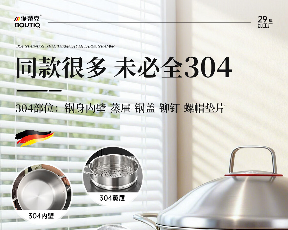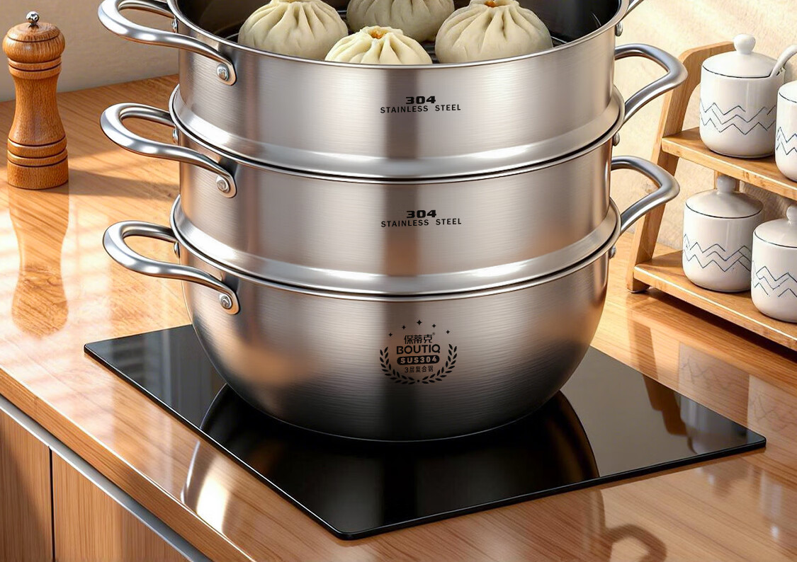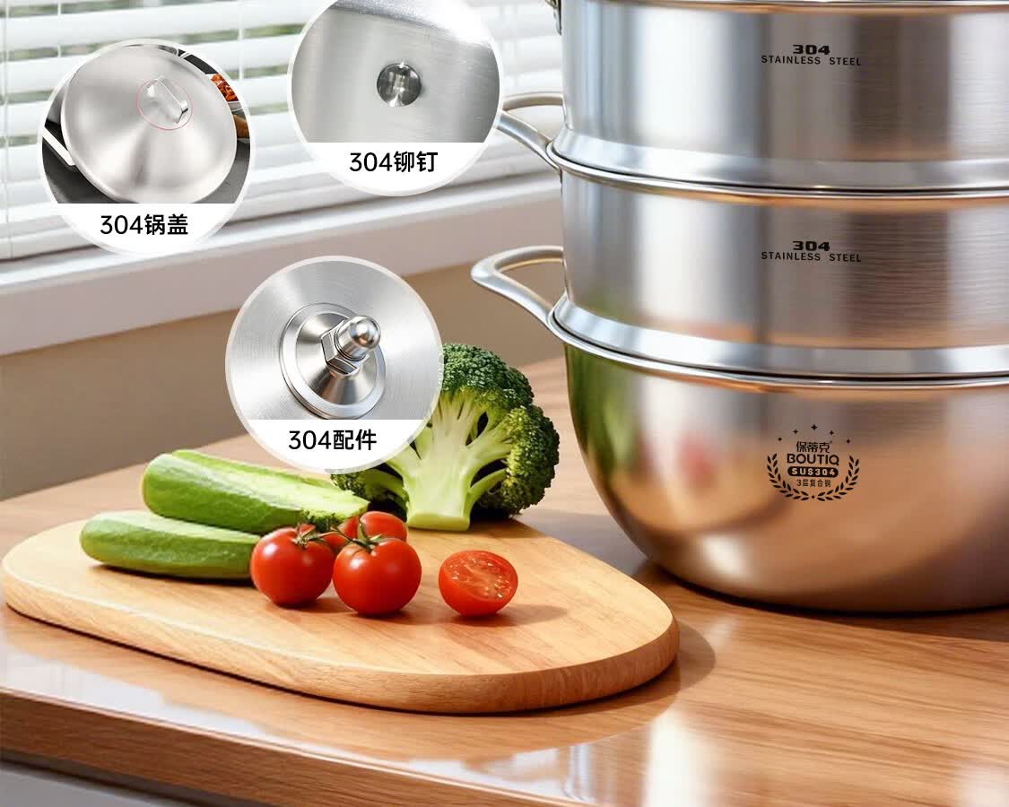 BOUTIQ全304不锈钢蒸锅三层燃气灶电磁炉专用蒸鱼蒸包子大容量一体成型 【重约3.27KG】304蒸锅 30cm