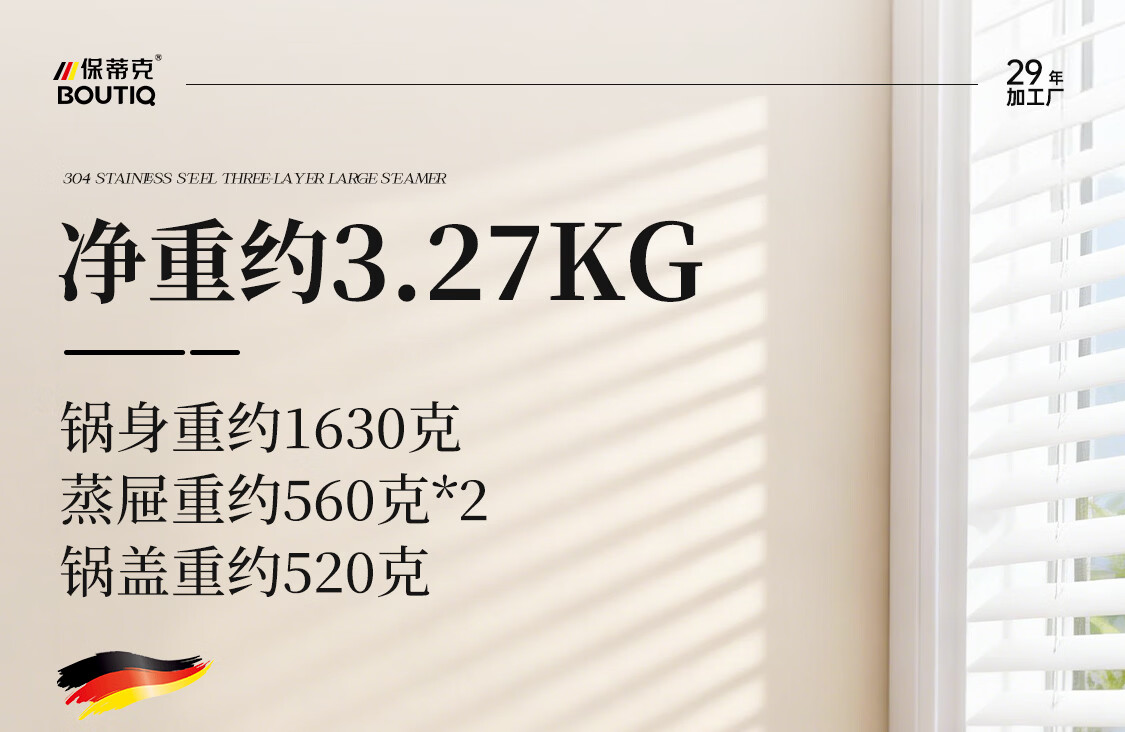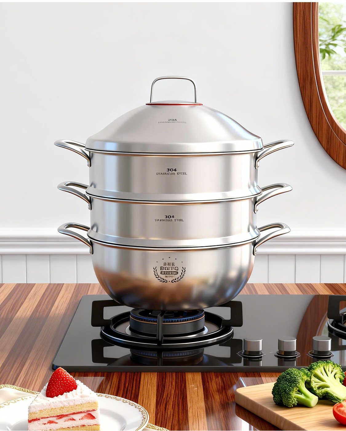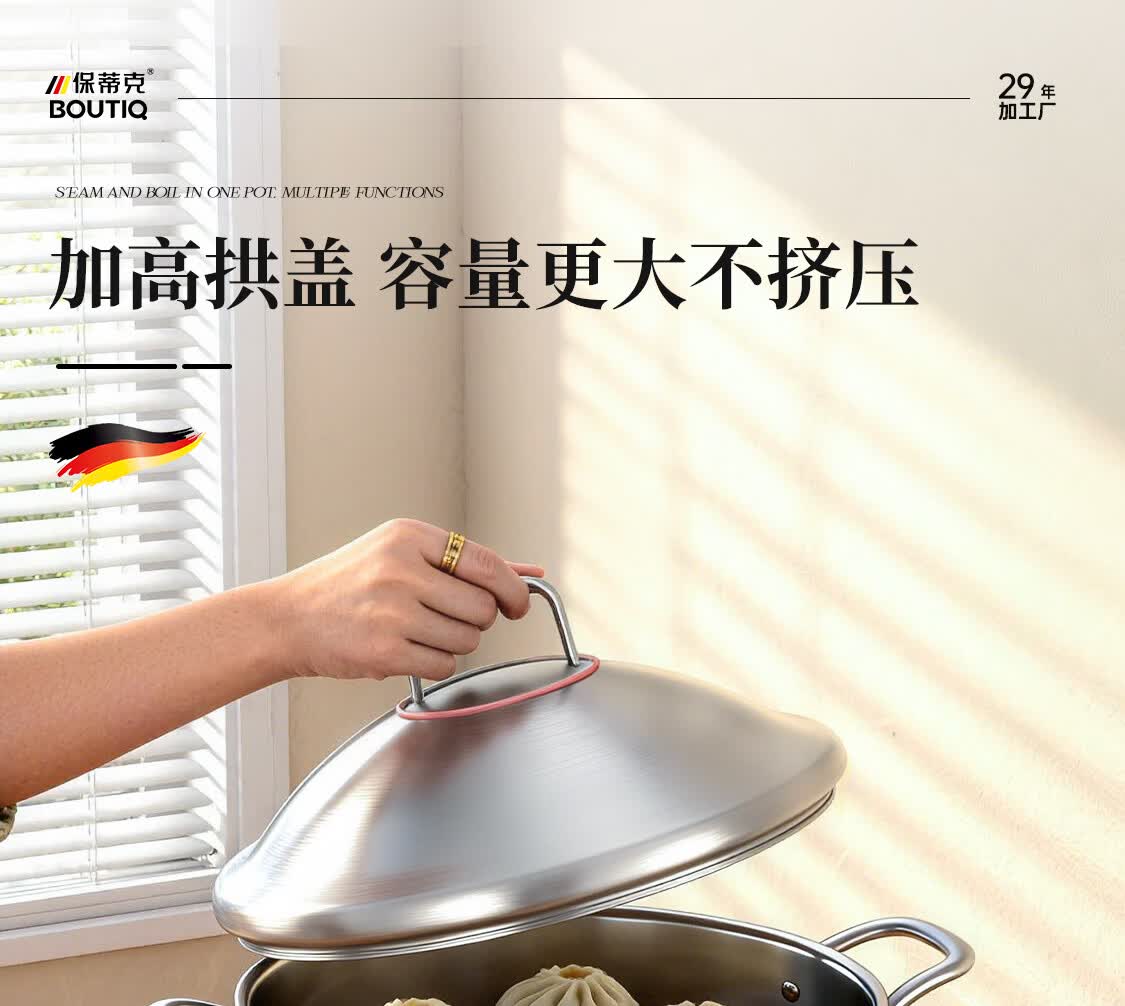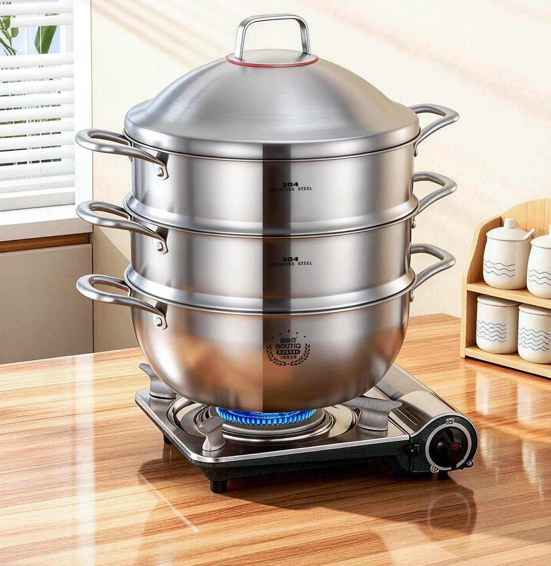 BOUTIQ全304不锈钢蒸锅三层燃气灶电磁炉专用蒸鱼蒸包子大容量一体成型 【重约3.27KG】304蒸锅 30cm