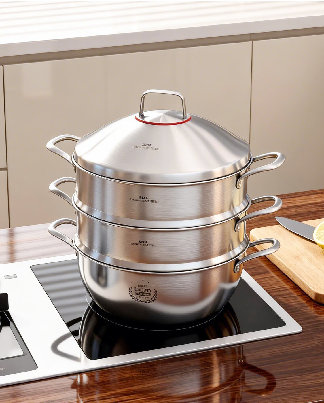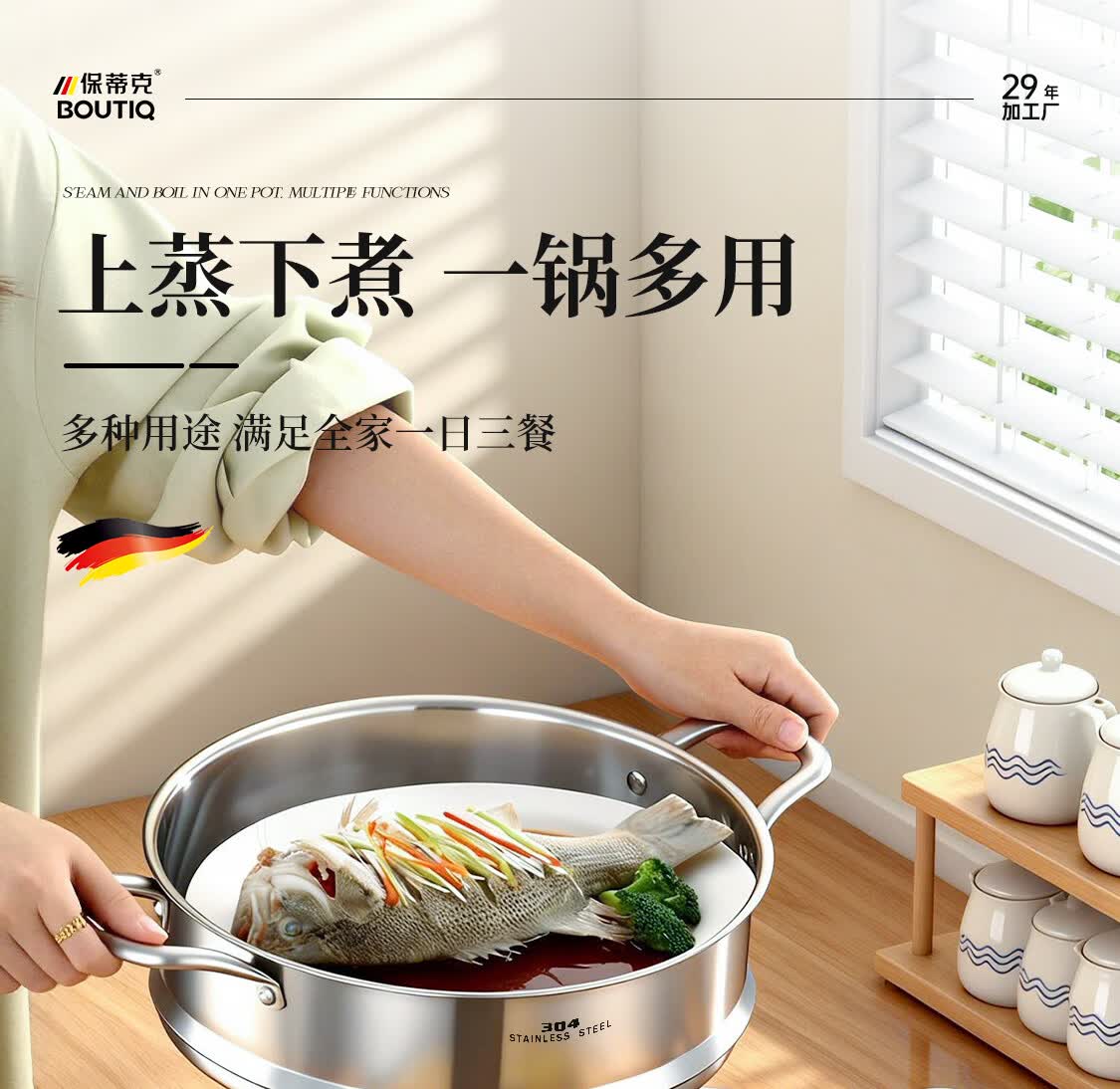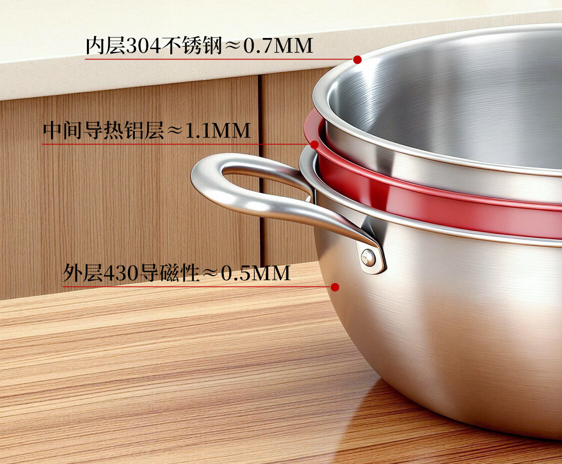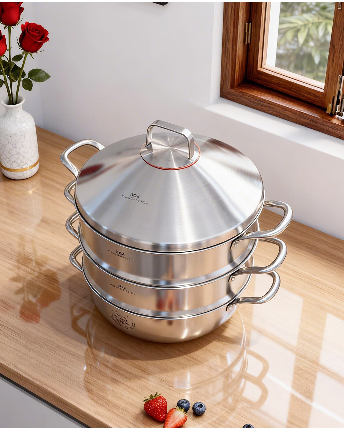 BOUTIQ全304不锈钢蒸锅三层燃气灶电磁炉专用蒸鱼蒸包子大容量一体成型 【重约3.27KG】304蒸锅 30cm