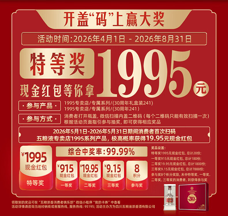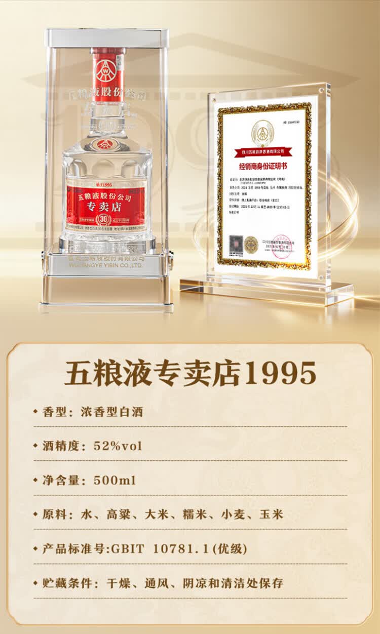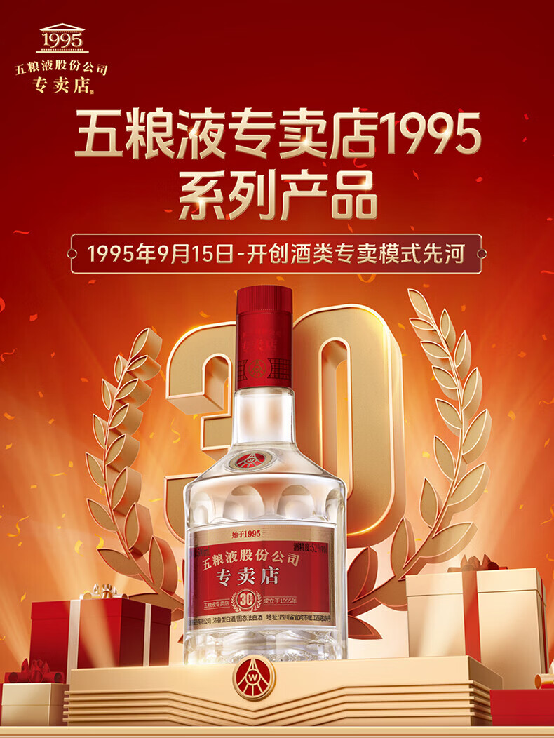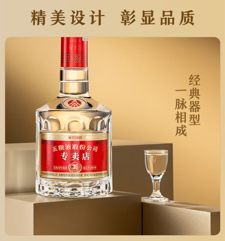五粮液专卖店1995 30周年版 52度 500ml 单瓶装