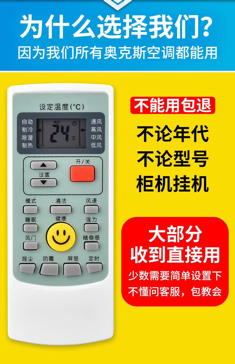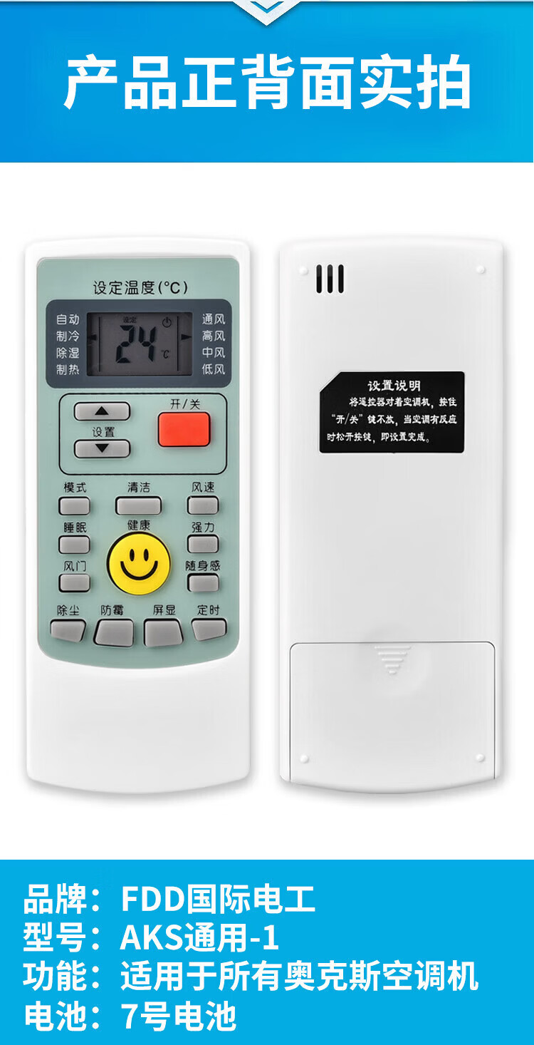 国际电工(FDD)适用奥克斯空调遥控器 通用款万能遥控器挂机柜机中央空调全适用 奥克斯全通用-1只装