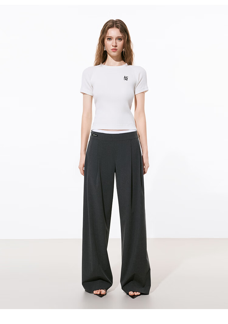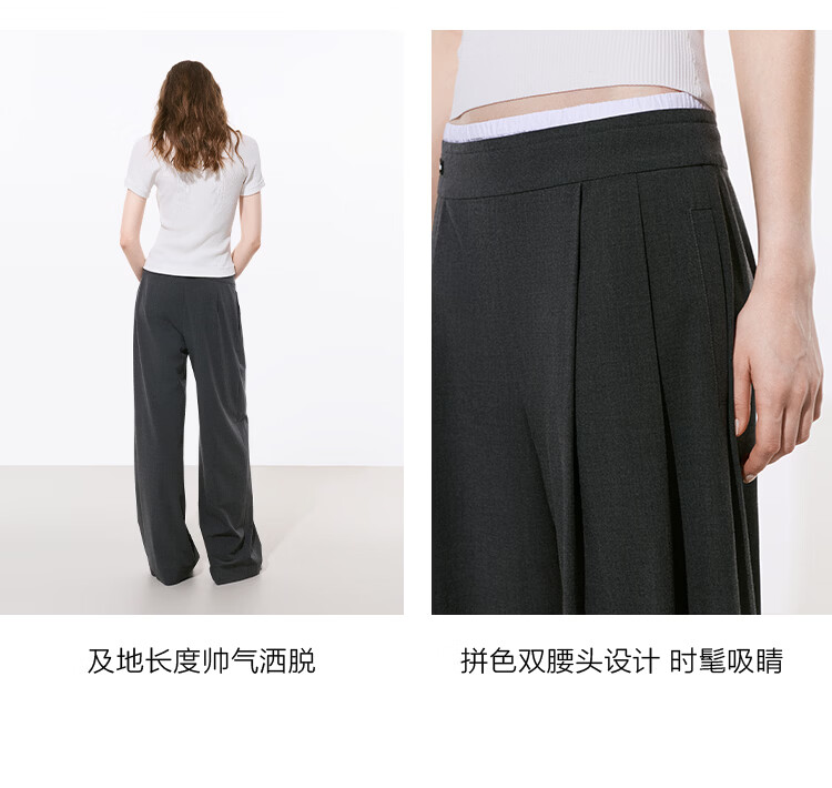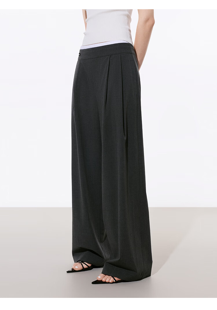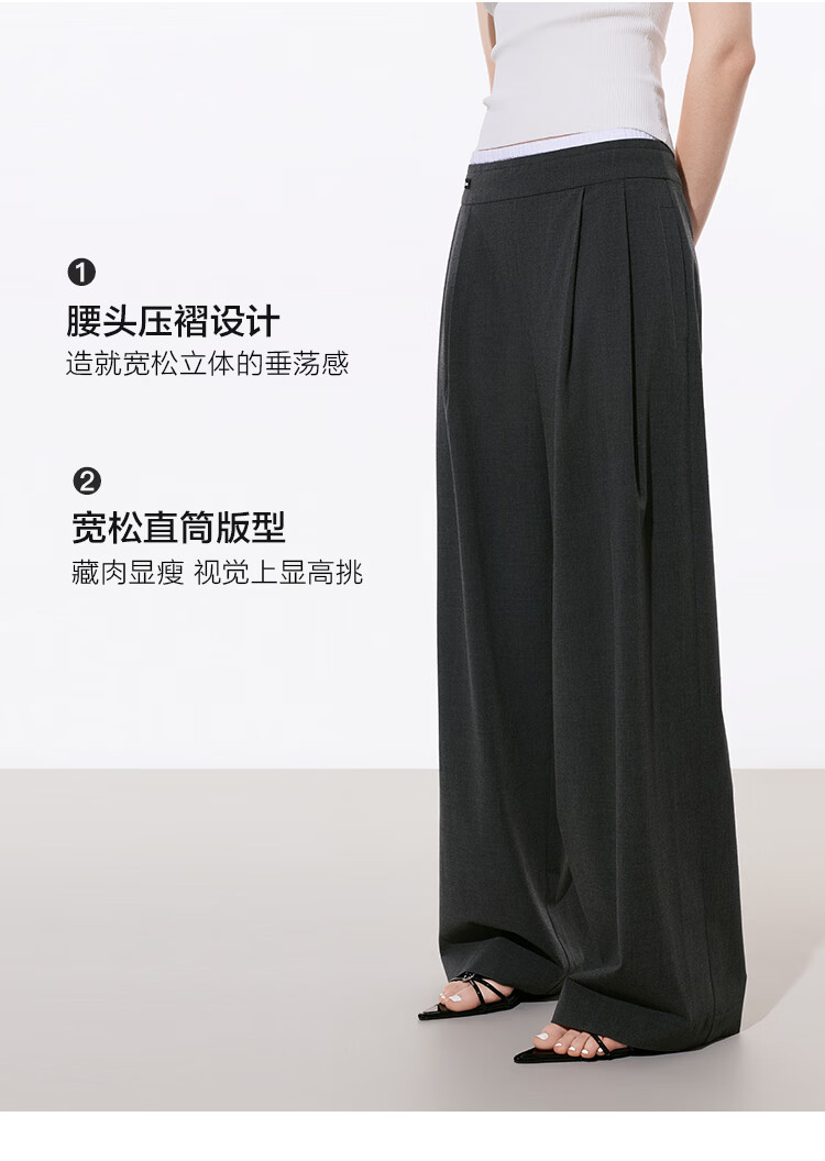 金羽杰2026年夏季新品通勤直筒休闲裤女装长款宽松西装裤子S262PA324Y 深灰色 L 适合130斤以下