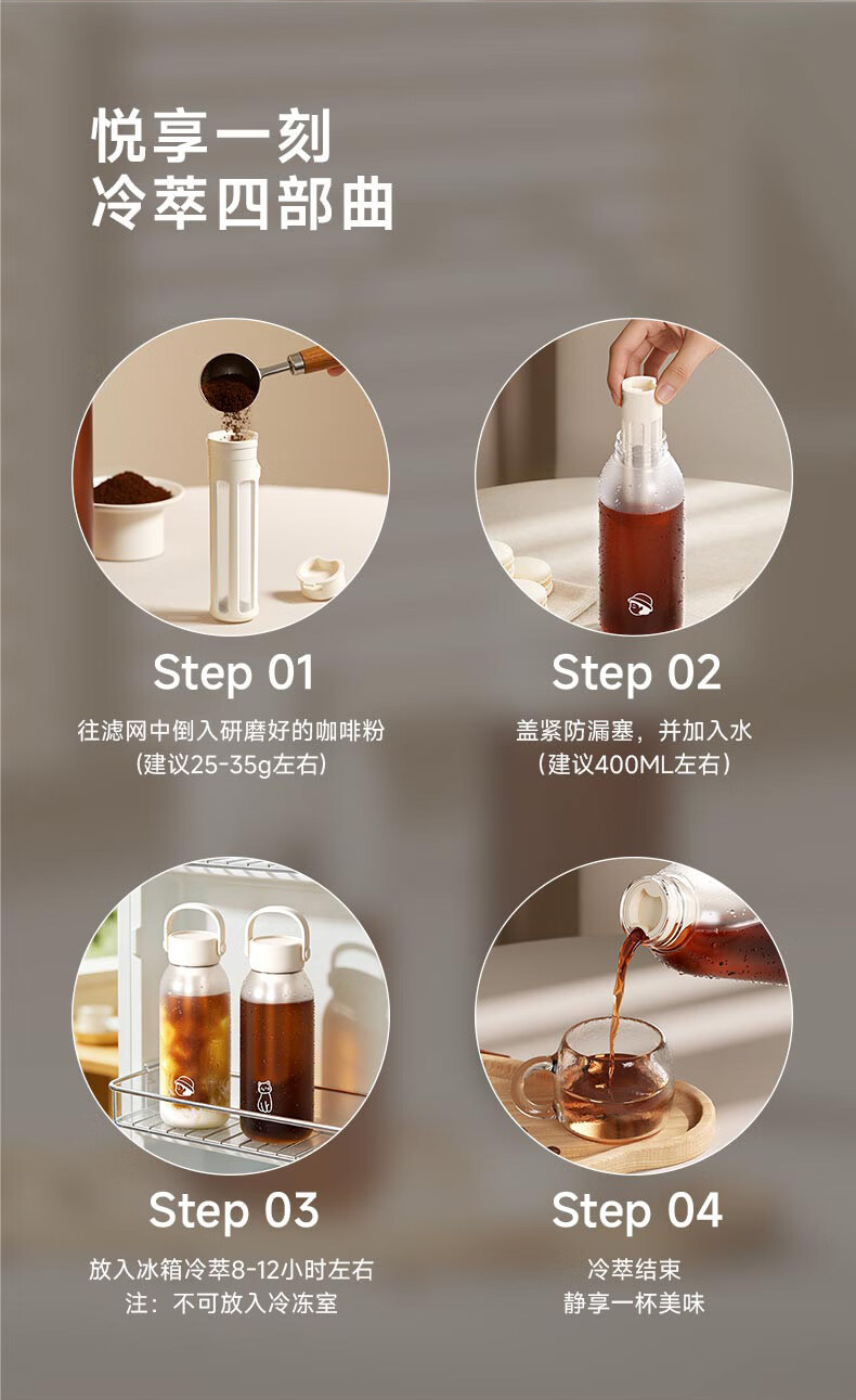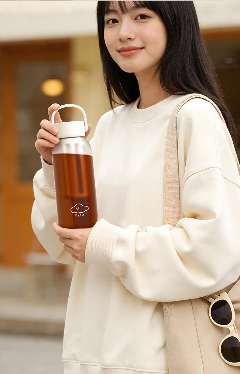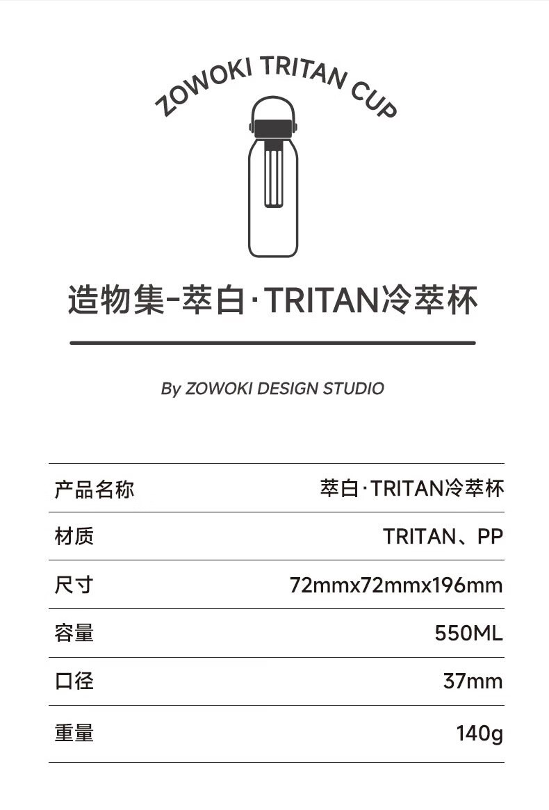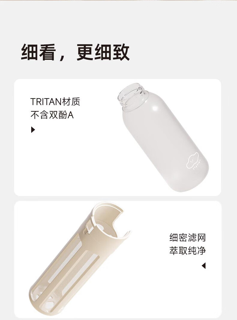 造物集冷萃杯冷泡茶壶塑料花茶杯咖啡杯母婴级Tritan耐高温便携 萃白-氧气云【升级长滤网】