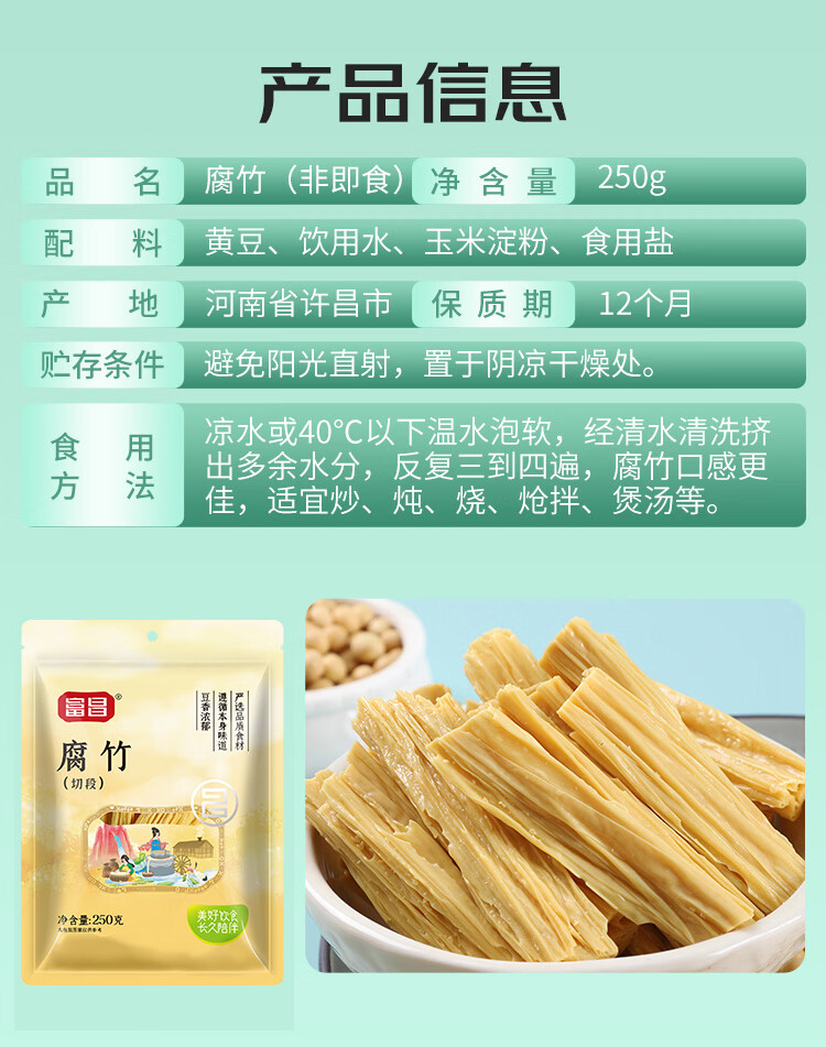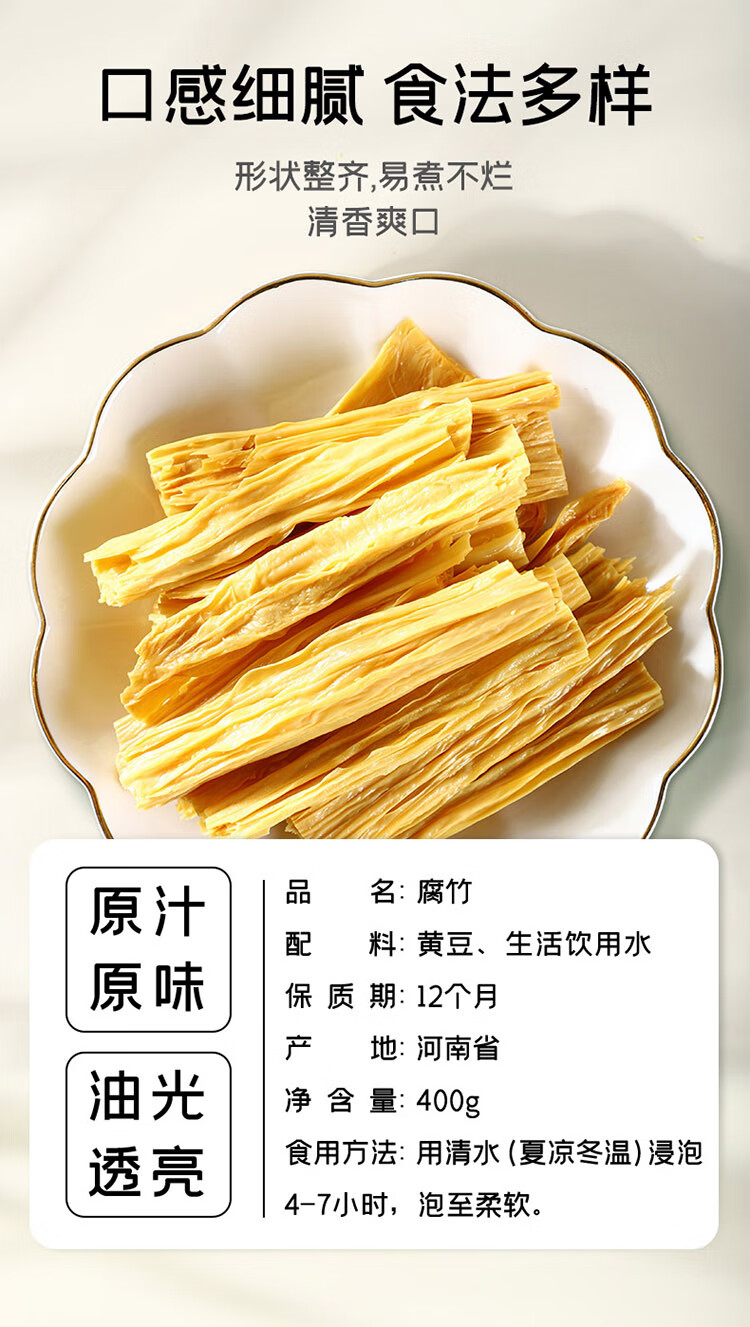 富昌黄豆制品南北干货 腐竹豆皮素肉炒菜火锅凉拌食材 响铃卷响之卷 腐竹400g