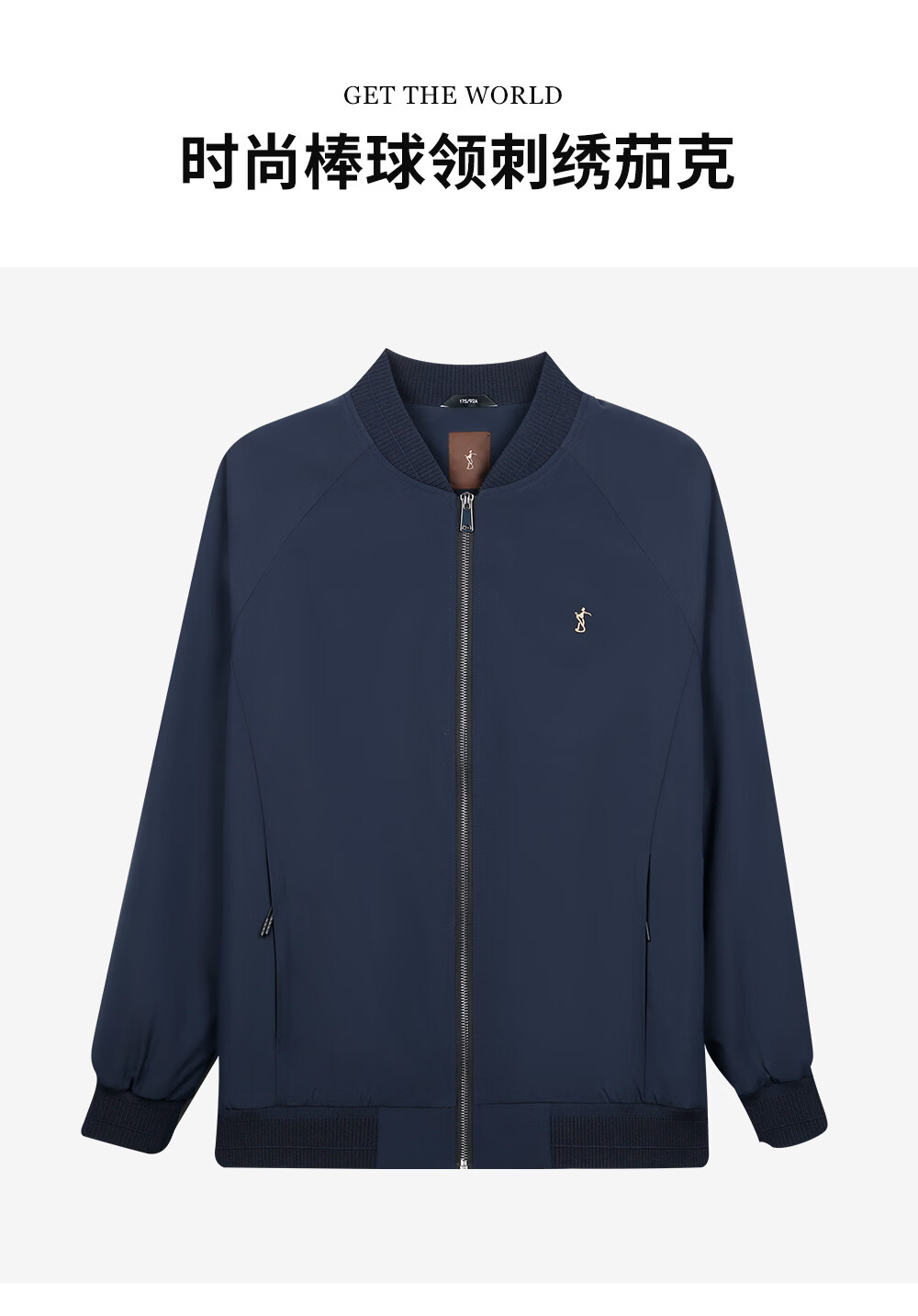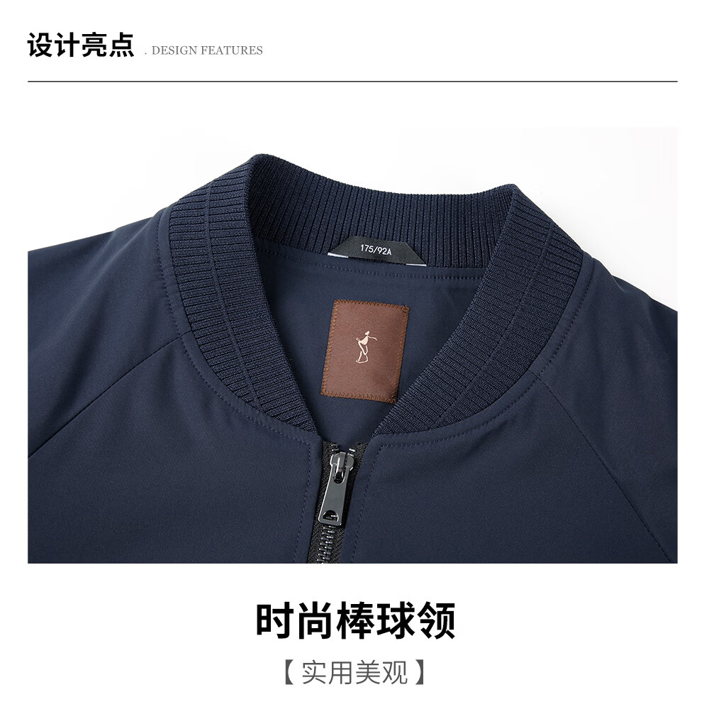 才子(TRIES)男士夹克春秋薄款棒球领刺绣上衣男装简约宽松休闲外套青少年工装 深蓝色 XL 180/96A