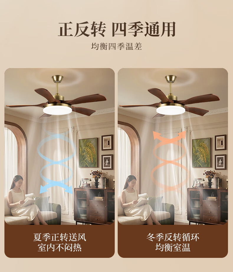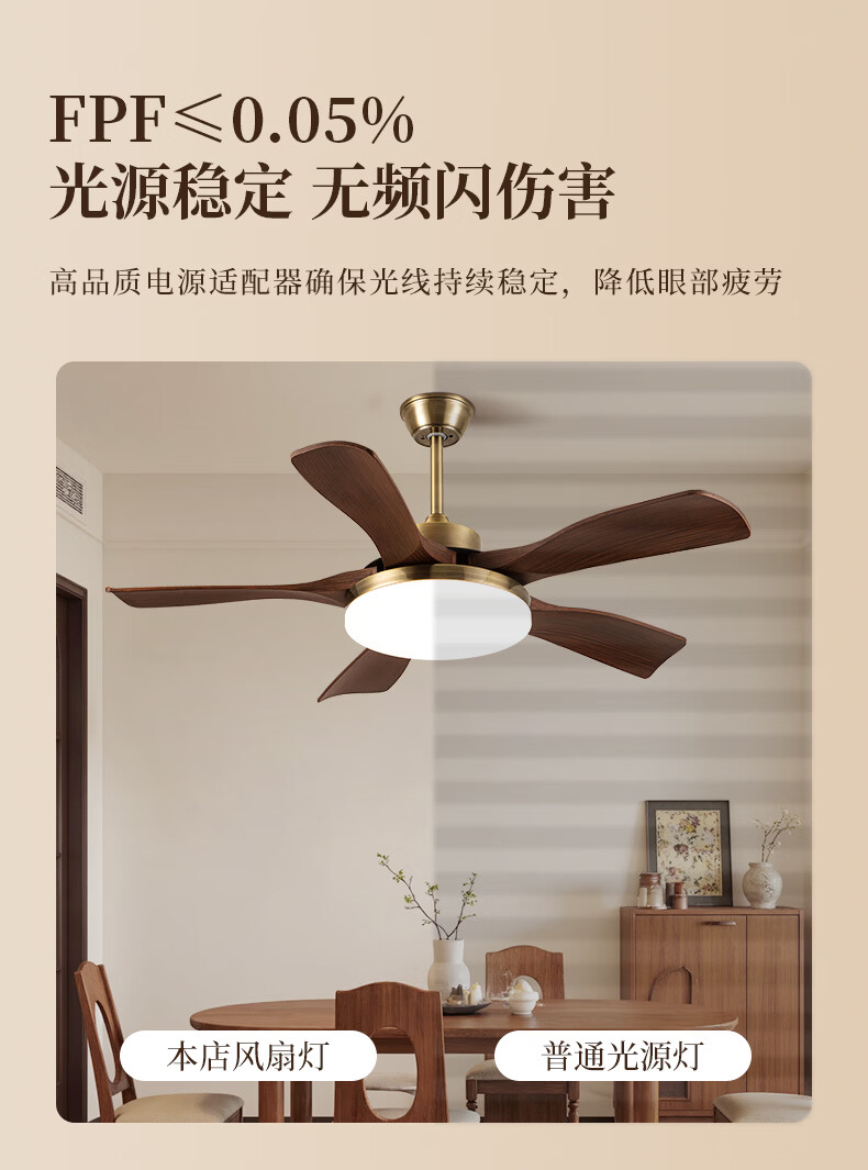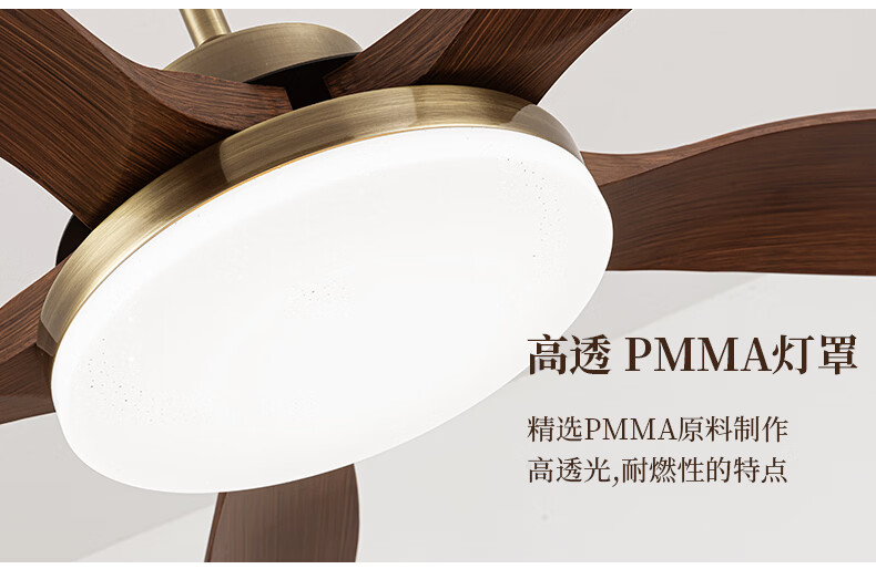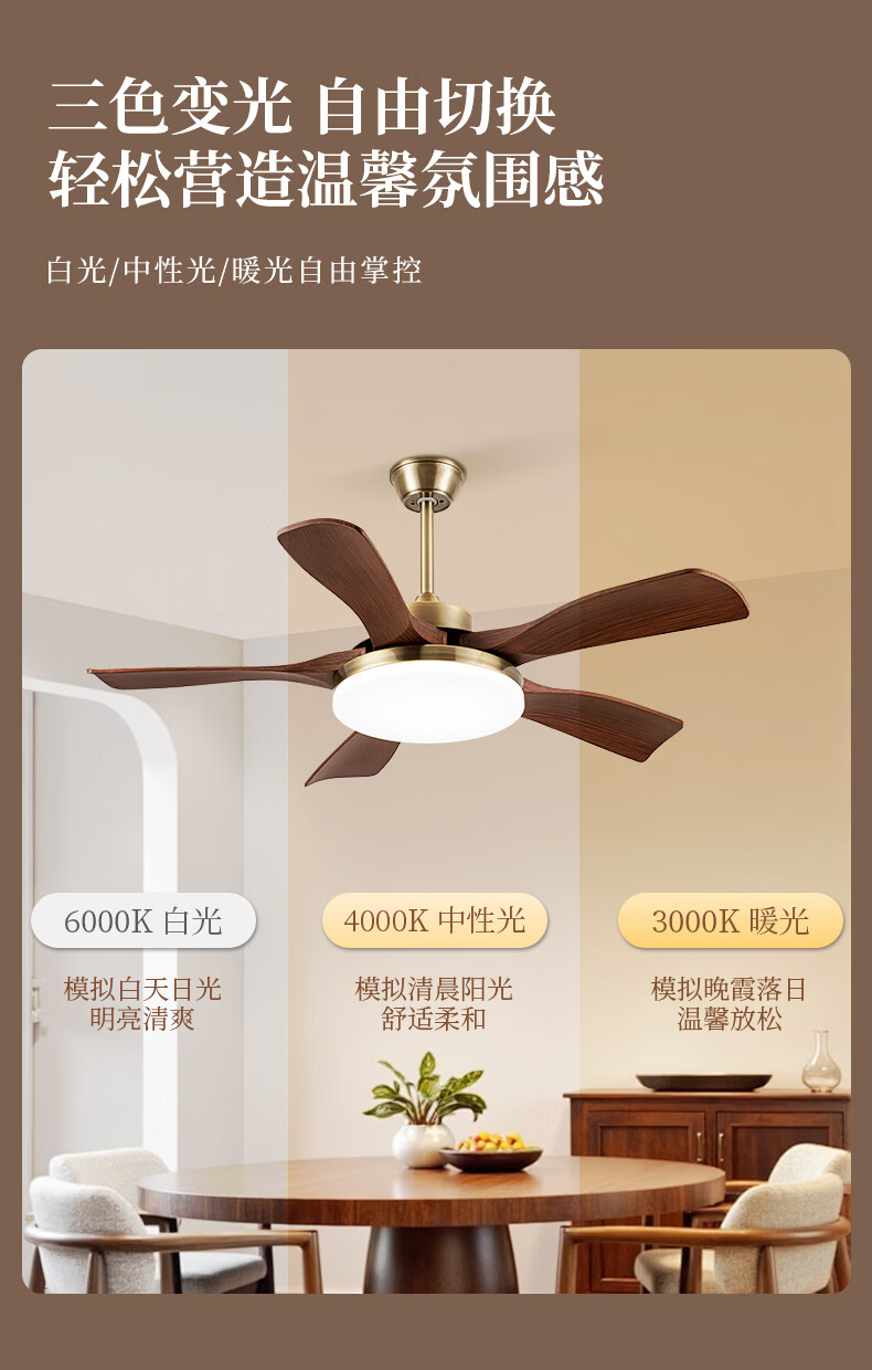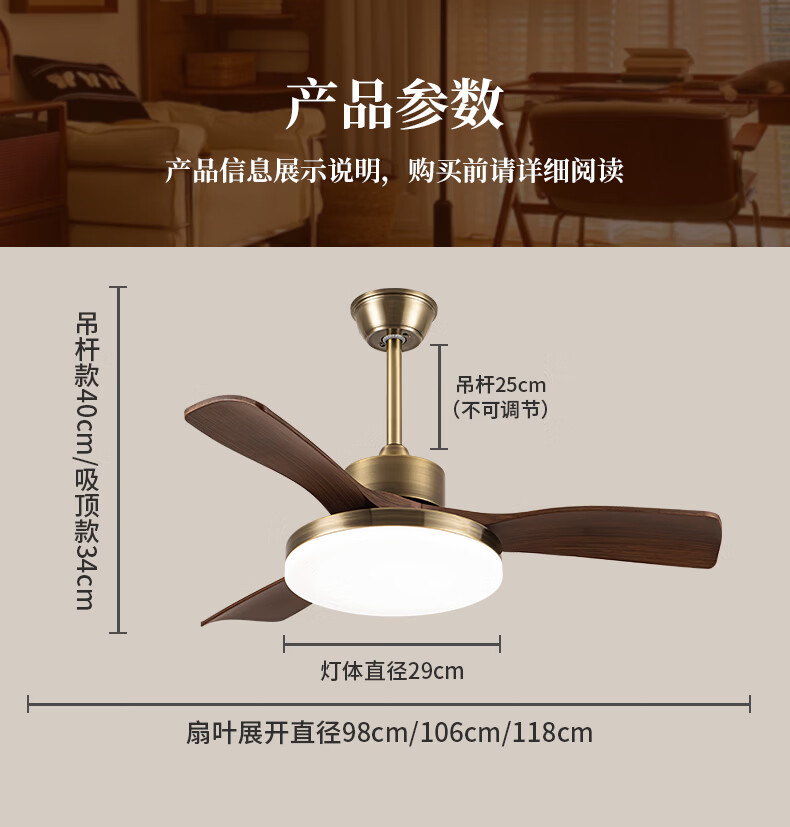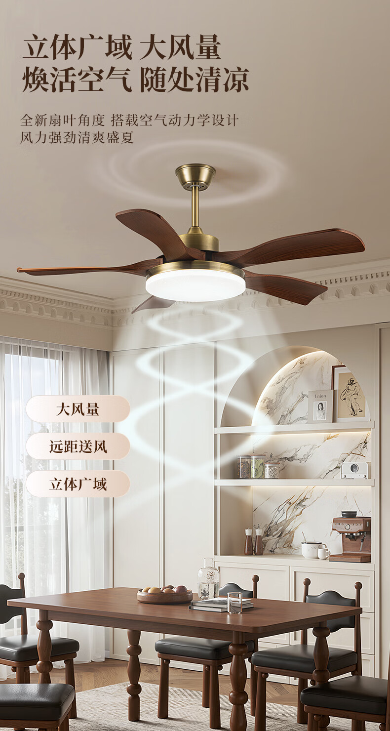 钻石牌风扇灯一体餐厅吊扇灯客厅吊灯带风扇卧室吸顶吊顶简约电扇灯具 36寸三叶古铜+黑胡桃遥控-吸顶