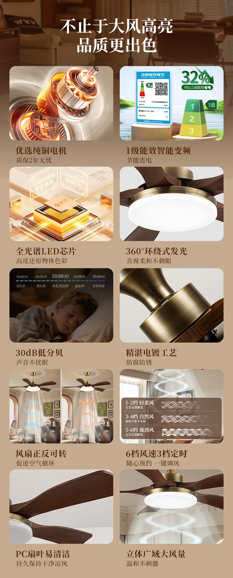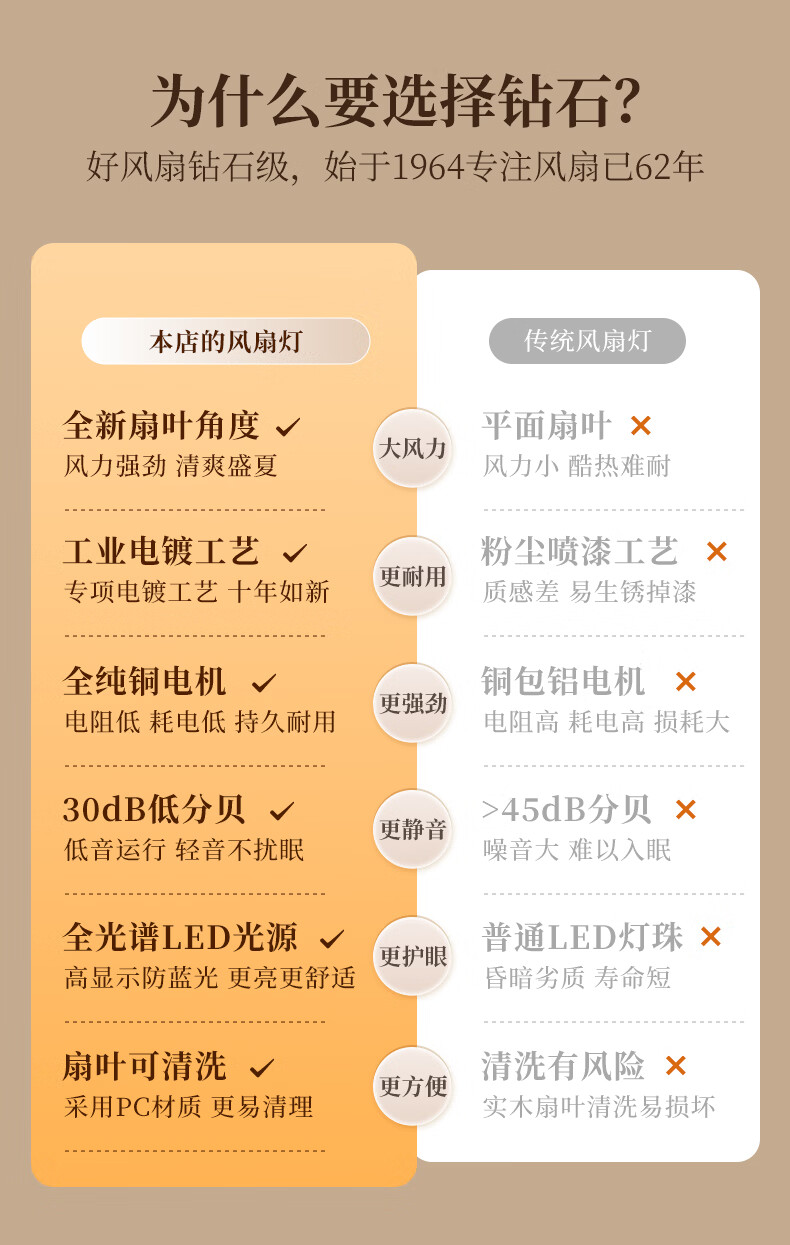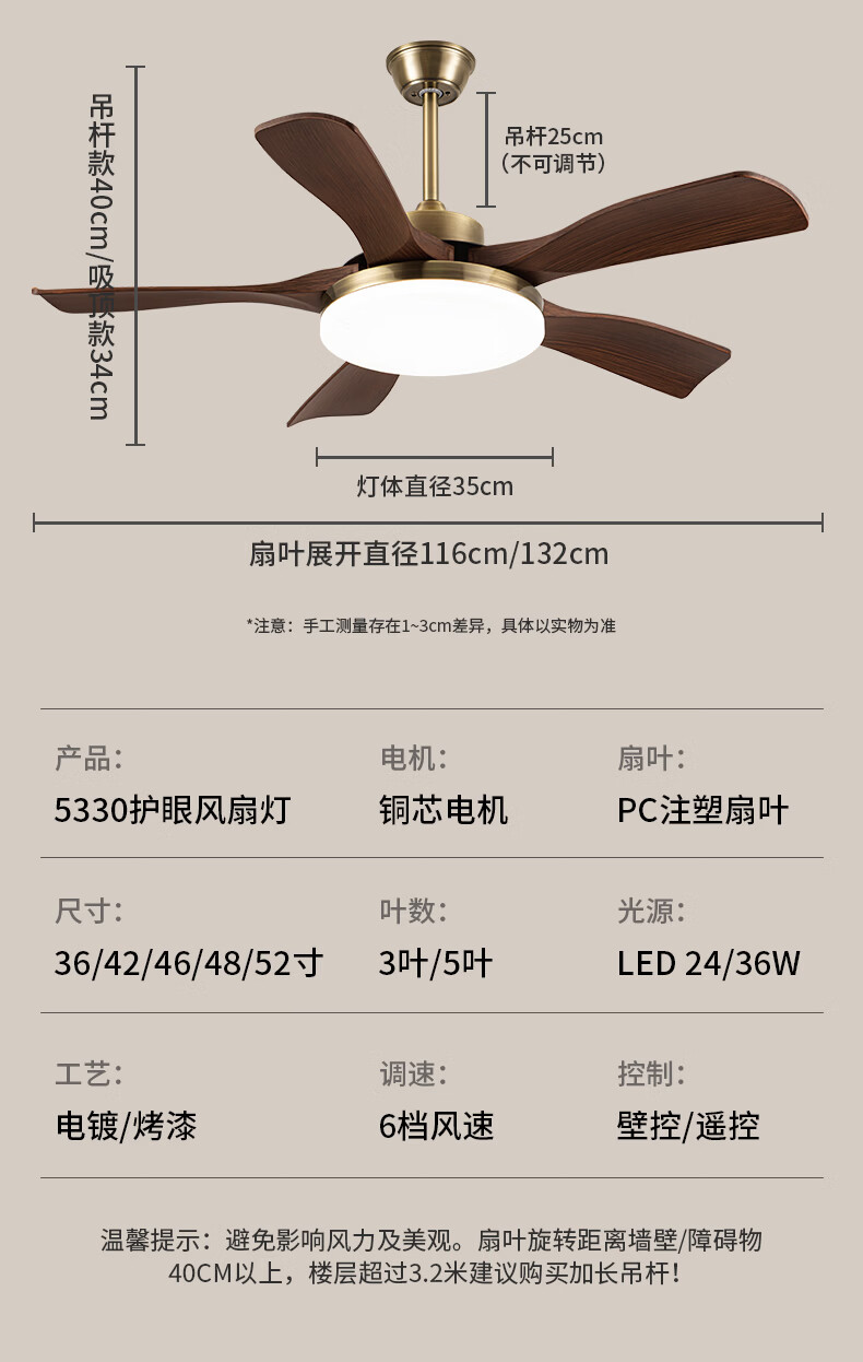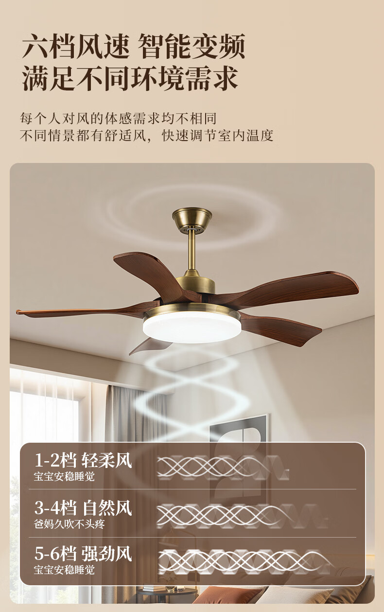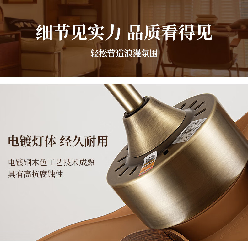 钻石牌风扇灯一体餐厅吊扇灯客厅吊灯带风扇卧室吸顶吊顶简约电扇灯具 36寸三叶古铜+黑胡桃遥控-吸顶