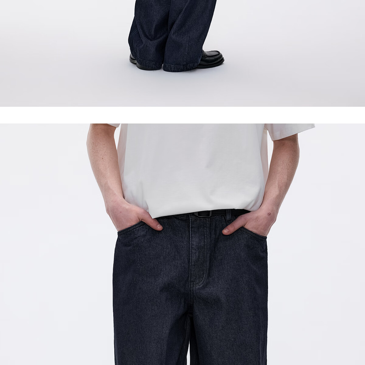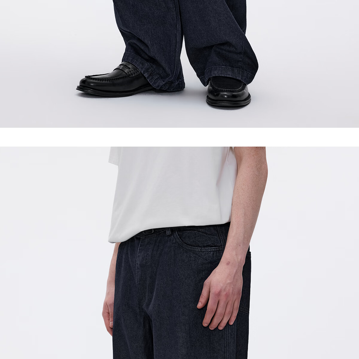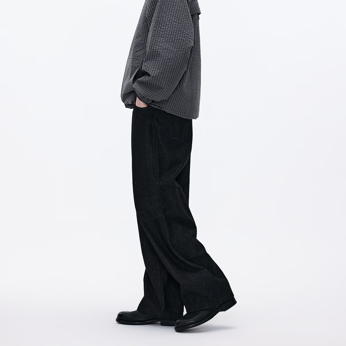 熊猫·本(ben.panda)水洗原色牛仔裤男款阔腿宽松通勤休闲长裤子2026春季 硫化黑 L