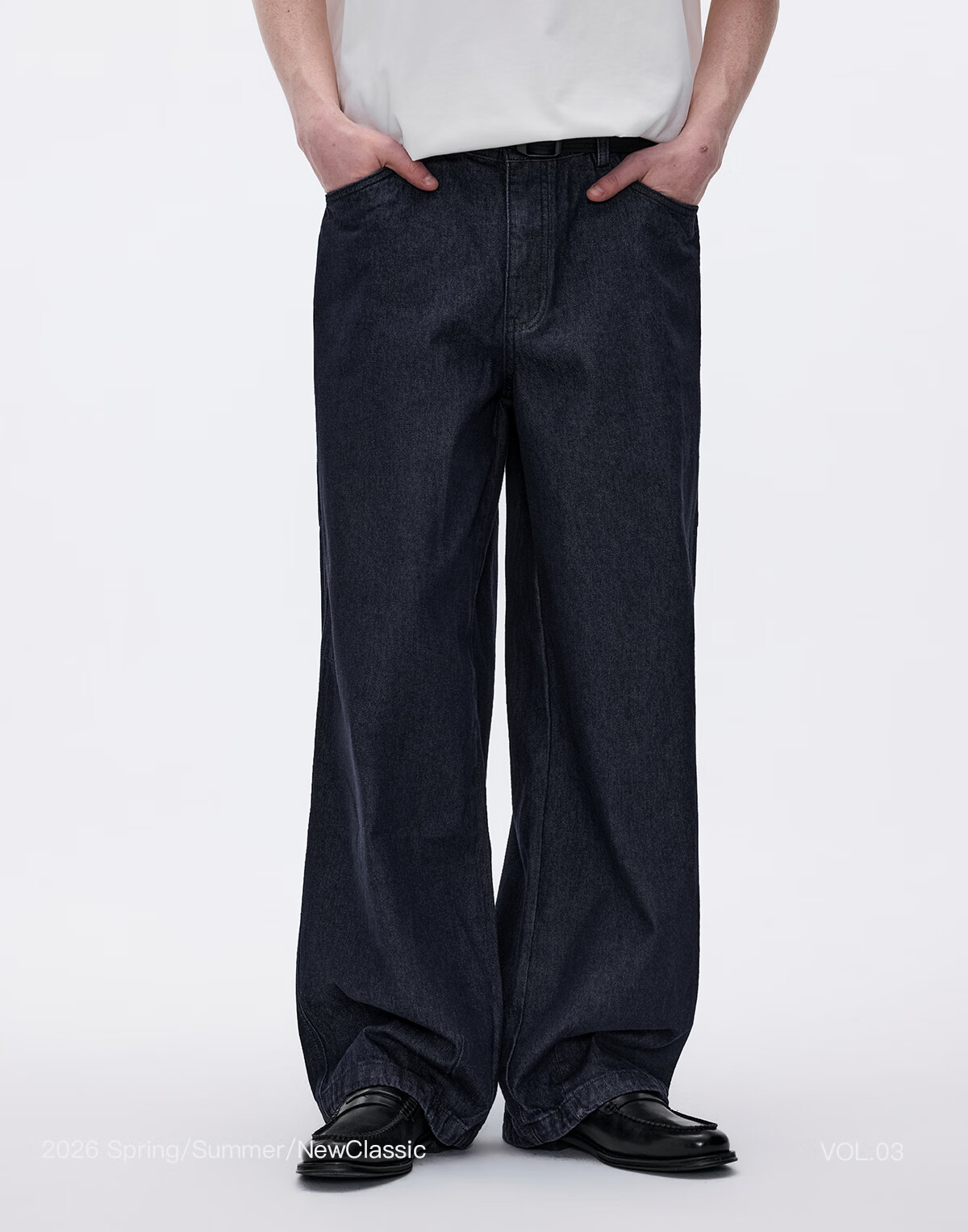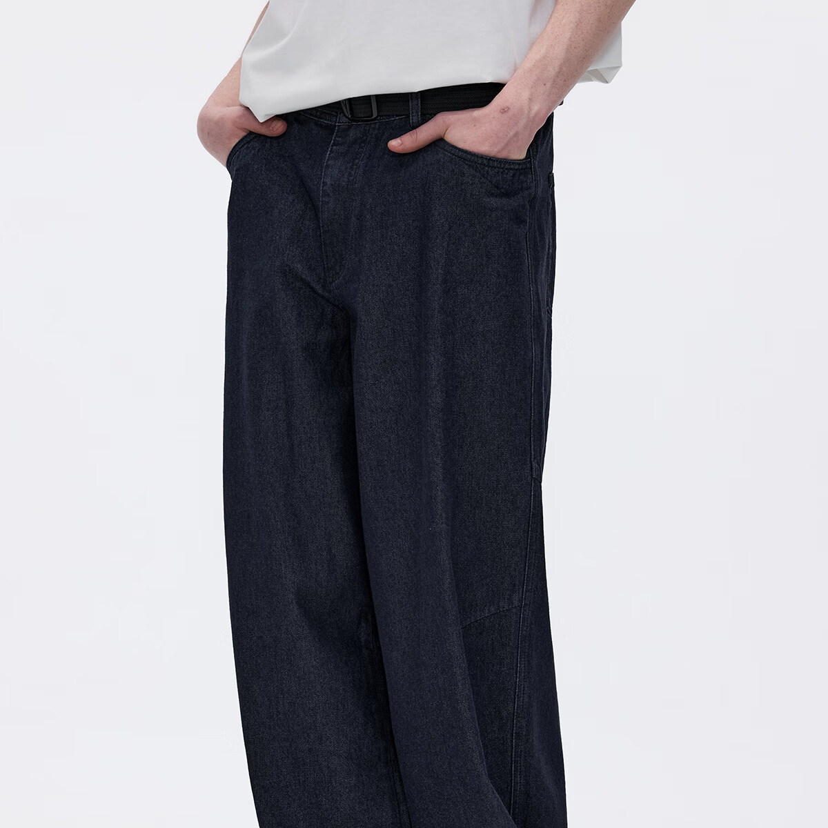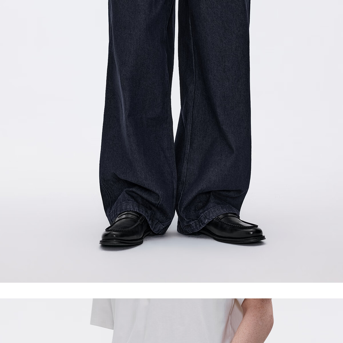 熊猫·本(ben.panda)水洗原色牛仔裤男款阔腿宽松通勤休闲长裤子2026春季 硫化黑 L