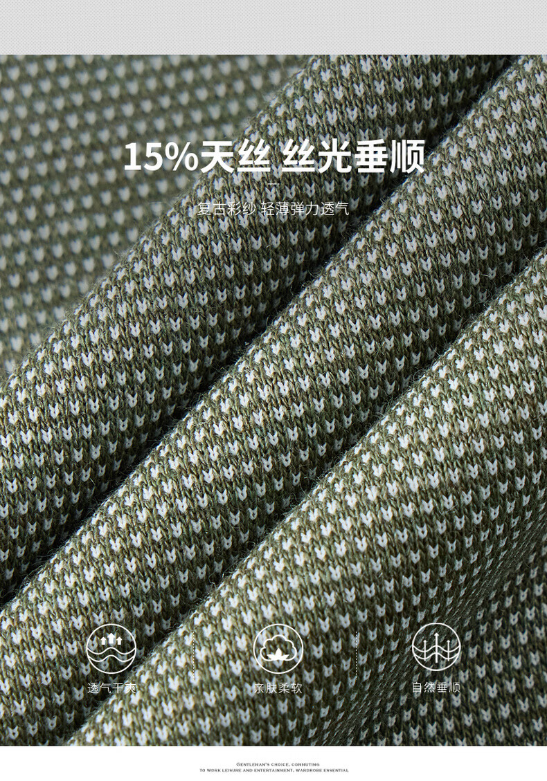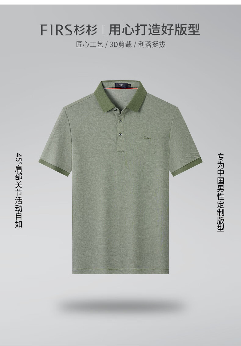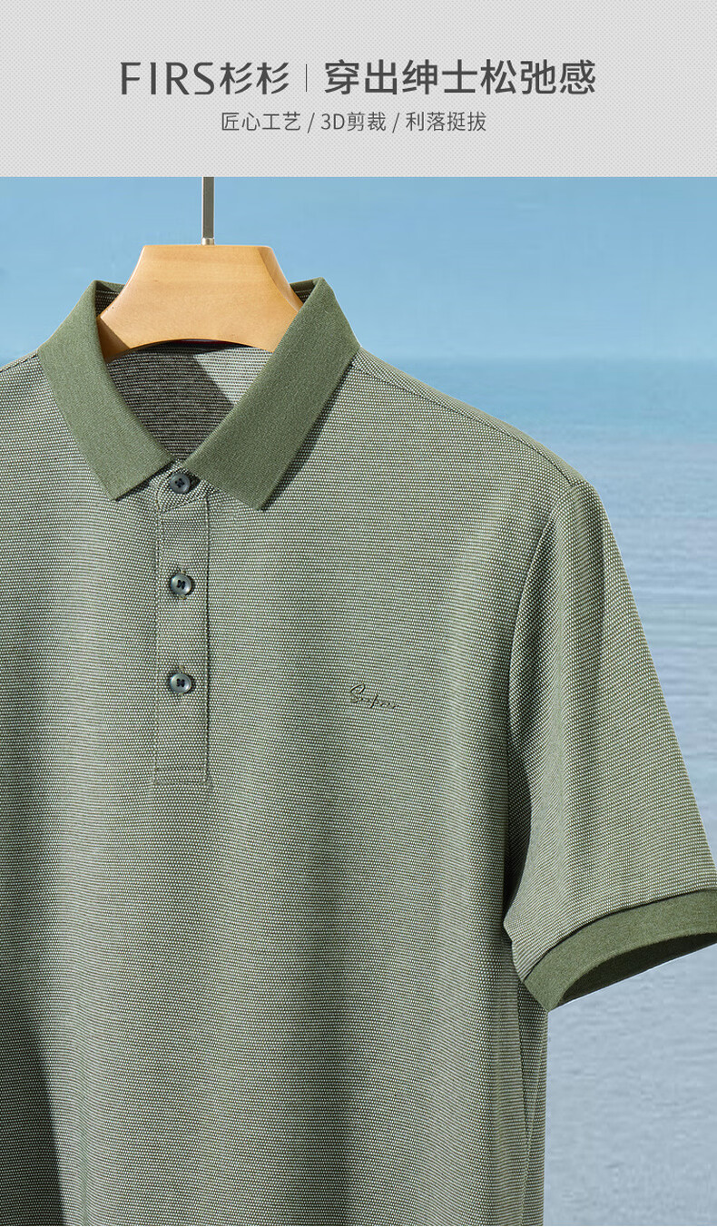 杉杉天丝莱赛尔彩纱男士翻领短袖T恤夏季休闲百搭通勤polo衫上衣男装 军绿 L