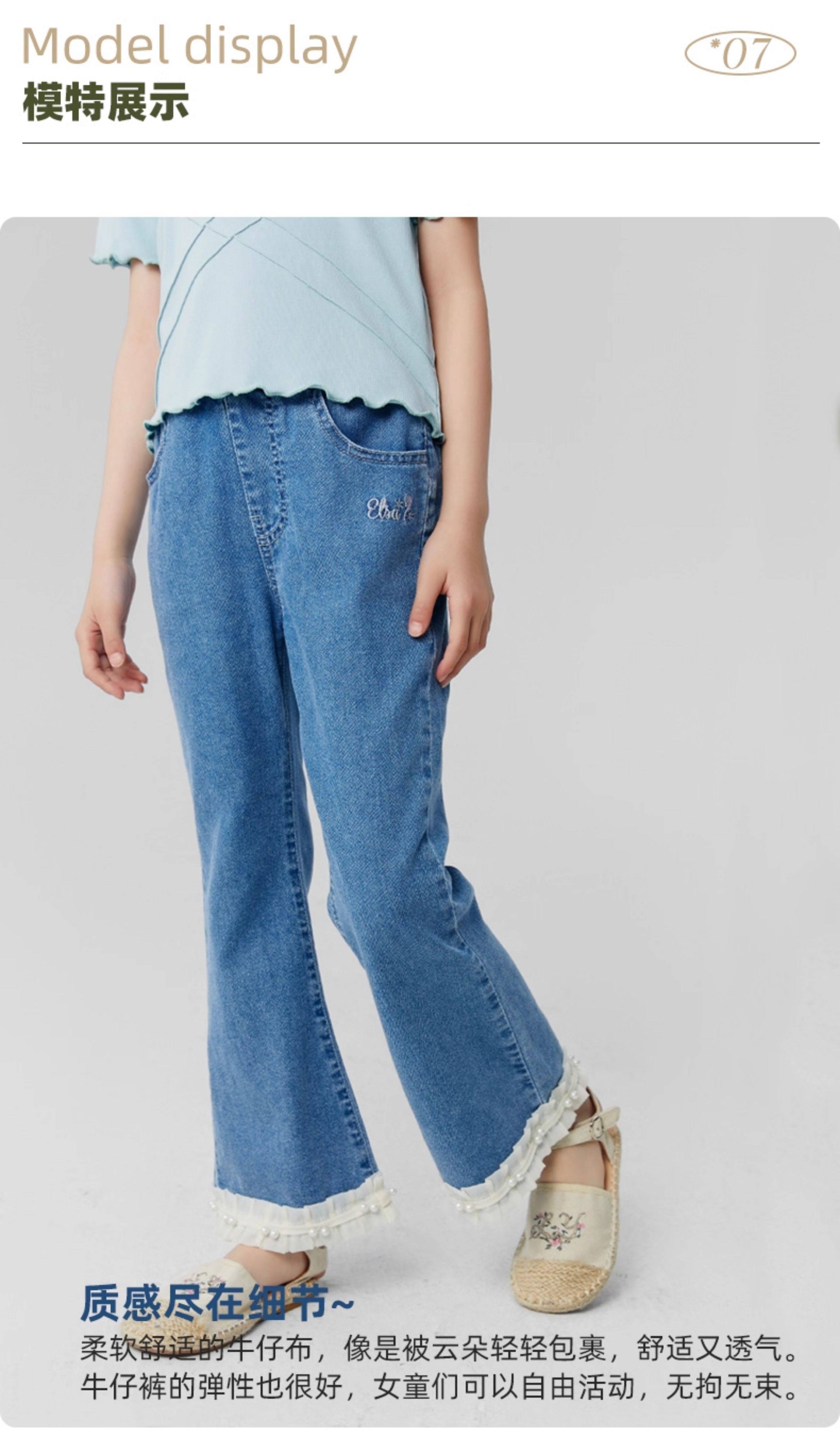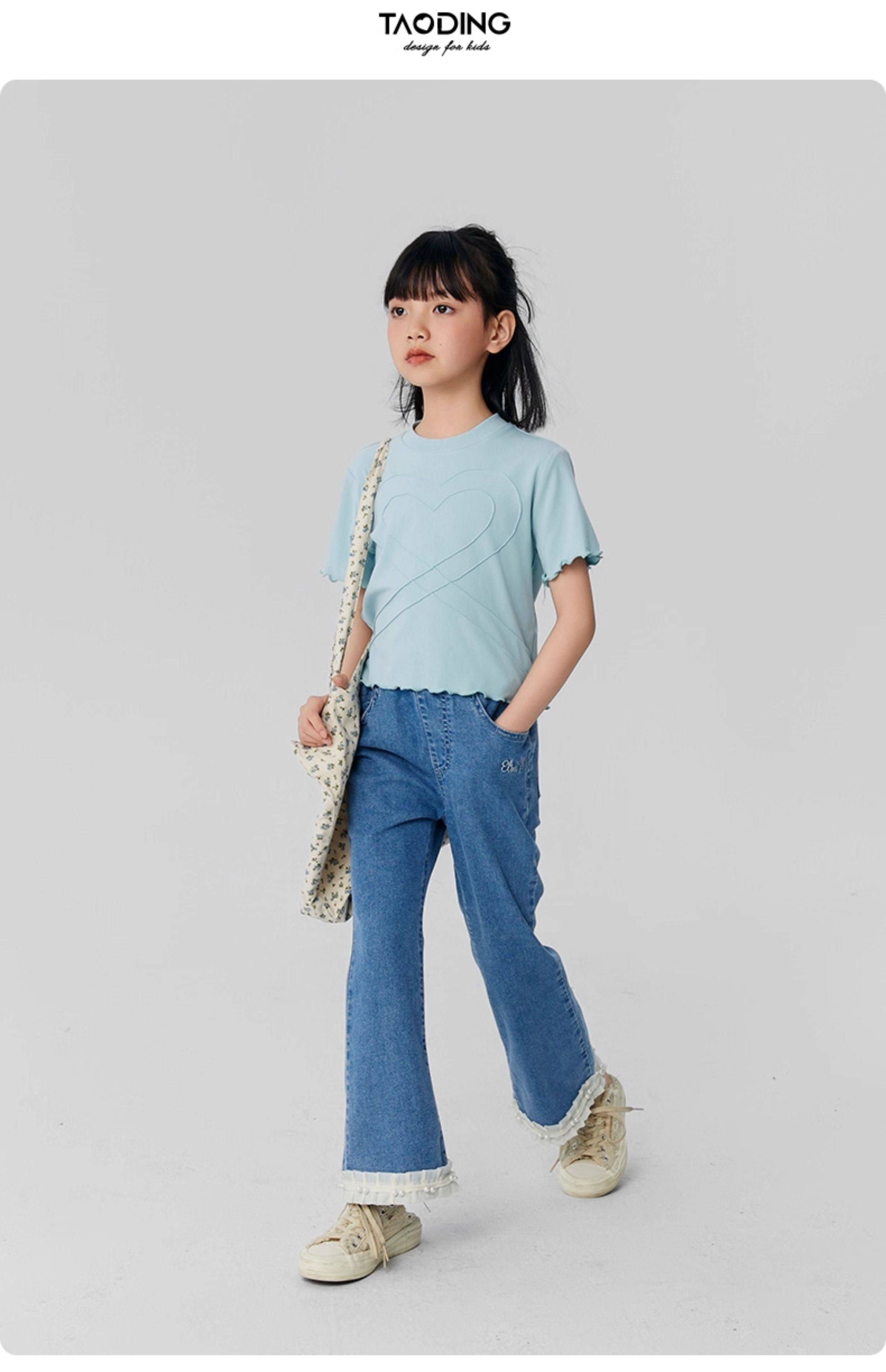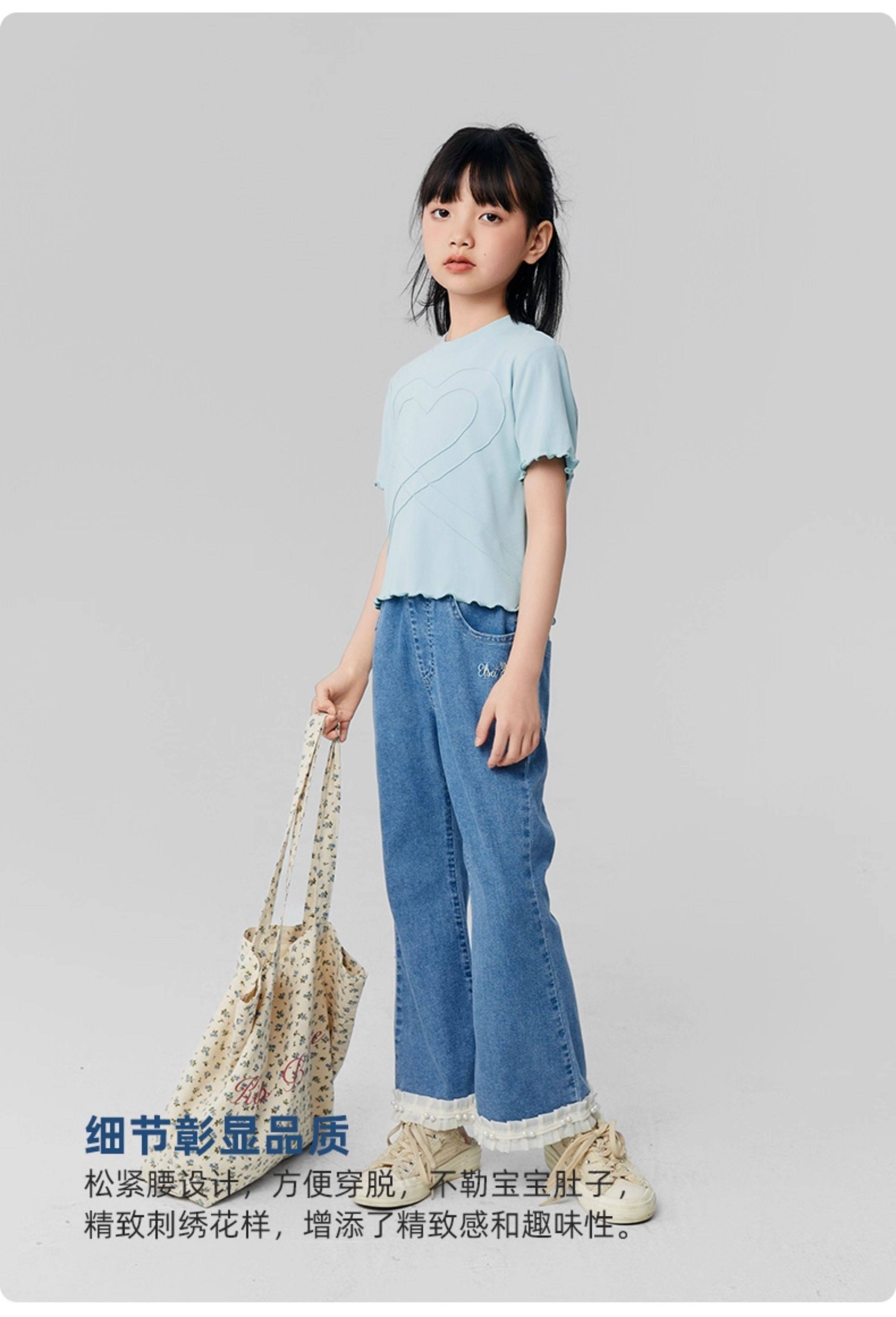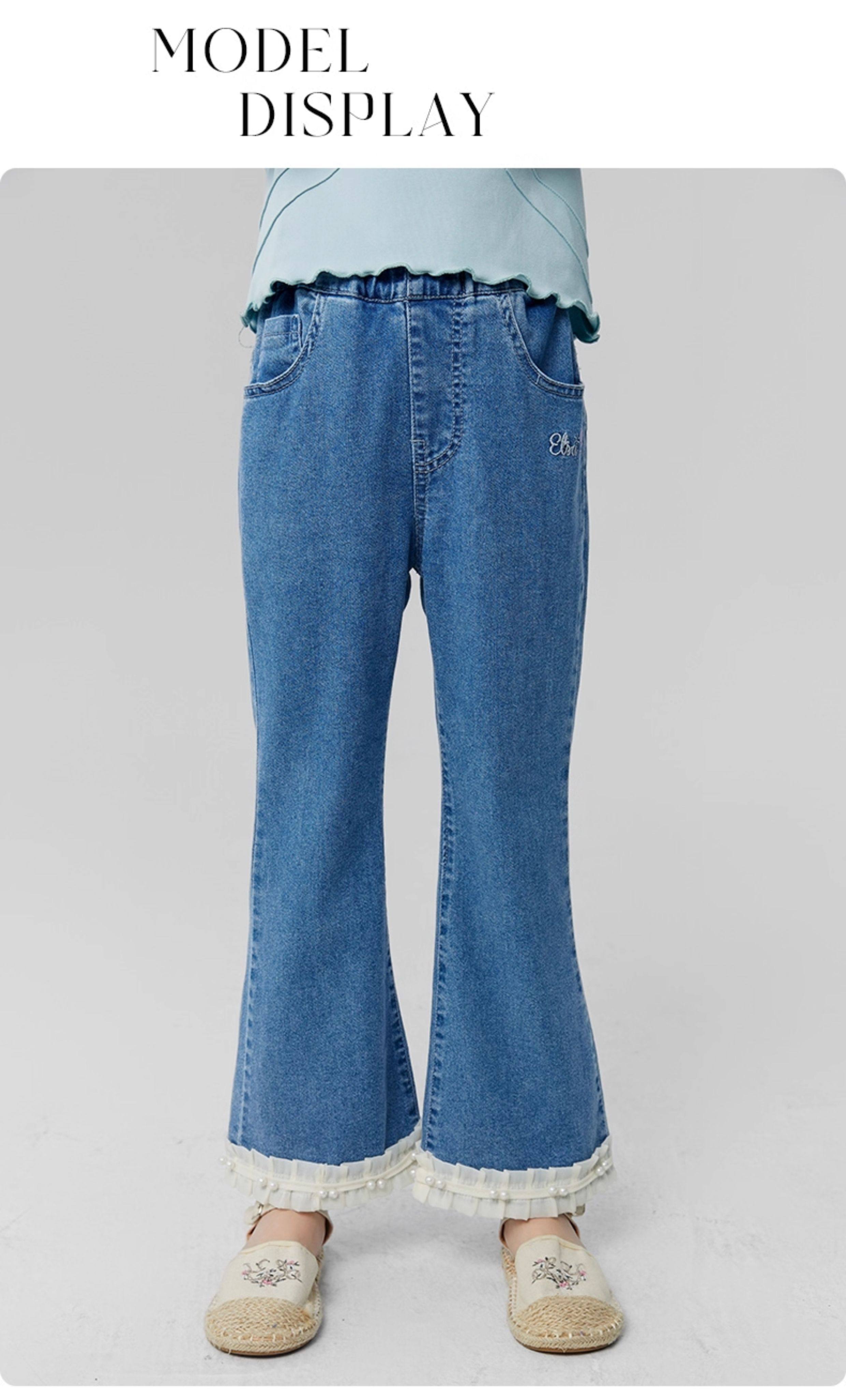 淘町女童牛仔裤夏季百搭宽松简约微喇叭松紧腰春秋薄款裤子 蓝色 150