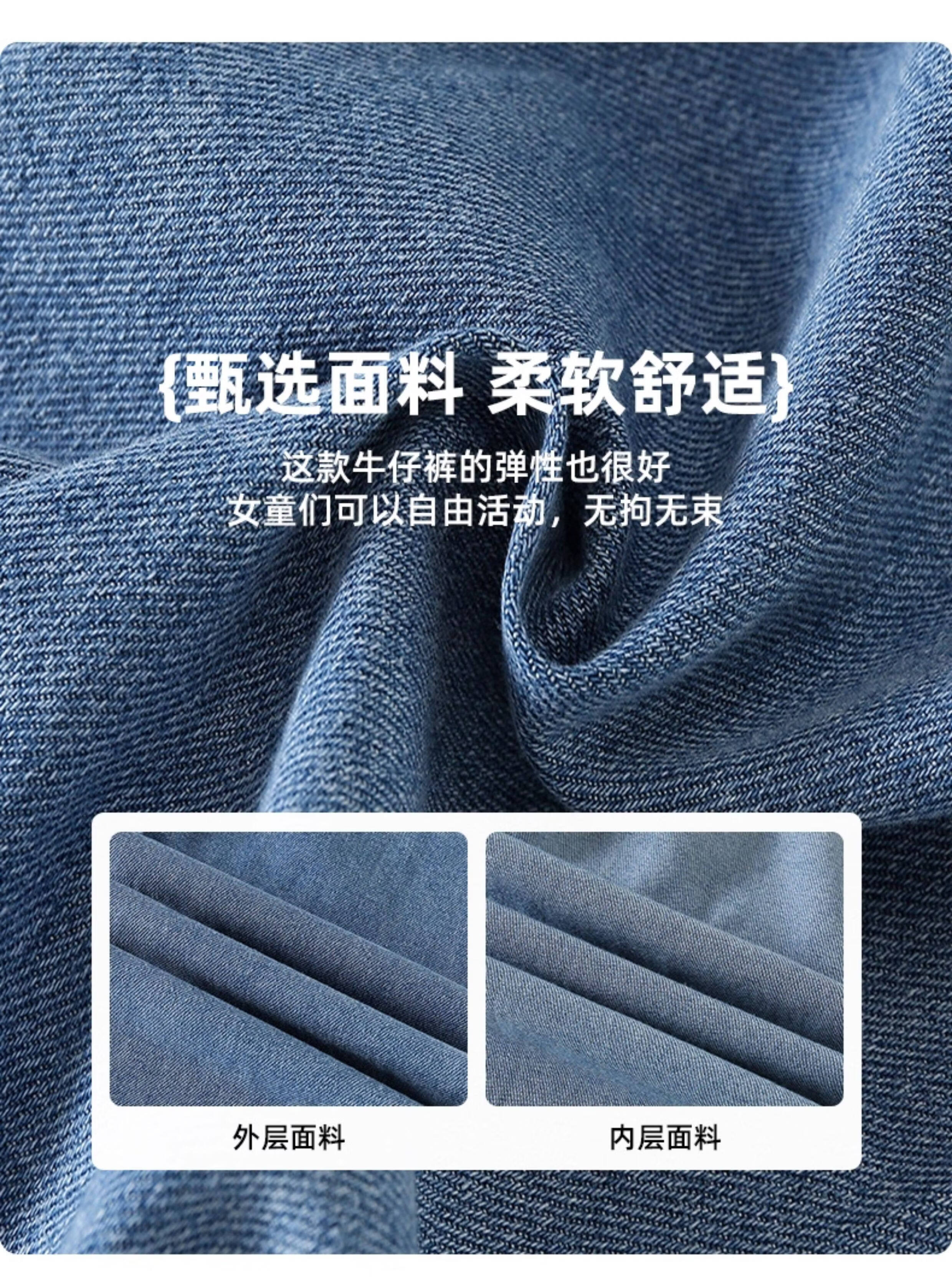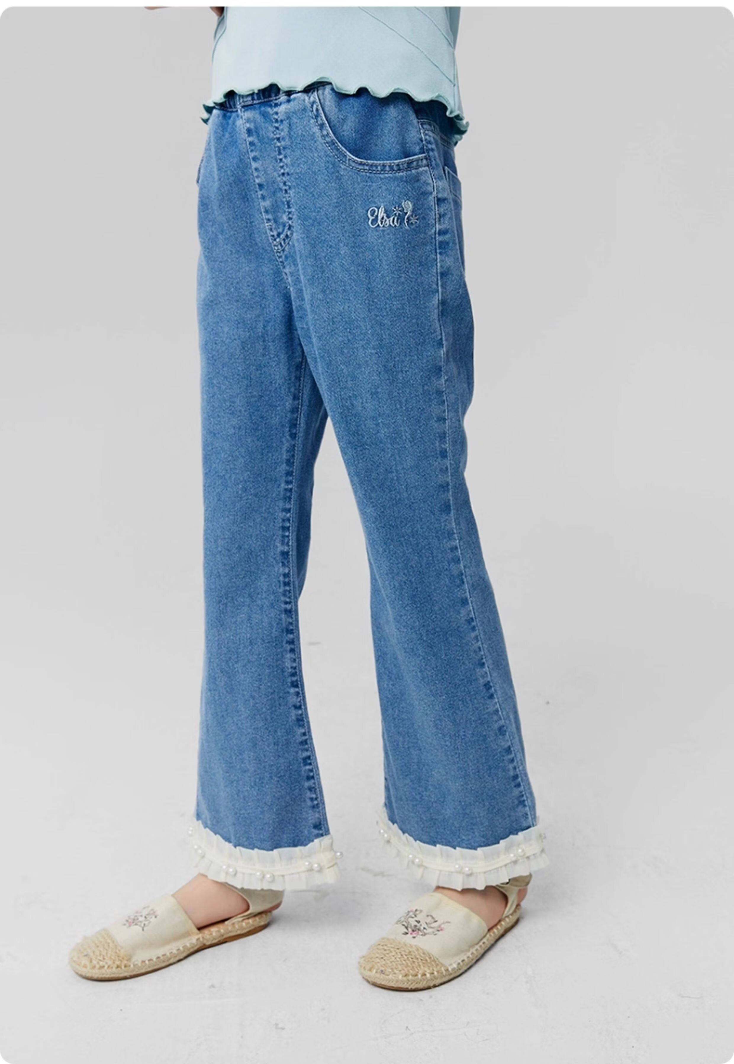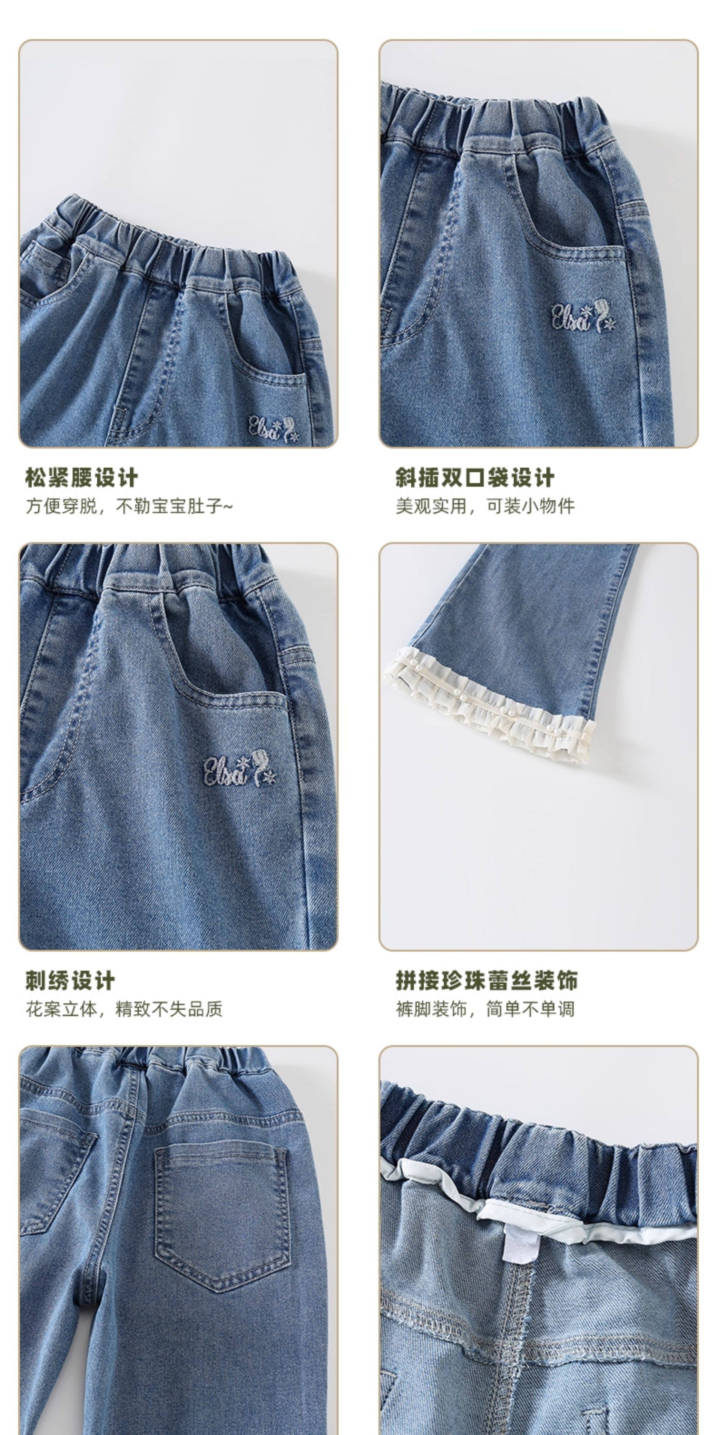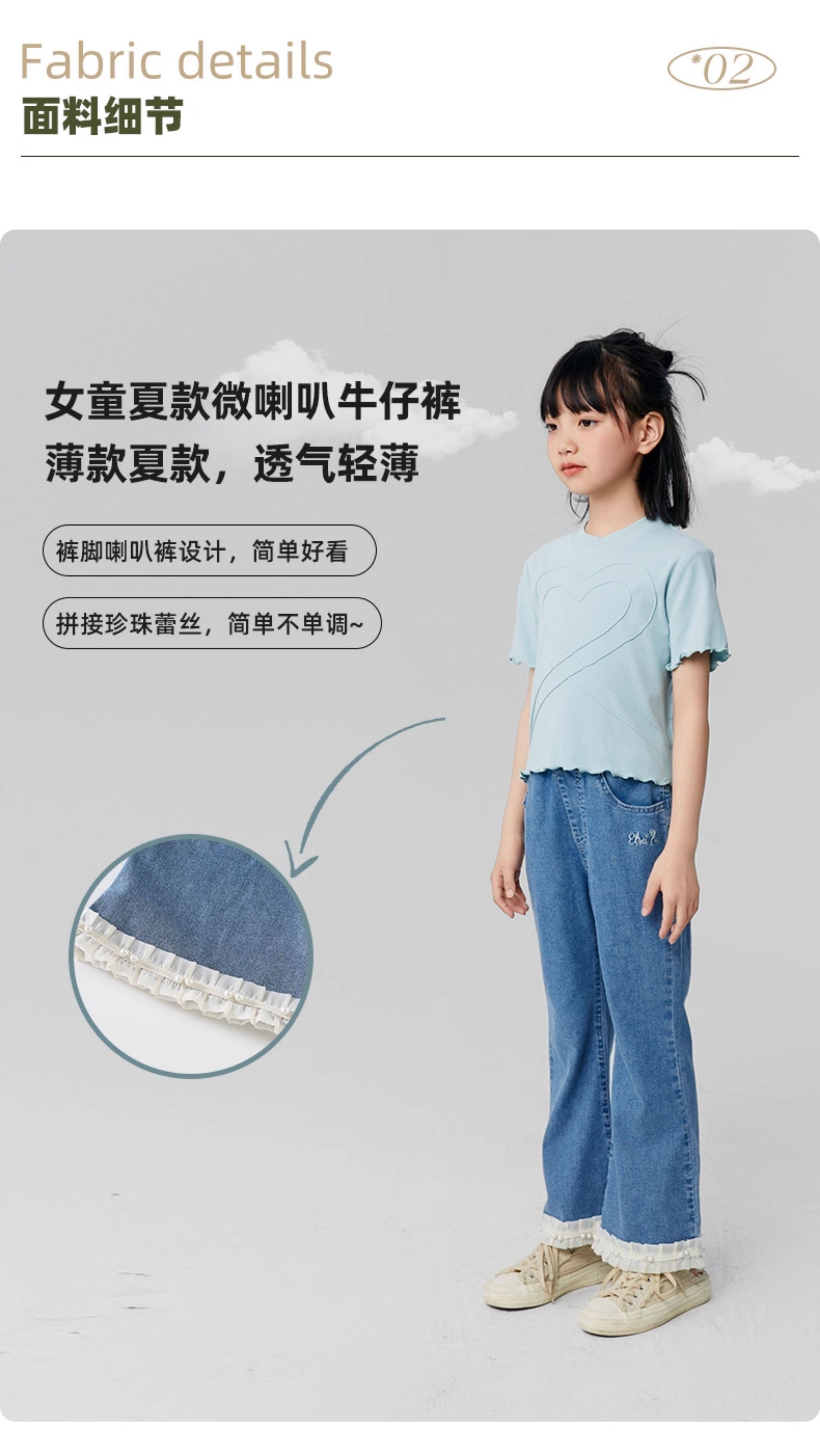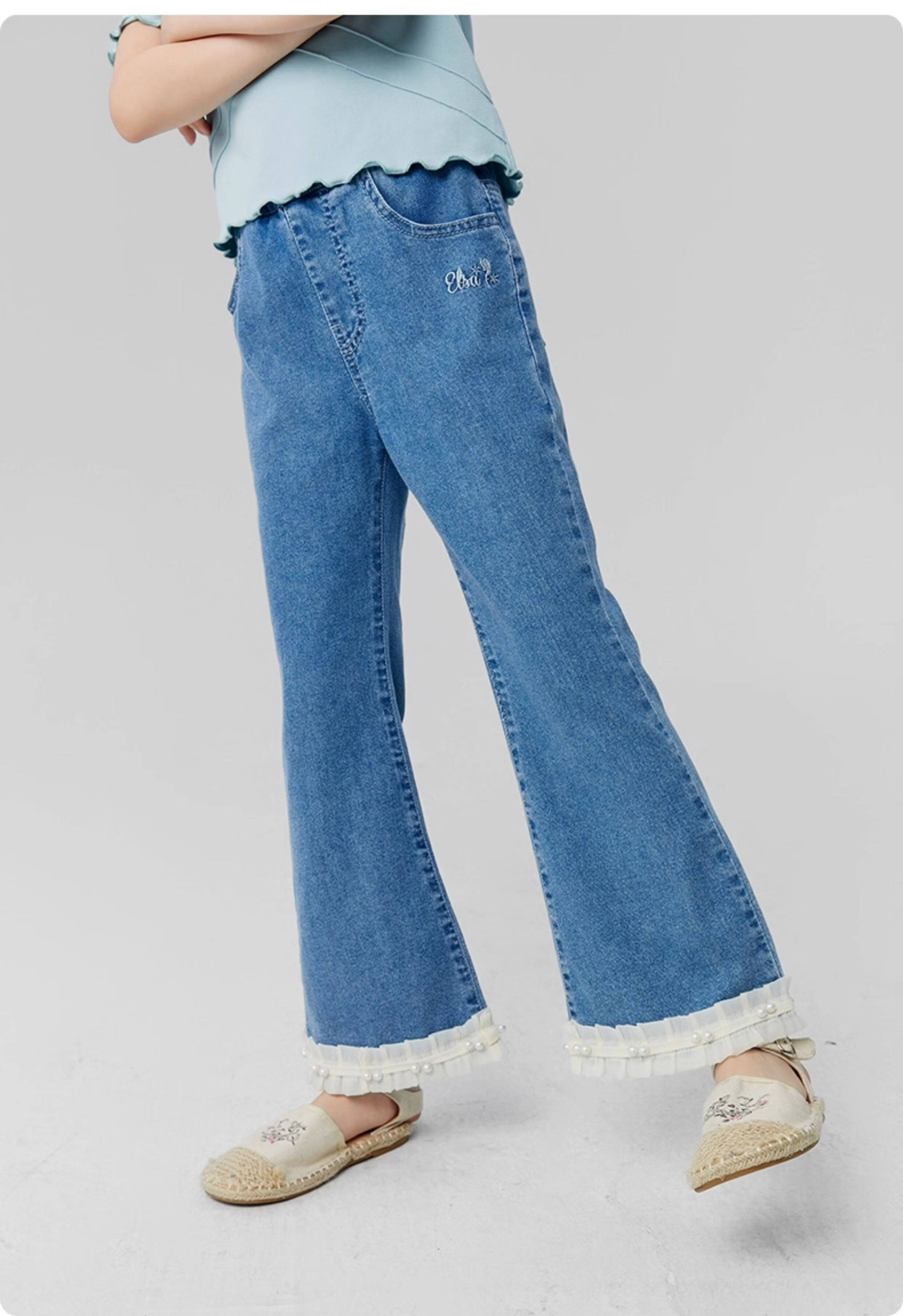 淘町女童牛仔裤夏季百搭宽松简约微喇叭松紧腰春秋薄款裤子 蓝色 150