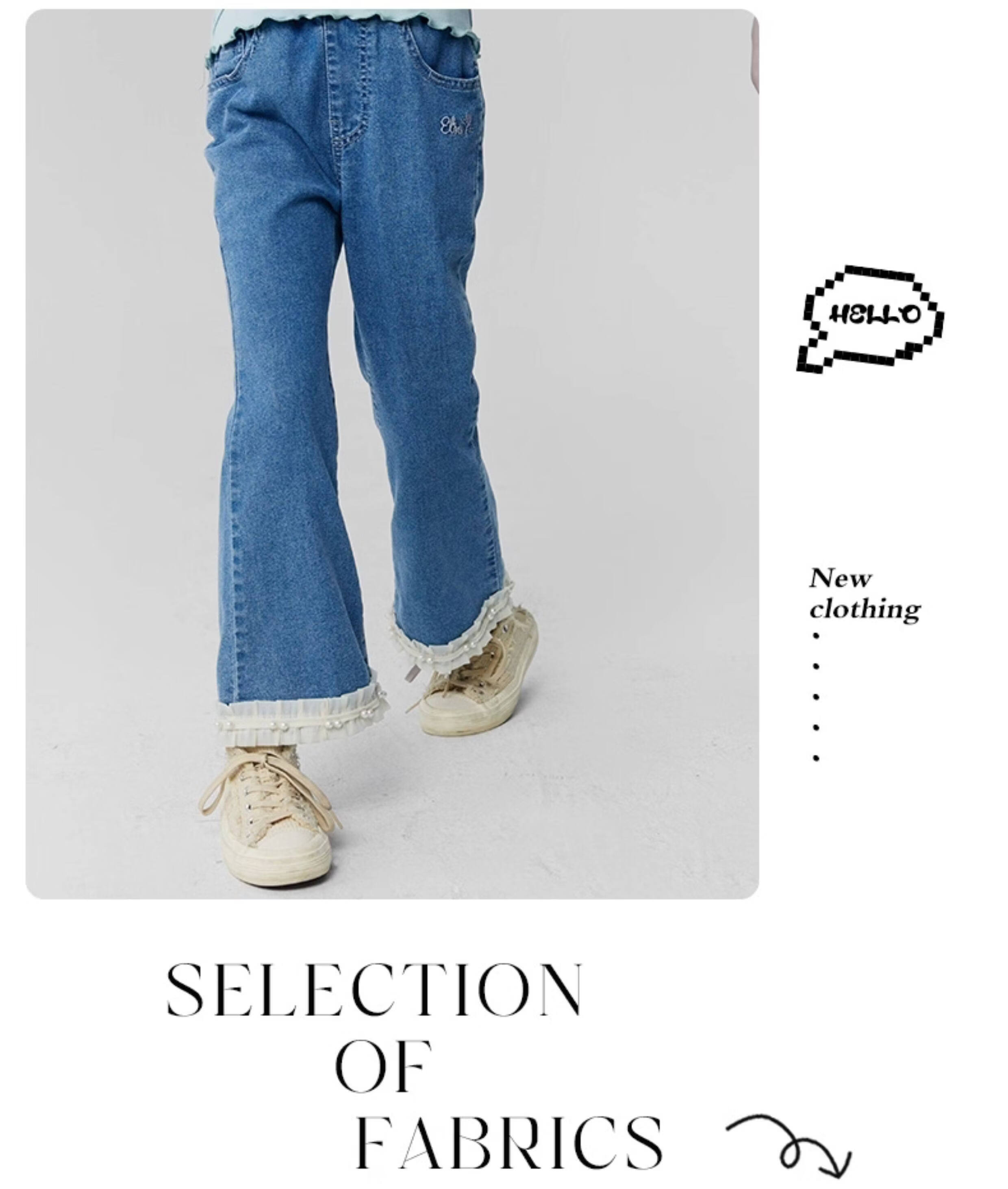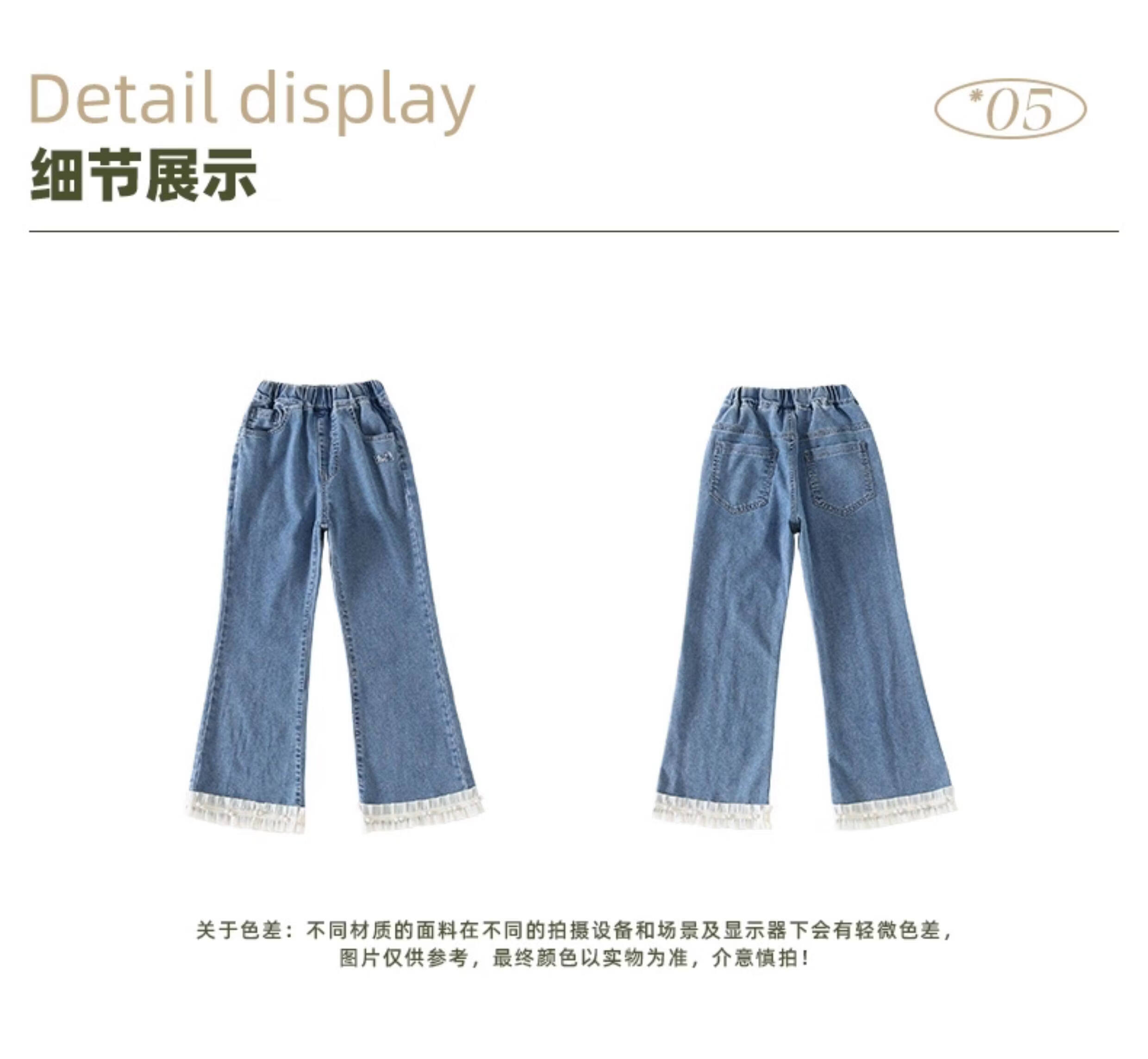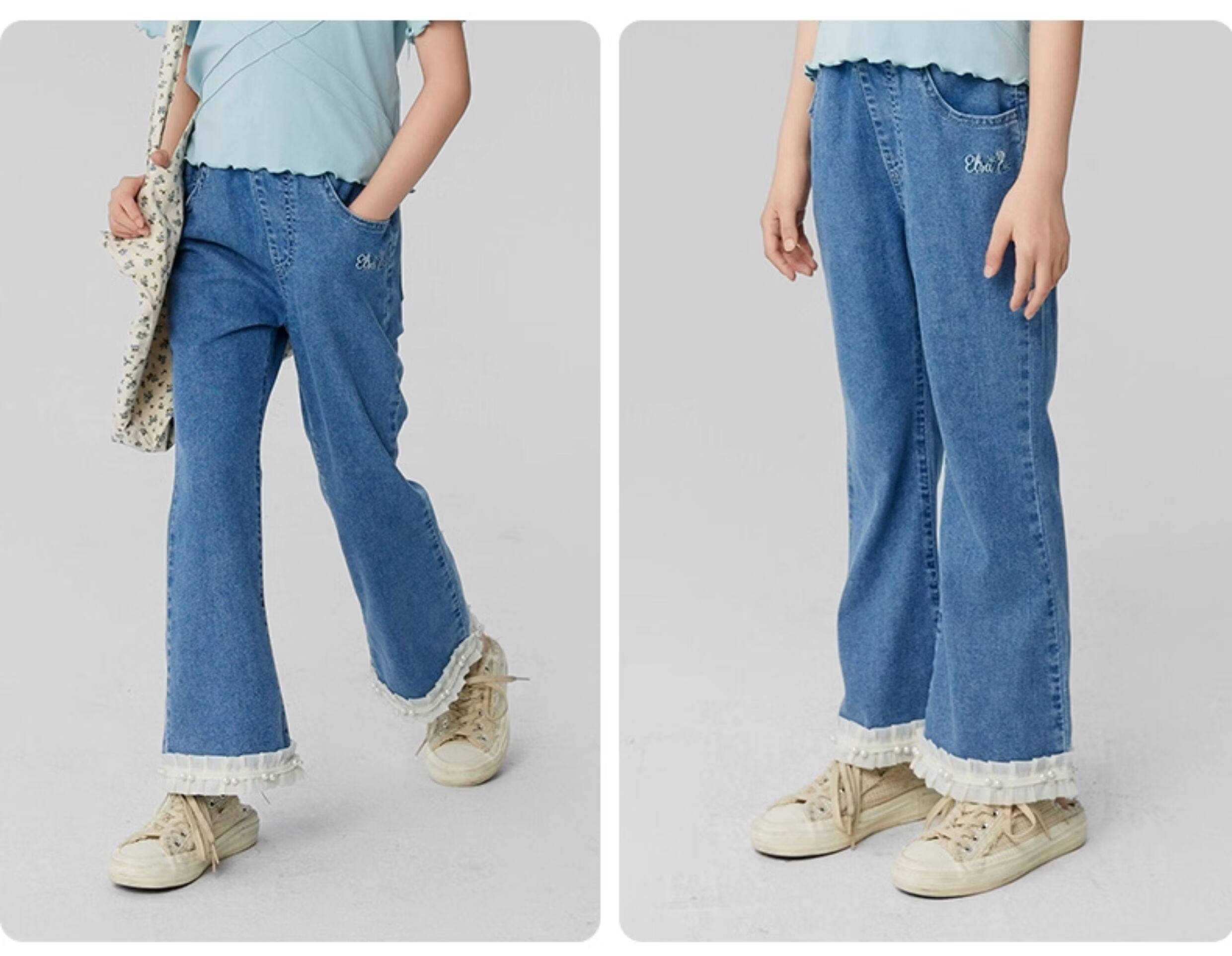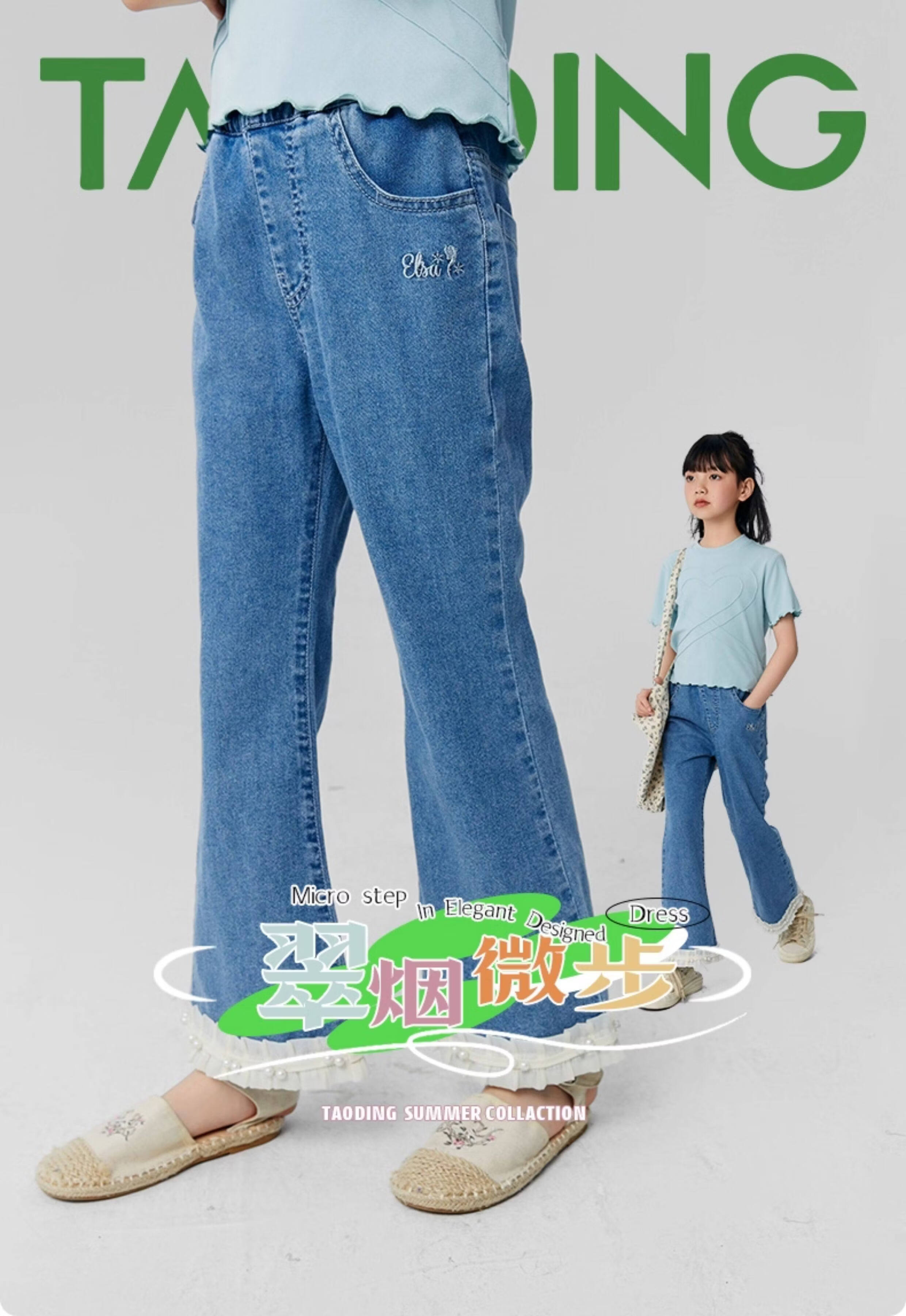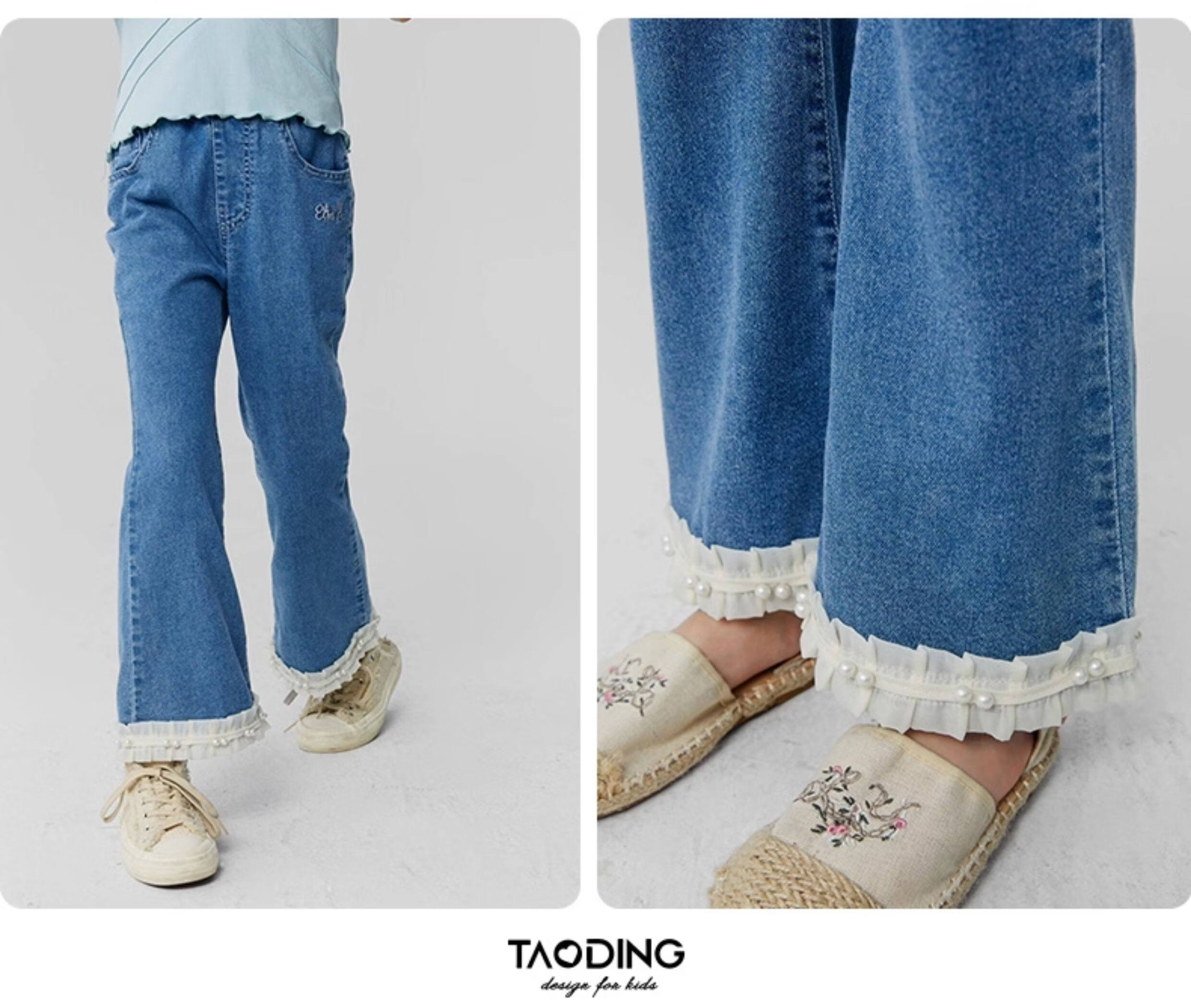 淘町女童牛仔裤夏季百搭宽松简约微喇叭松紧腰春秋薄款裤子 蓝色 150
