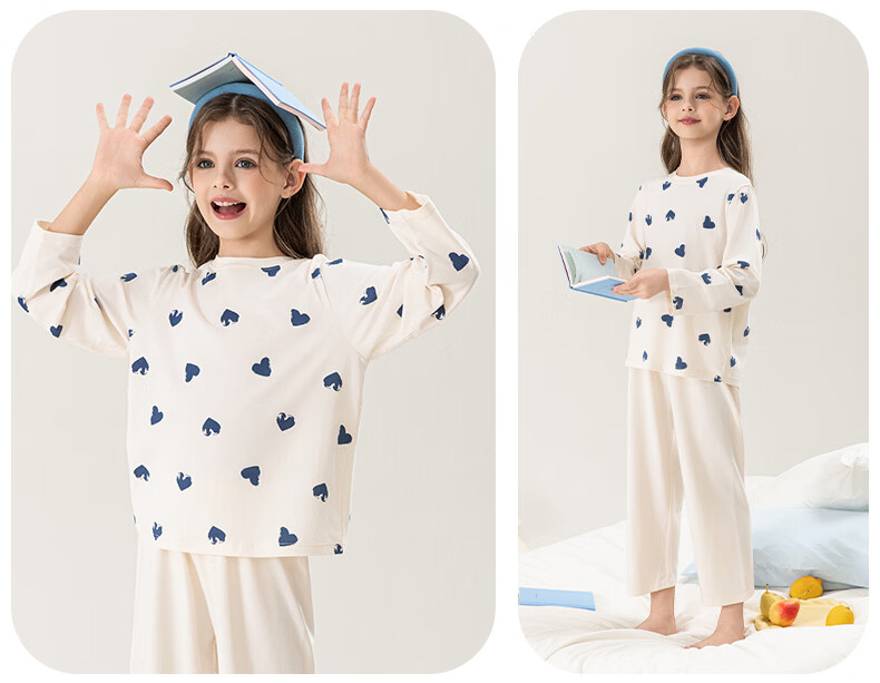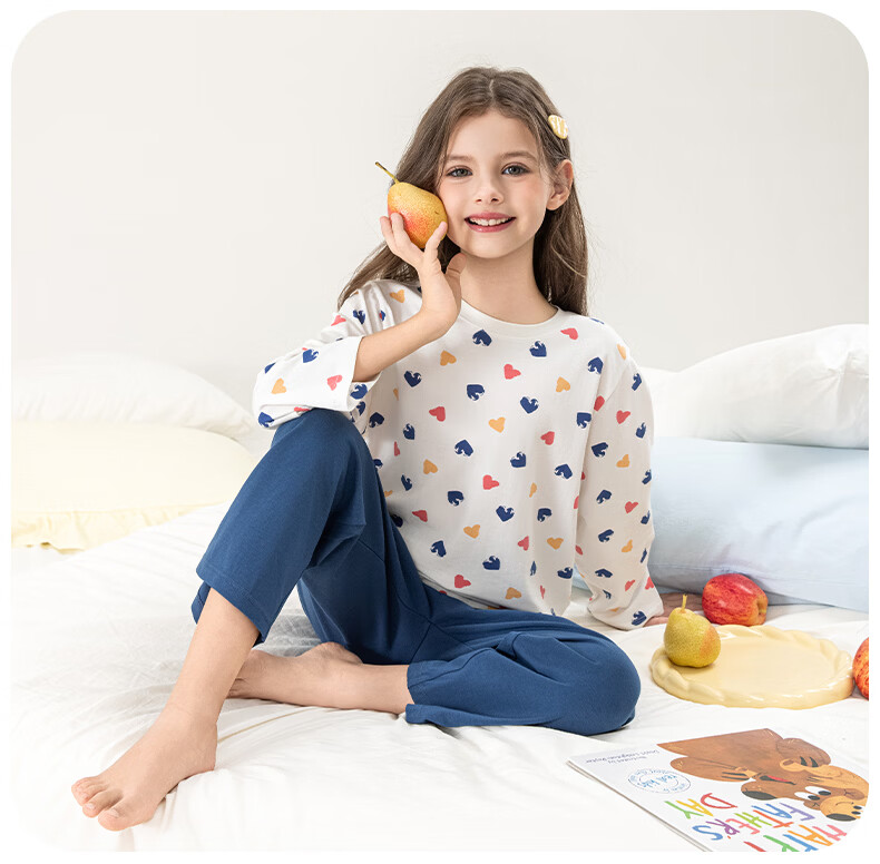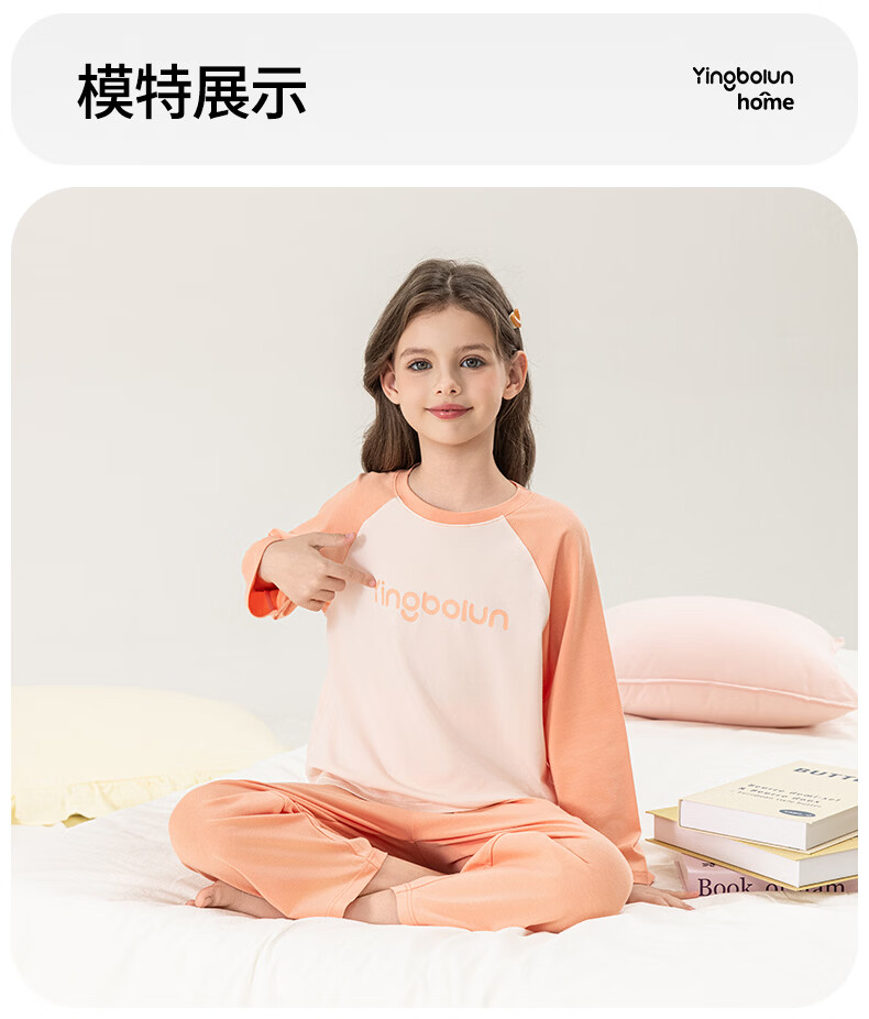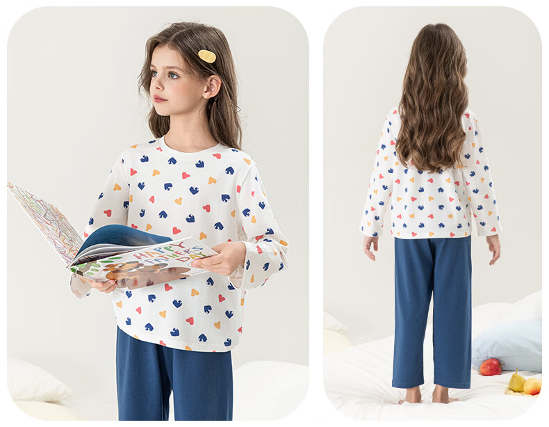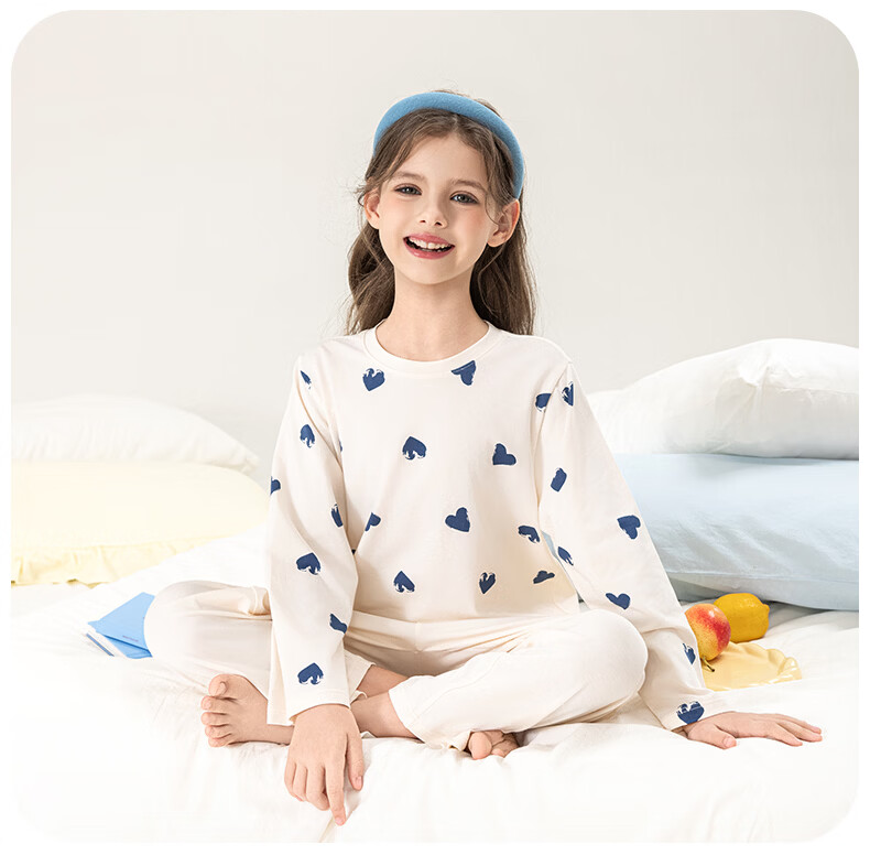 英博伦女童家居服纯棉长袖睡衣2026新款A类春秋儿童空调服套装 60604米白 120