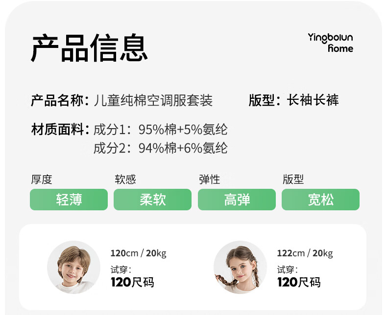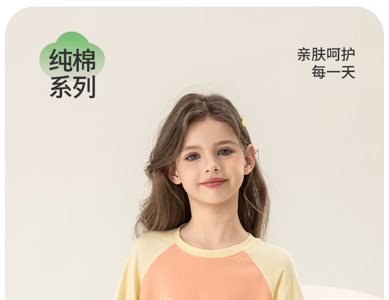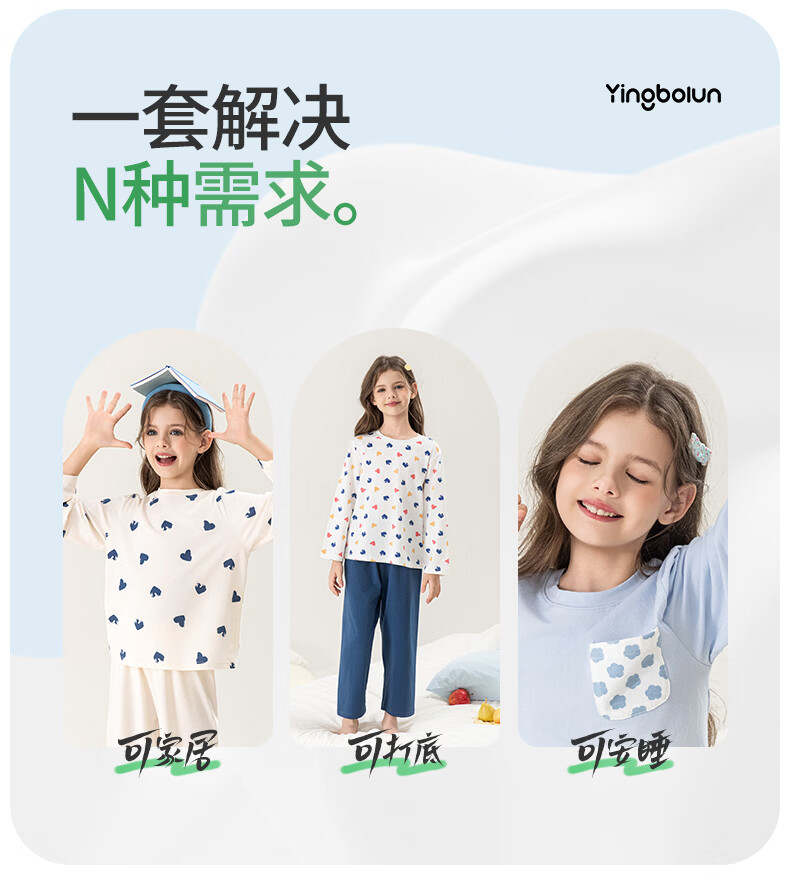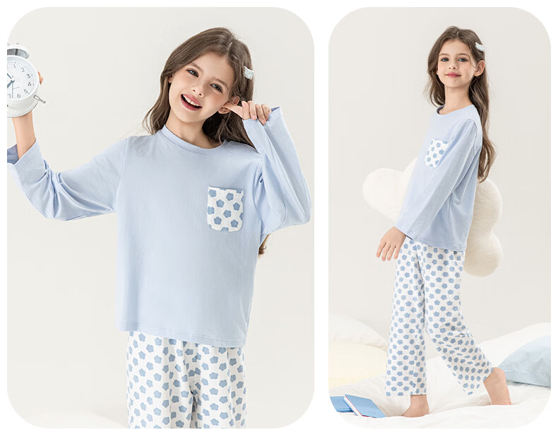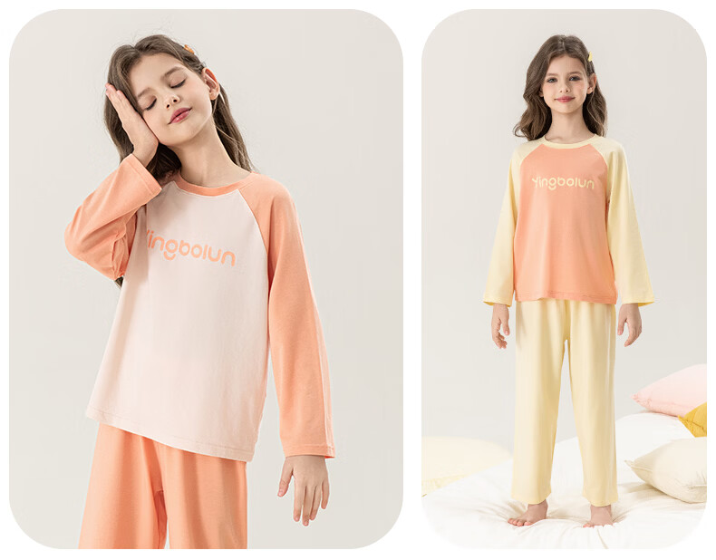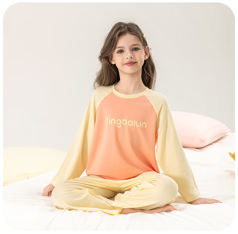 英博伦女童家居服纯棉长袖睡衣2026新款A类春秋儿童空调服套装 60604米白 120