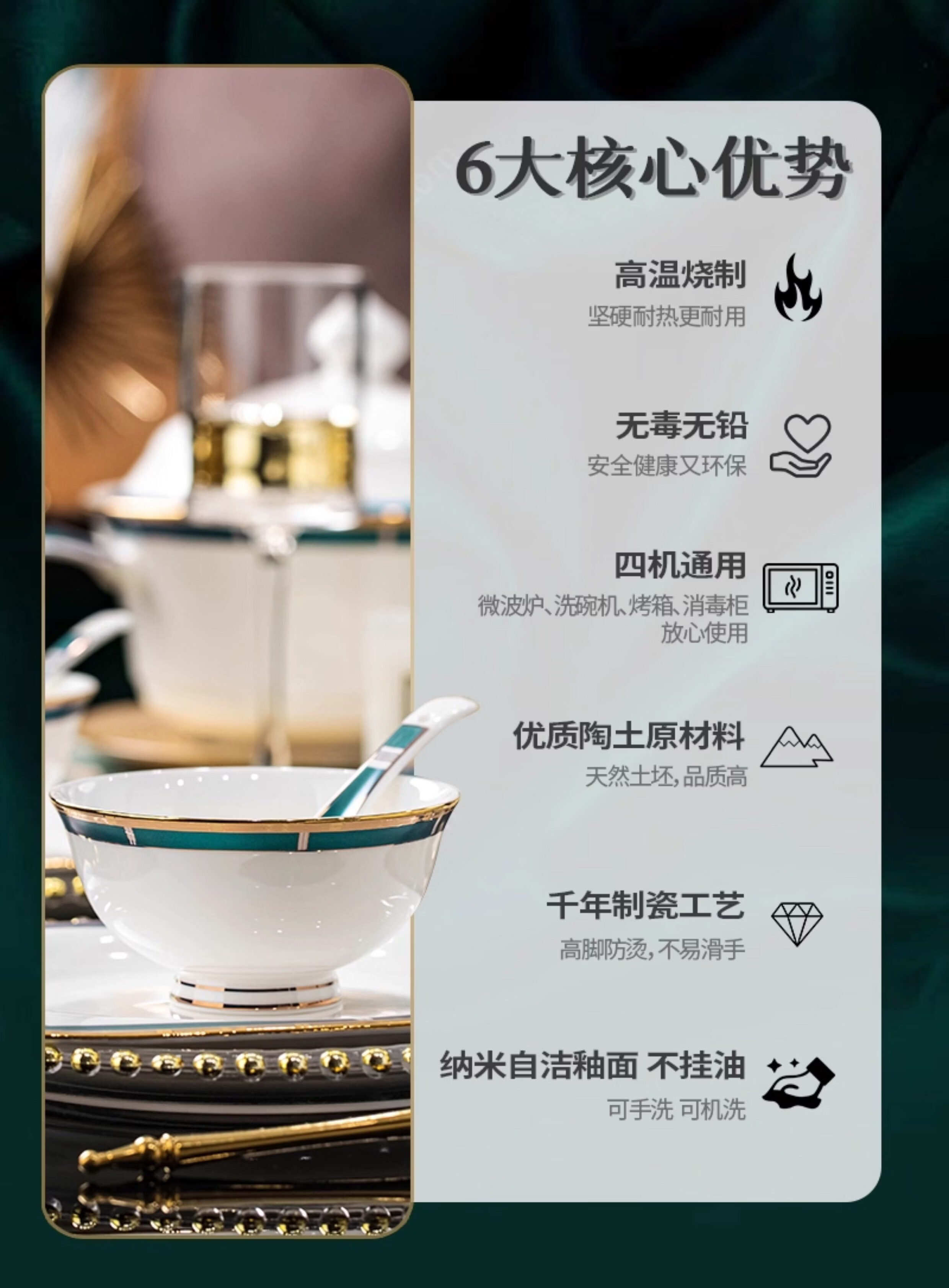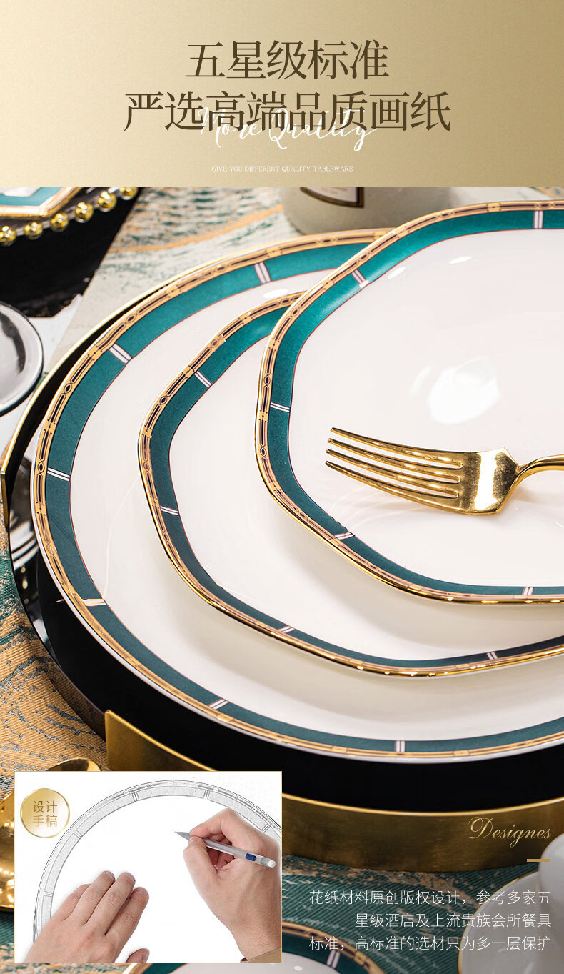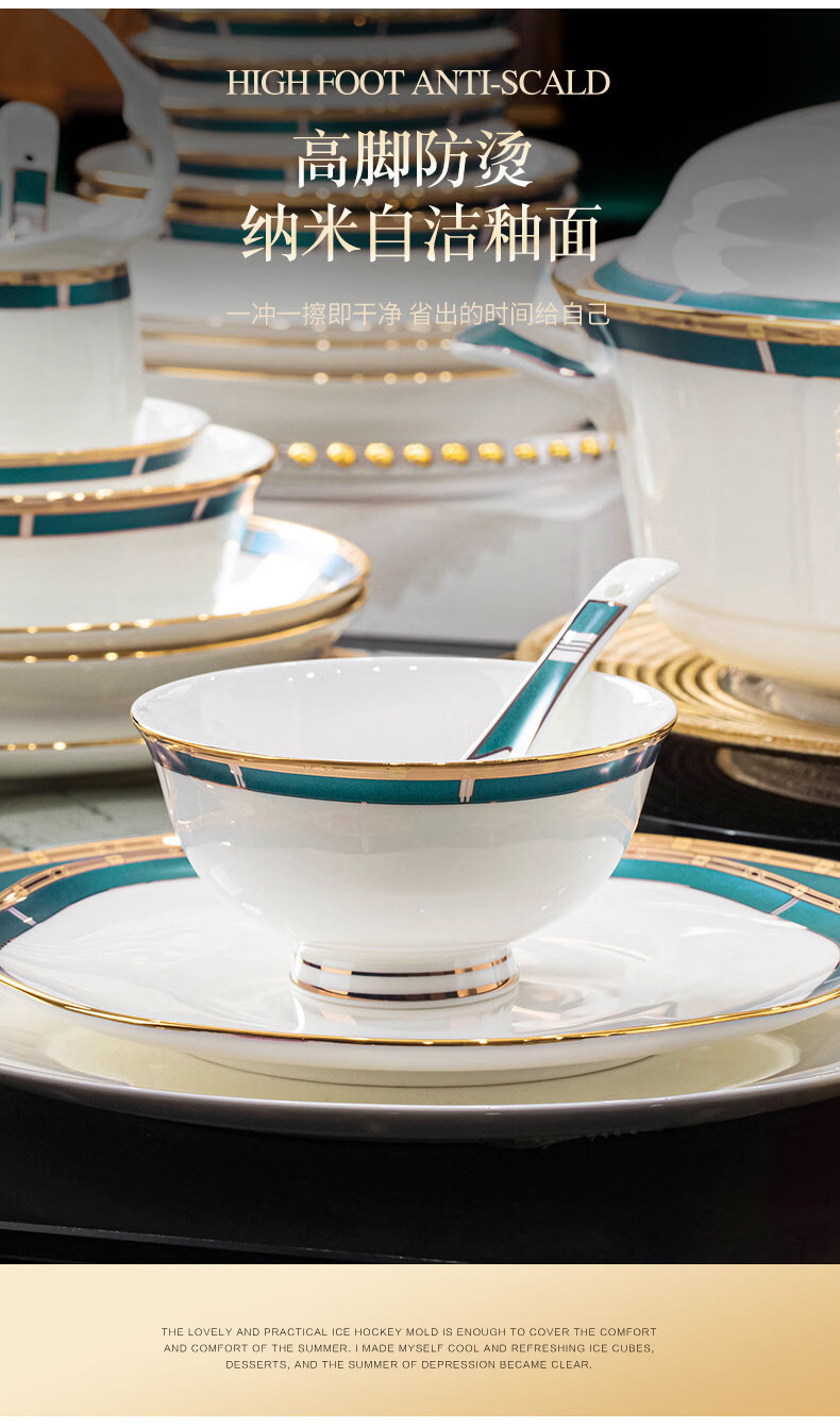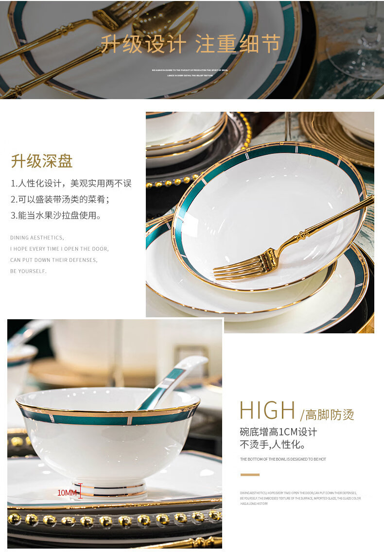 精缔陶瓷JINGDI碗家用2026新款碗筷景德镇骨瓷碗碟套装家用陶瓷餐具套装碗盘乔迁 【景德镇正品】绿瑾31件配大汤碗原创正品保障 31件套