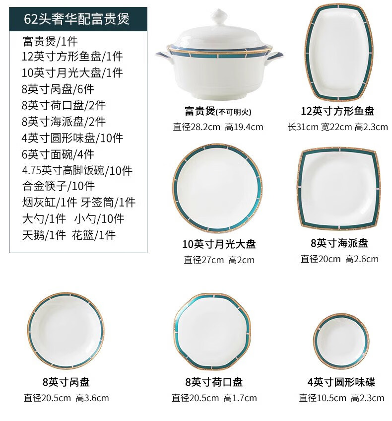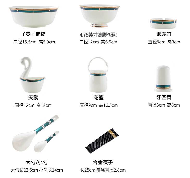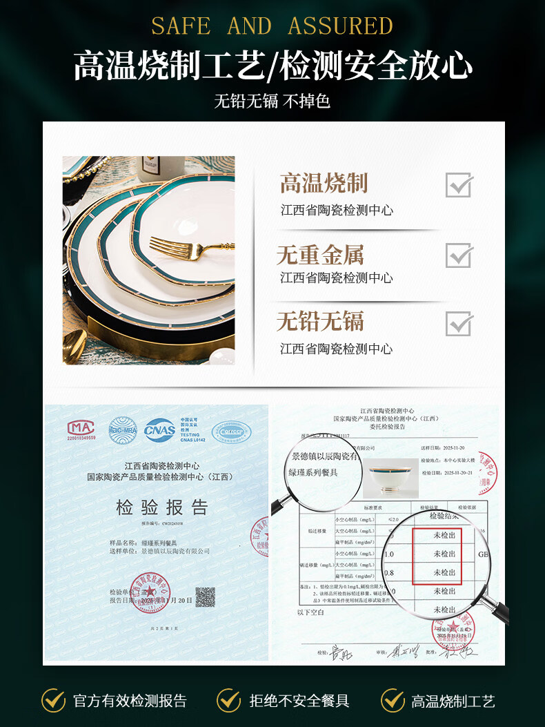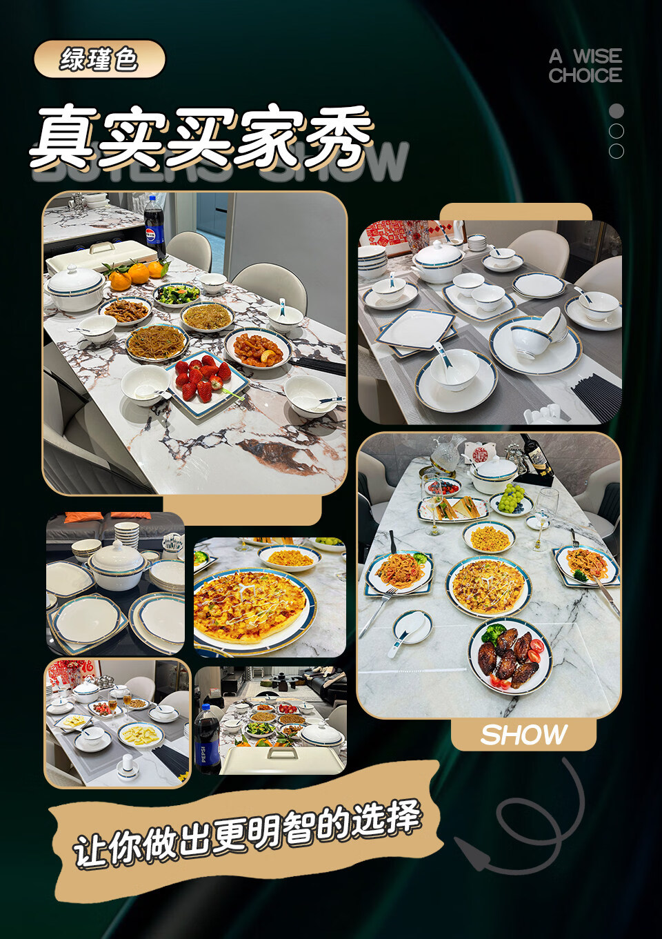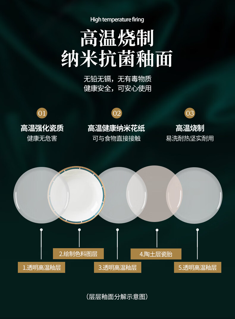 精缔陶瓷JINGDI碗家用2026新款碗筷景德镇骨瓷碗碟套装家用陶瓷餐具套装碗盘乔迁 【景德镇正品】绿瑾31件配大汤碗原创正品保障 31件套