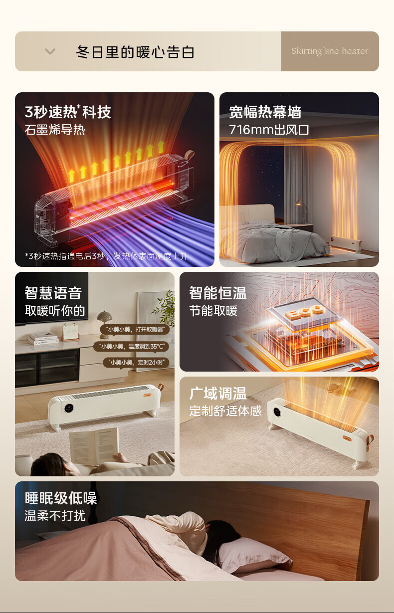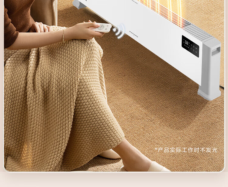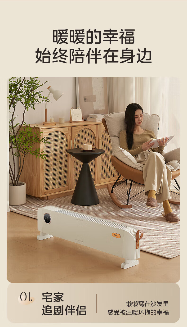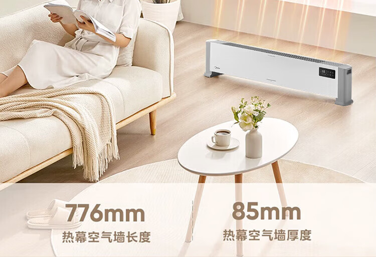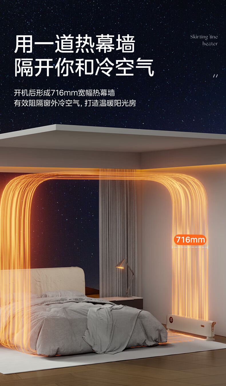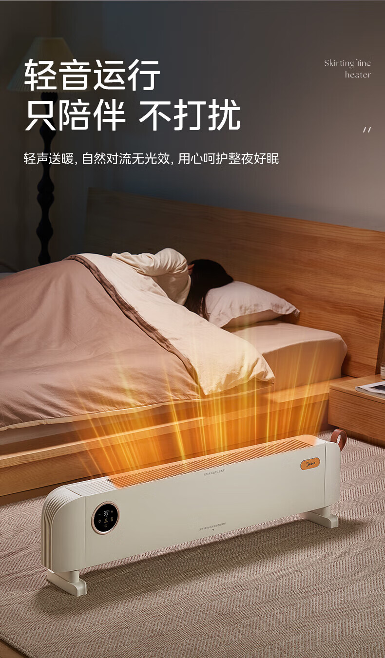 美的(Midea)石墨烯踢脚线取暖器家用热幕对流恒温节能电暖器浴室防水防尘移动地无光无噪暖气片大面积取暖神器 【热幕循环对流恒温取暖】机械式节能智控取暖器