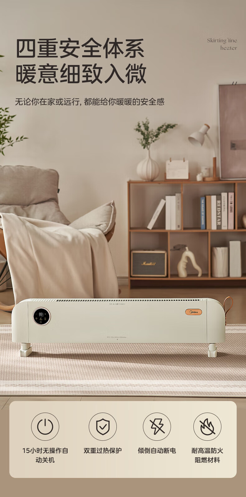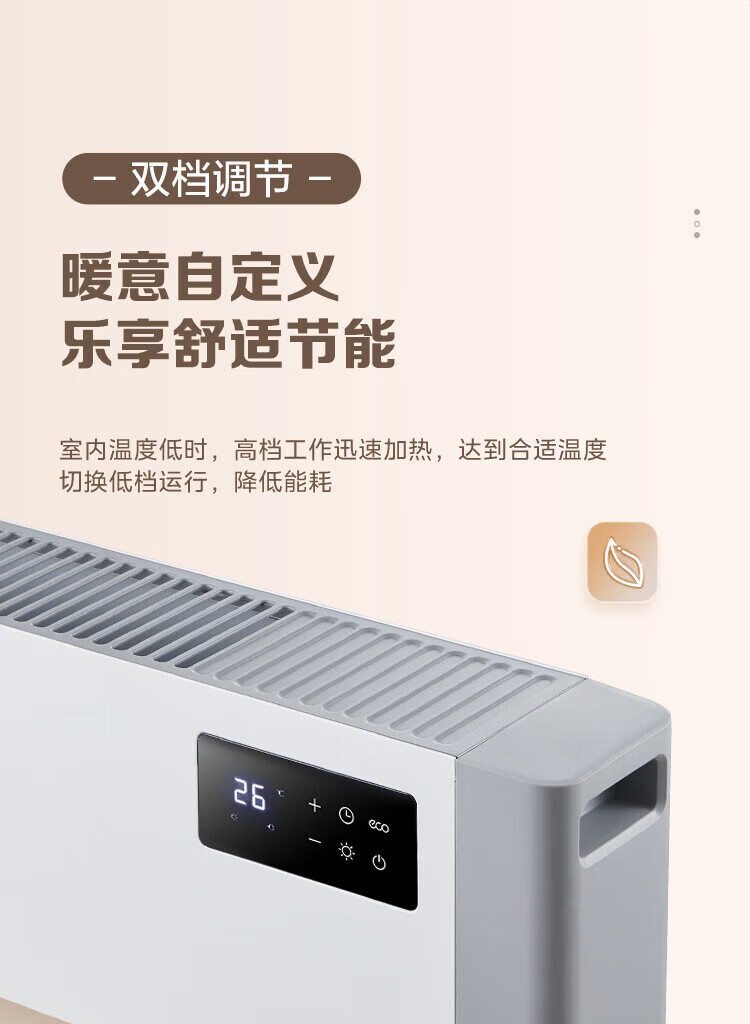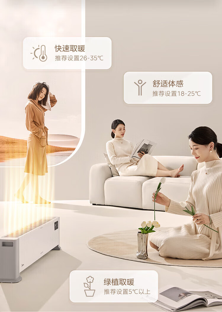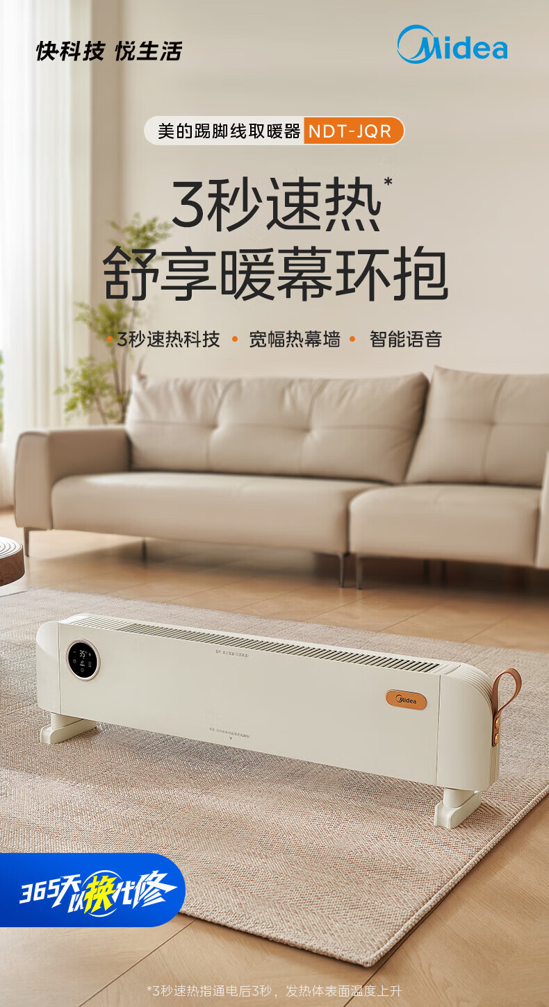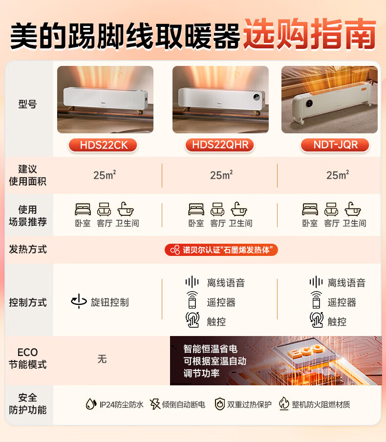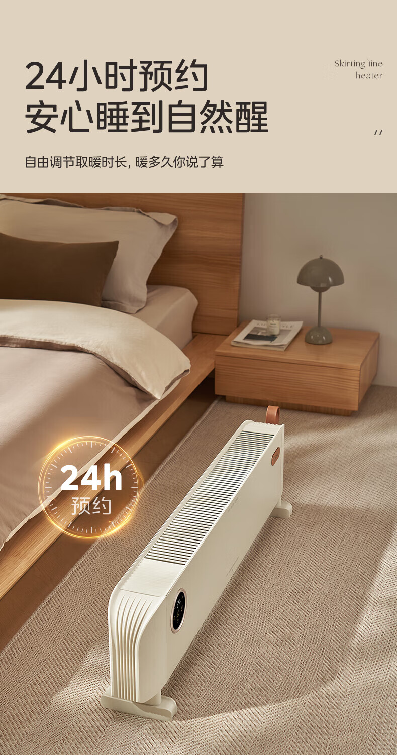 美的(Midea)石墨烯踢脚线取暖器家用热幕对流恒温节能电暖器浴室防水防尘移动地无光无噪暖气片大面积取暖神器 【热幕循环对流恒温取暖】机械式节能智控取暖器