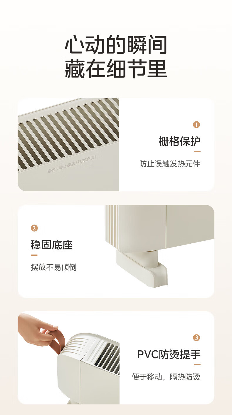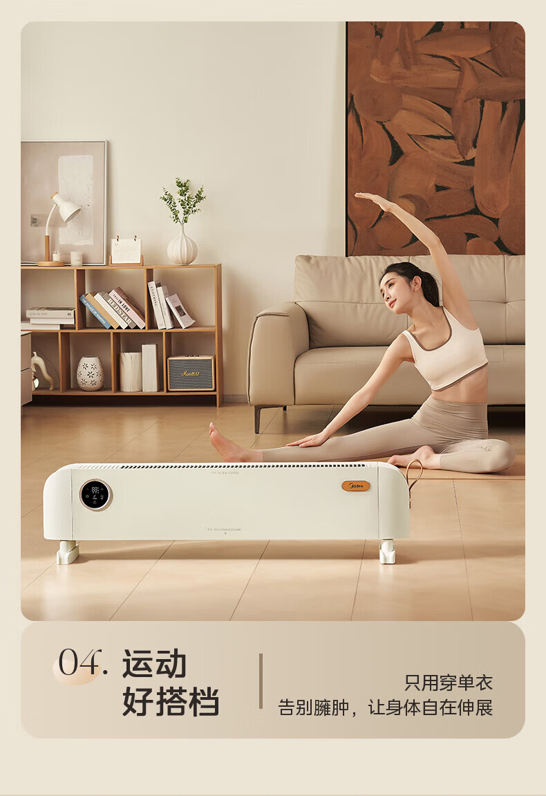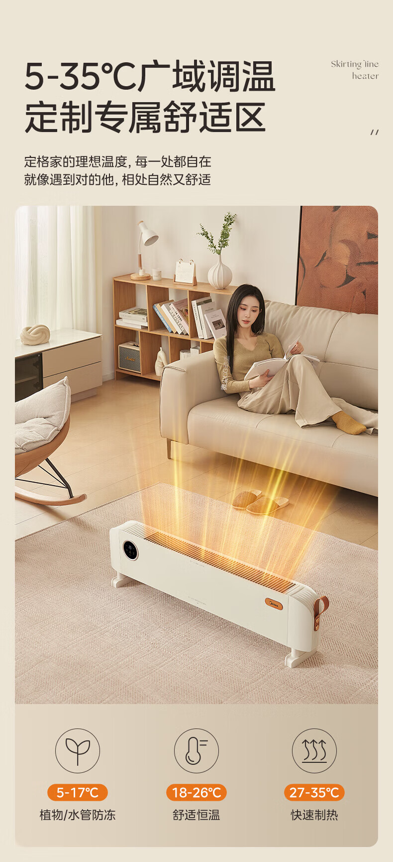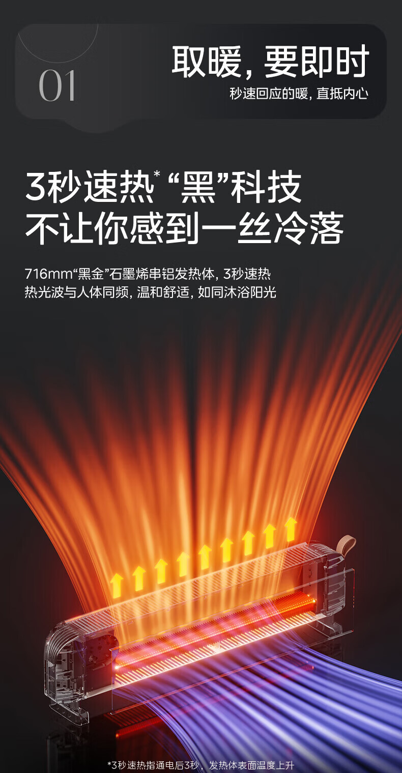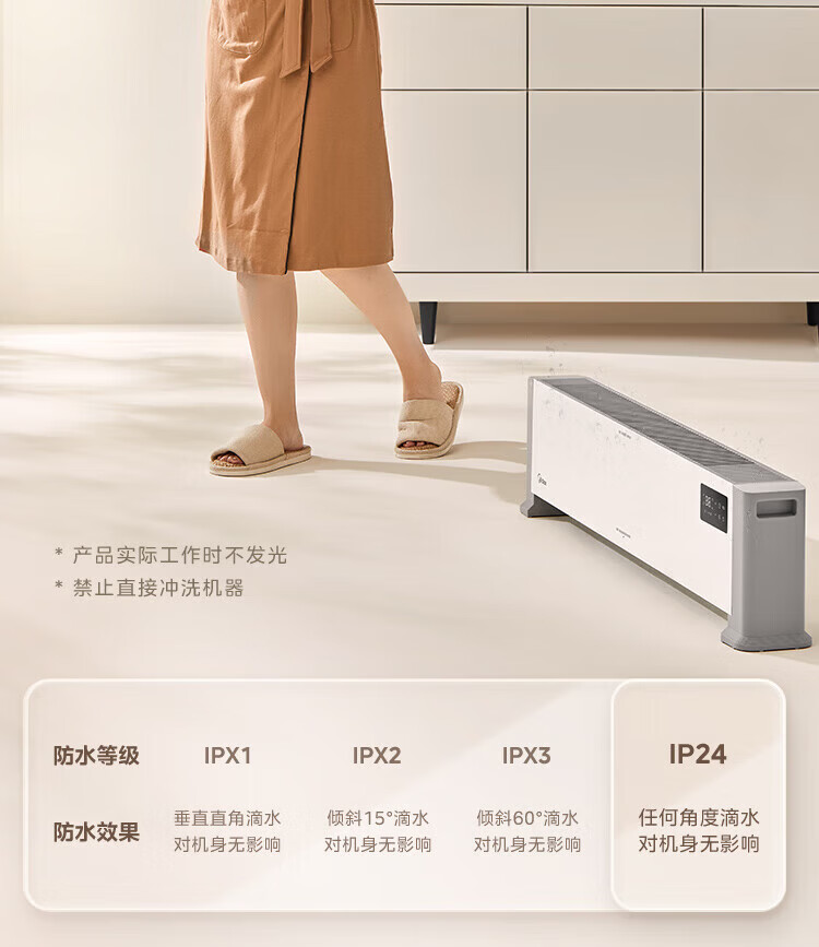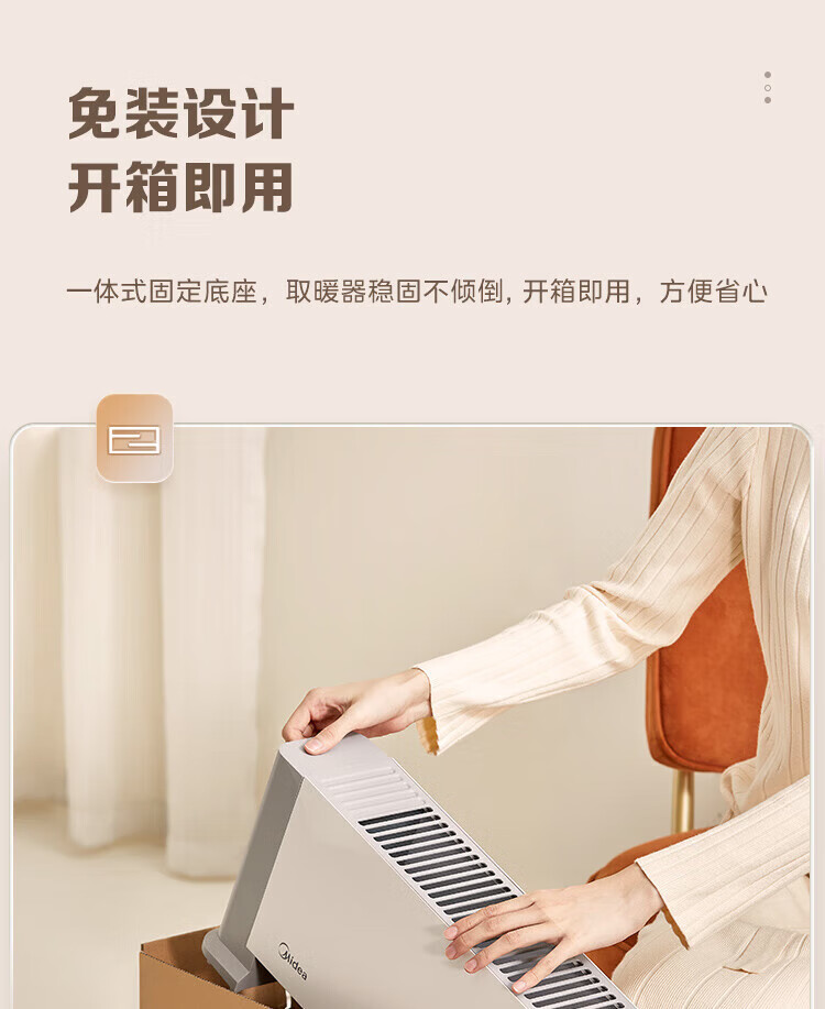美的(Midea)石墨烯踢脚线取暖器家用热幕对流恒温节能电暖器浴室防水防尘移动地无光无噪暖气片大面积取暖神器 【热幕循环对流恒温取暖】机械式节能智控取暖器