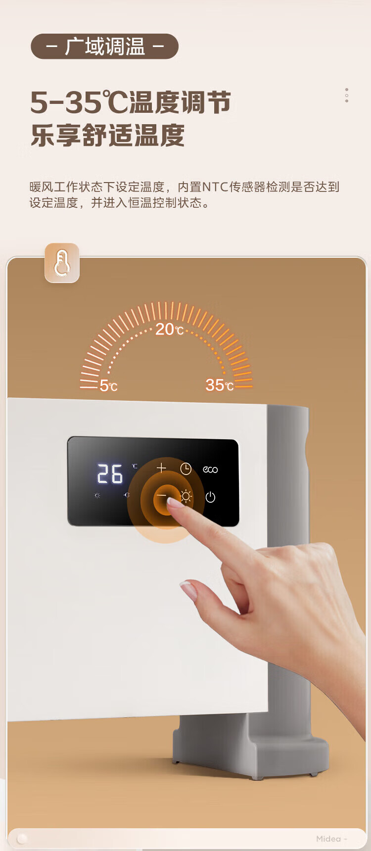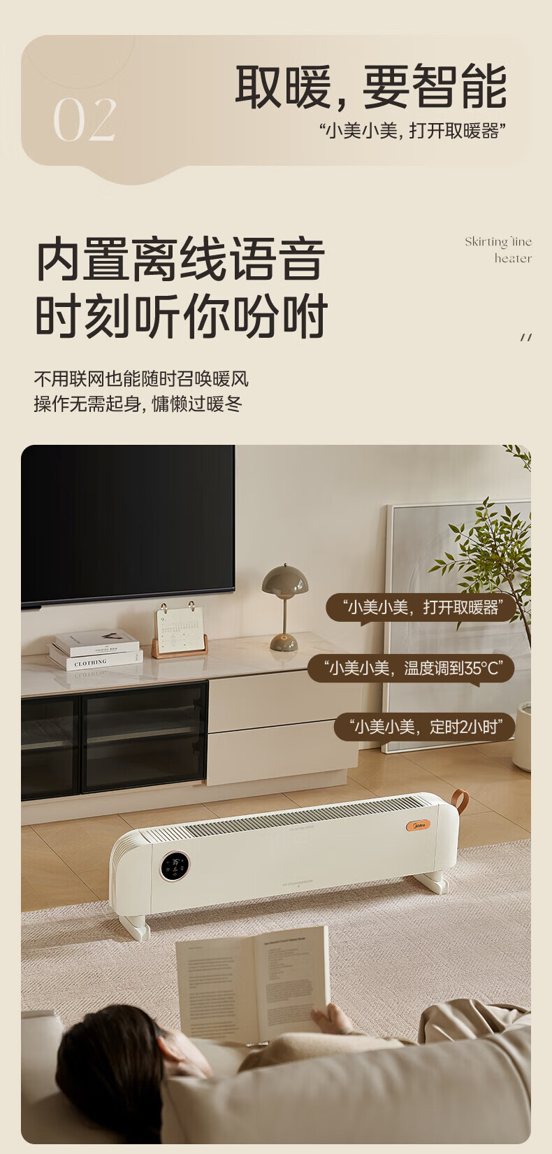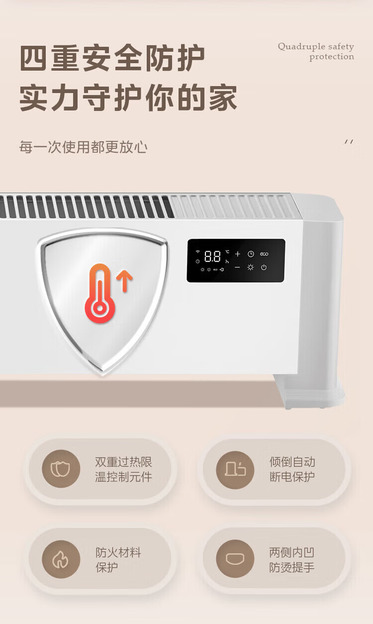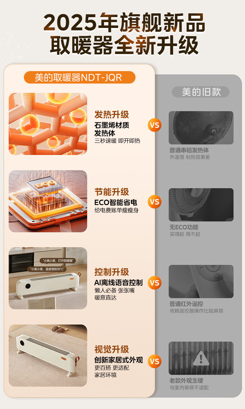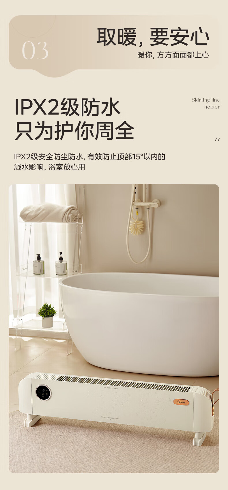 美的(Midea)石墨烯踢脚线取暖器家用热幕对流恒温节能电暖器浴室防水防尘移动地无光无噪暖气片大面积取暖神器 【热幕循环对流恒温取暖】机械式节能智控取暖器