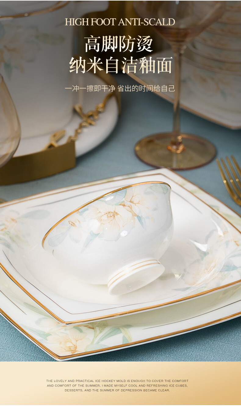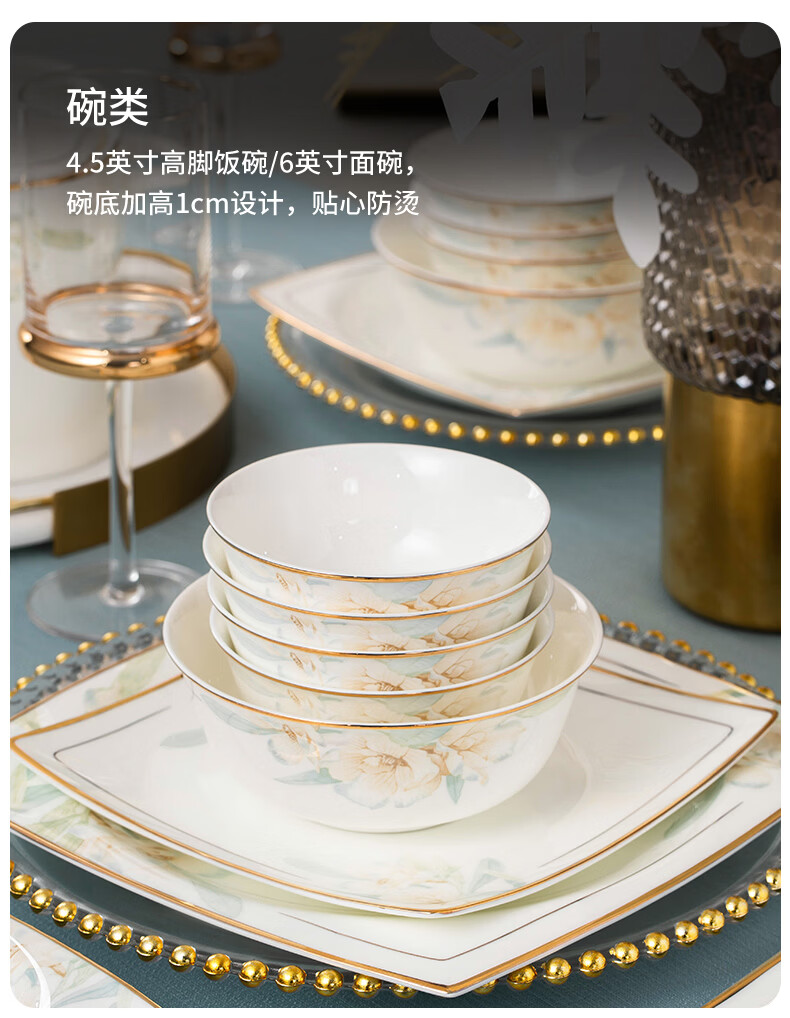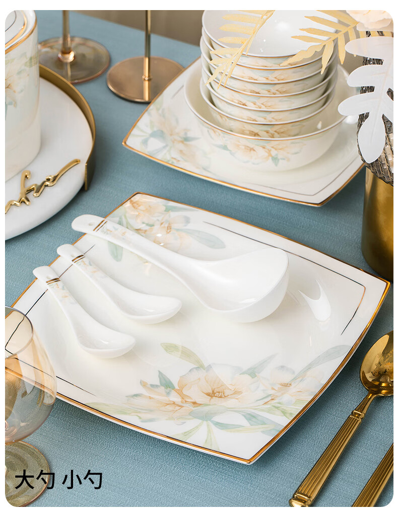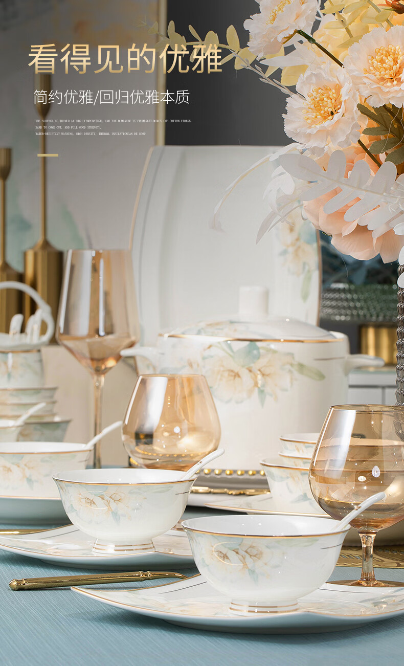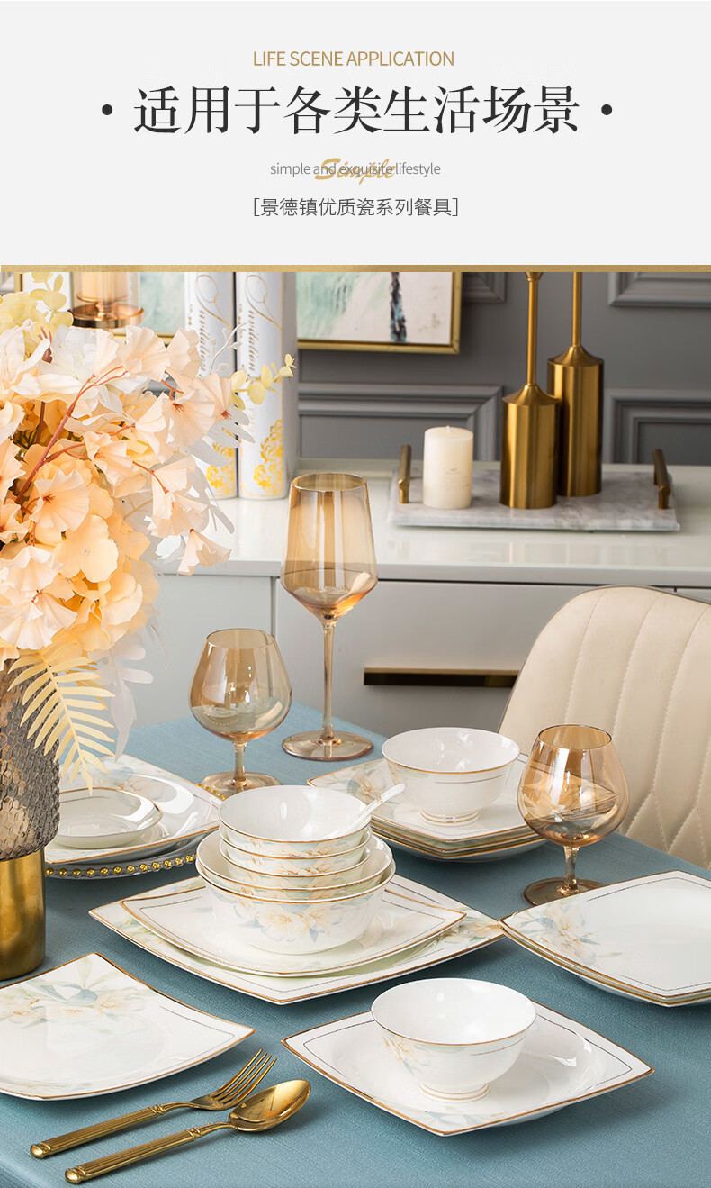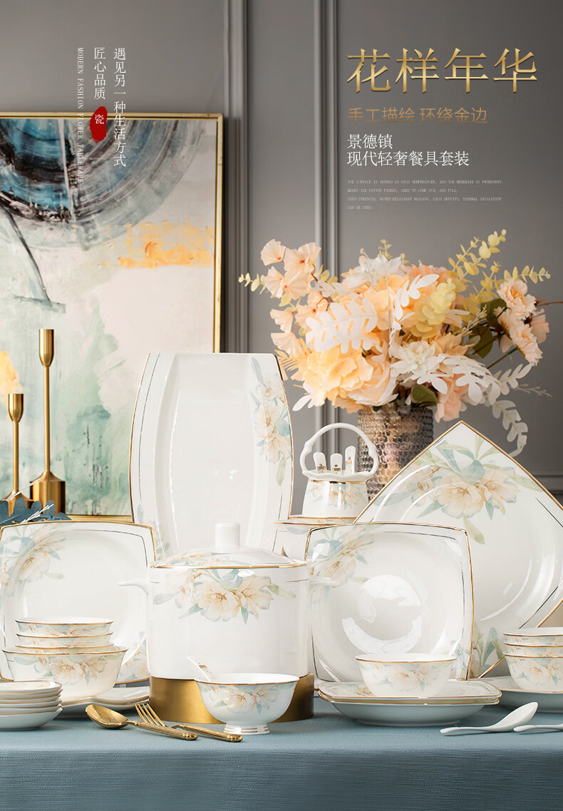 精缔陶瓷JINGDI2025新款碗碟套装家用碗筷乔迁高温骨瓷餐具套装景德镇陶瓷碗盘子 【店长推荐】66件升级配大汤碗 66件套