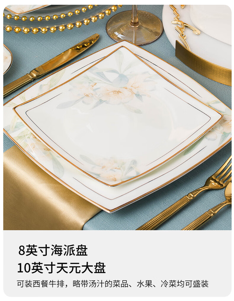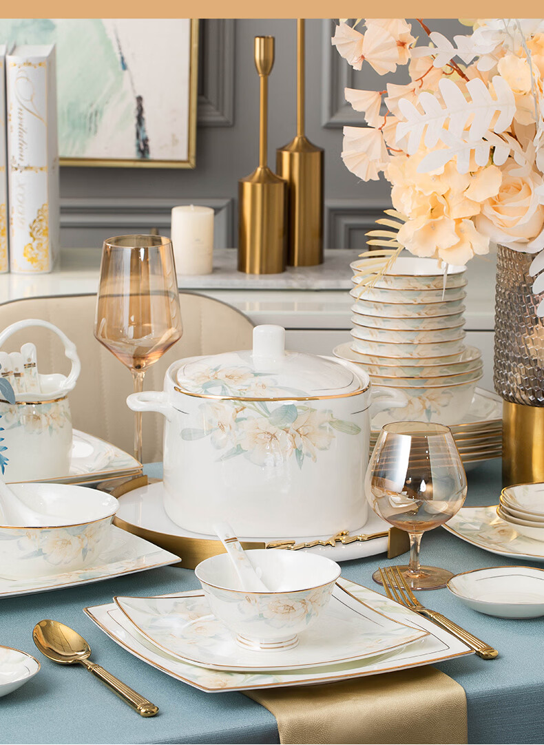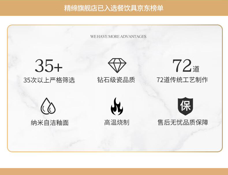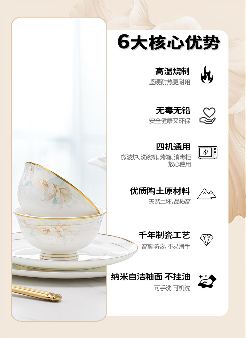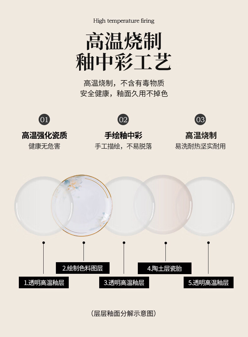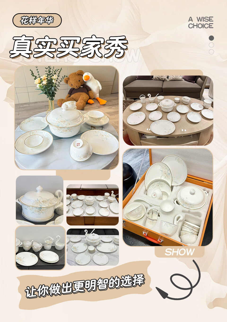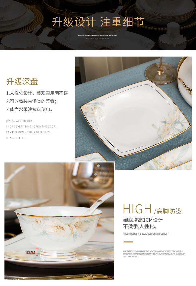 精缔陶瓷JINGDI2025新款碗碟套装家用碗筷乔迁高温骨瓷餐具套装景德镇陶瓷碗盘子 【店长推荐】66件升级配大汤碗 66件套