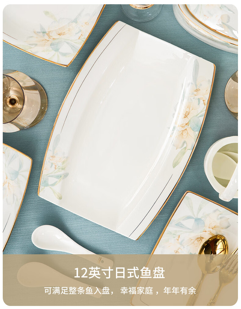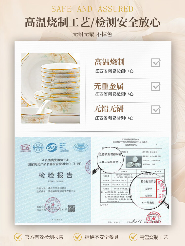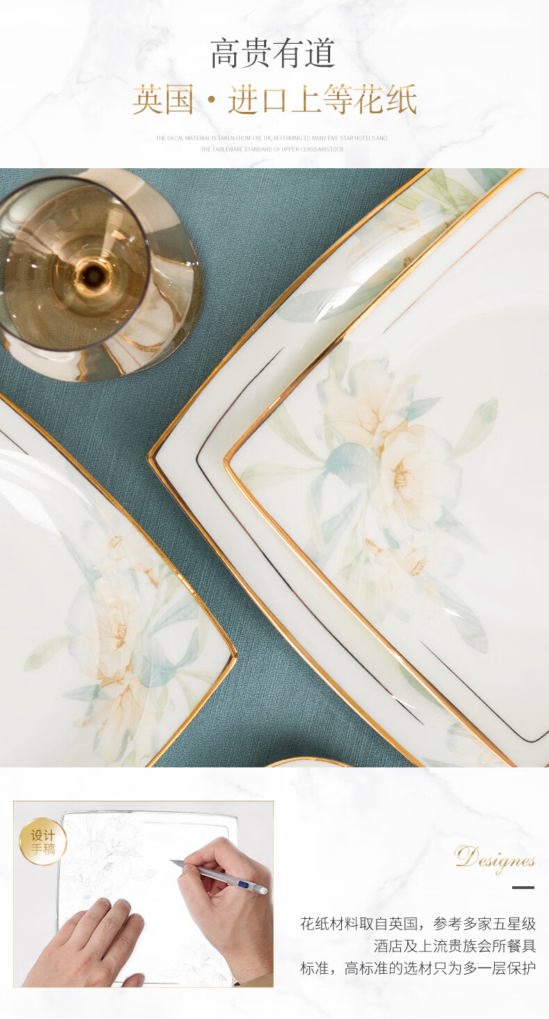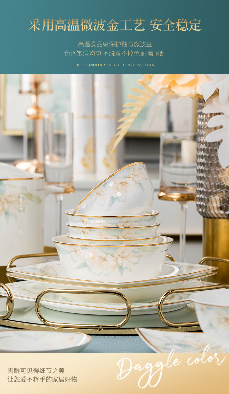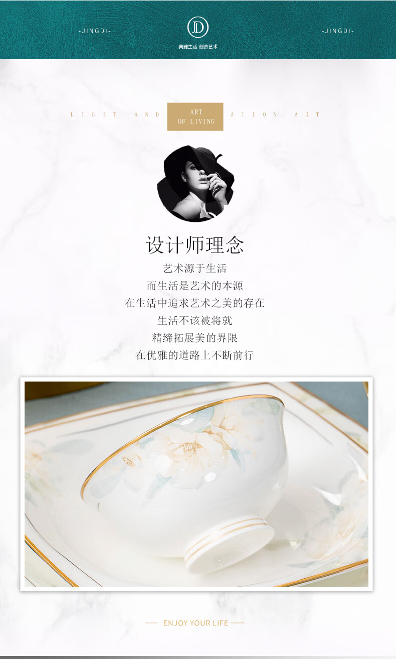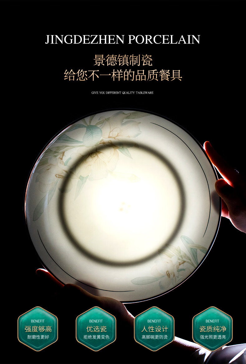 精缔陶瓷JINGDI碗家用2026新款碗筷景德镇骨瓷碗碟套装家用陶瓷餐具套装碗盘乔迁 【景德镇正品】绿瑾31件配大汤碗原创正品保障 31件套