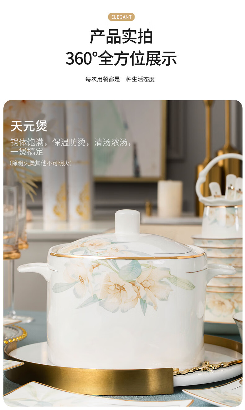 精缔陶瓷JINGDI景德镇碗家用2025新款轻奢高颜值碗碟套装家用陶瓷餐具乔迁新居 【店长推荐】升级配富贵煲 66件套